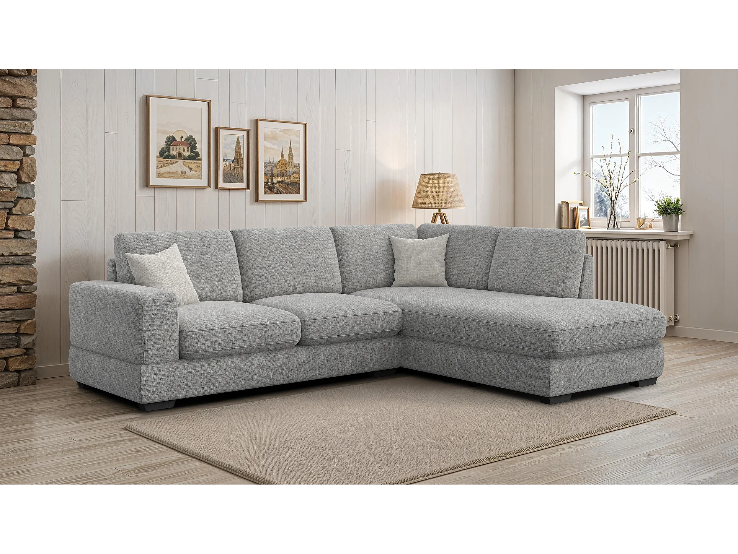 Canapé d'angle droit 5 places OTTO, tissu gris