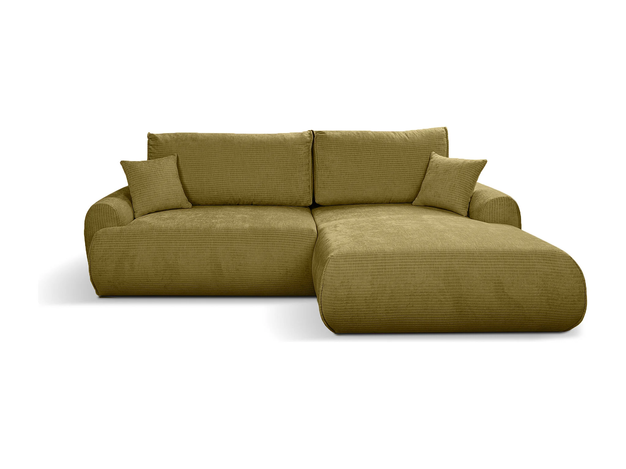 Canapé d'Angle droit avec fonction de couchage Noboo coffre en velours côtelé moutarde direct fabricant, livraison et installation offertes