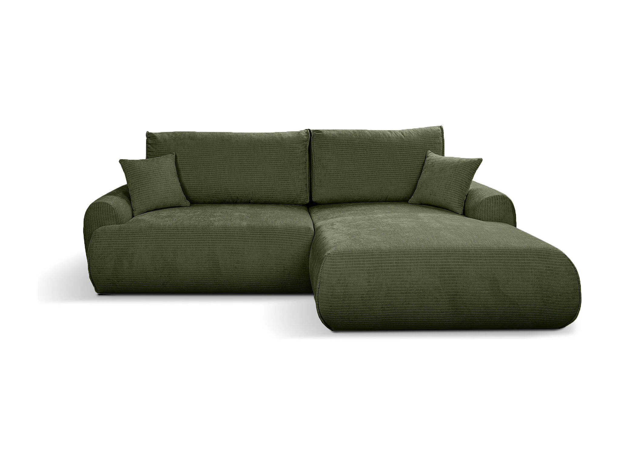 Canapé d'Angle droit avec fonction de couchage Noboo coffre en velours côtelé vert direct fabricant, livraison et installation offertes