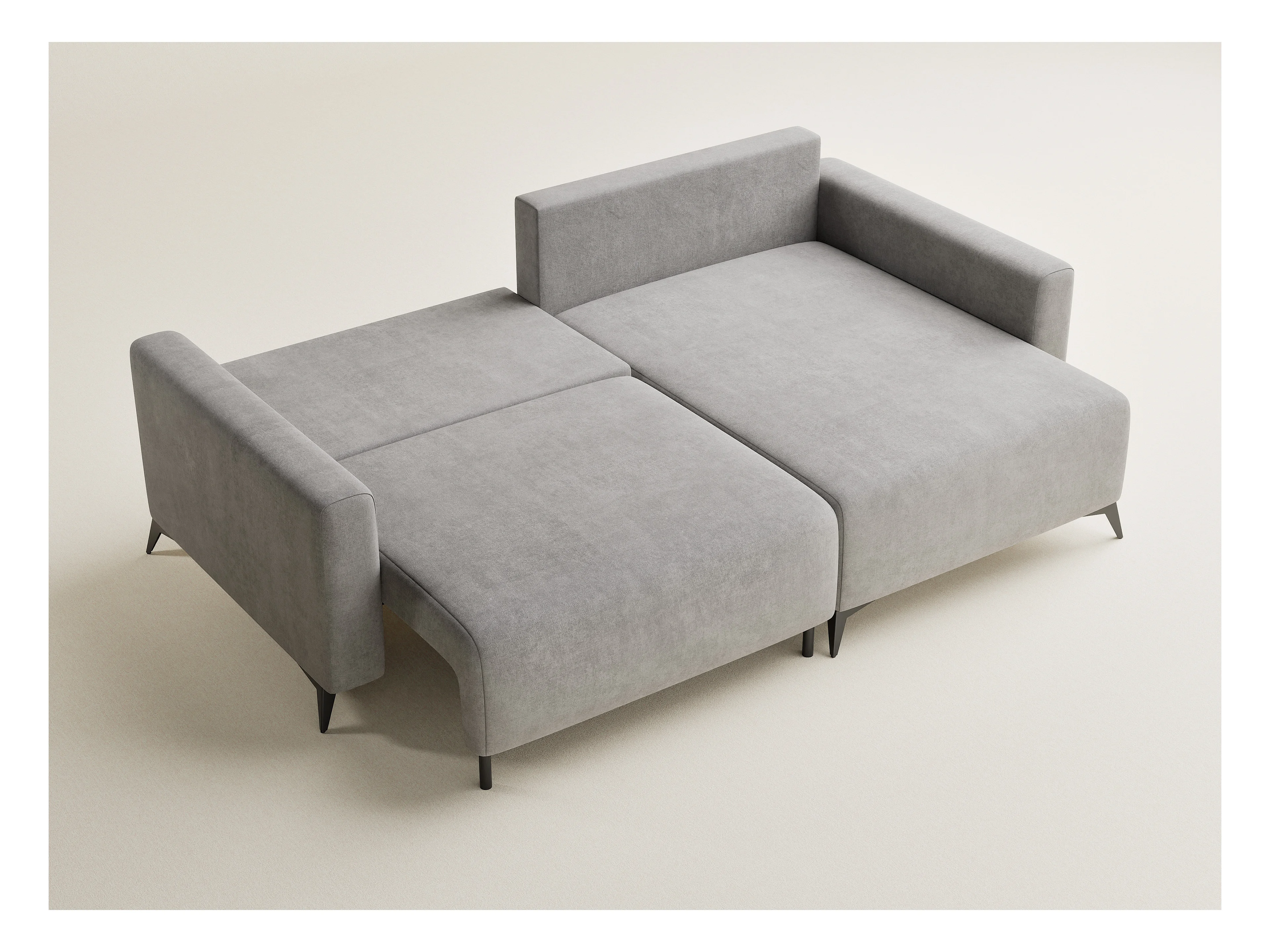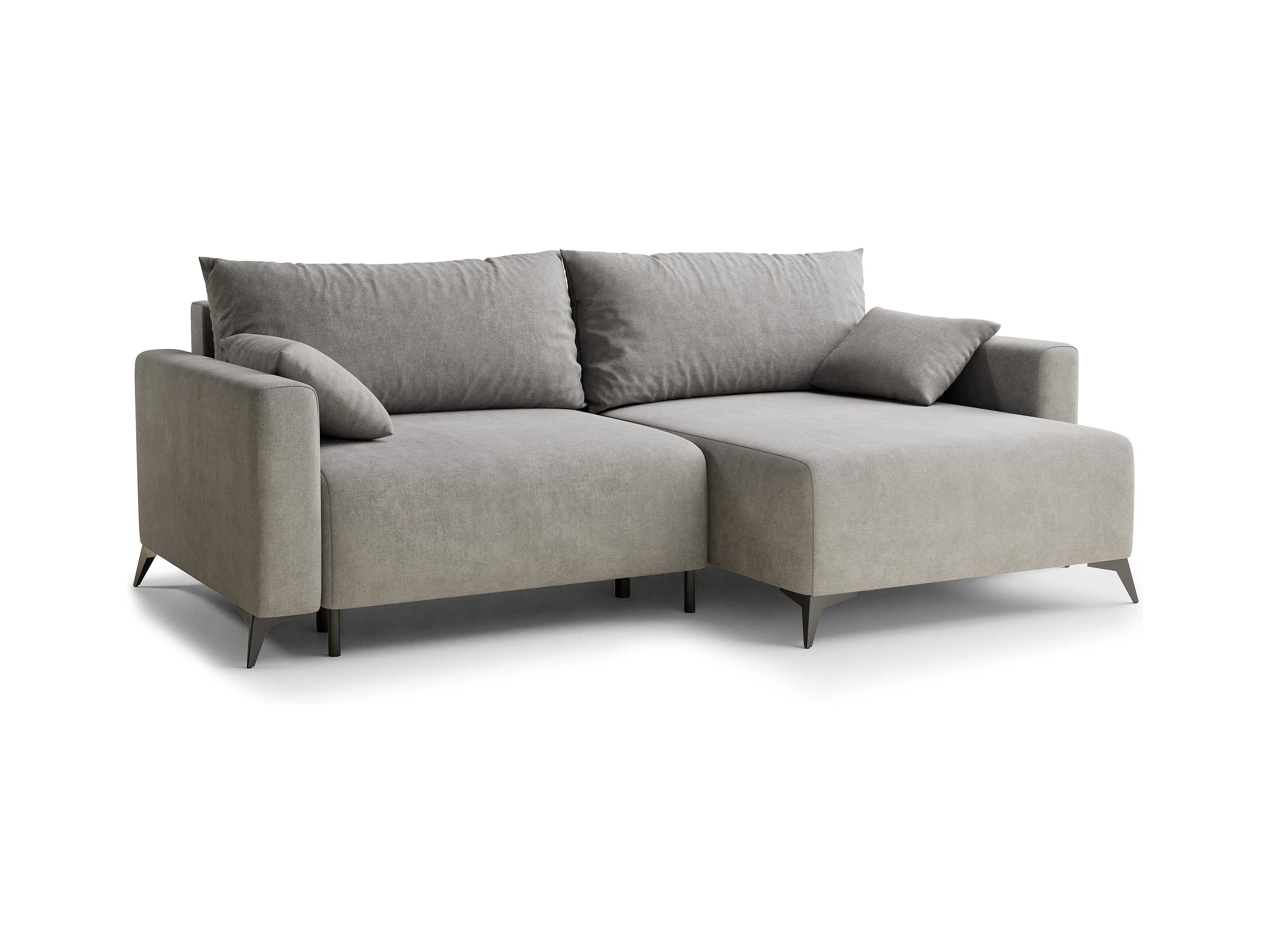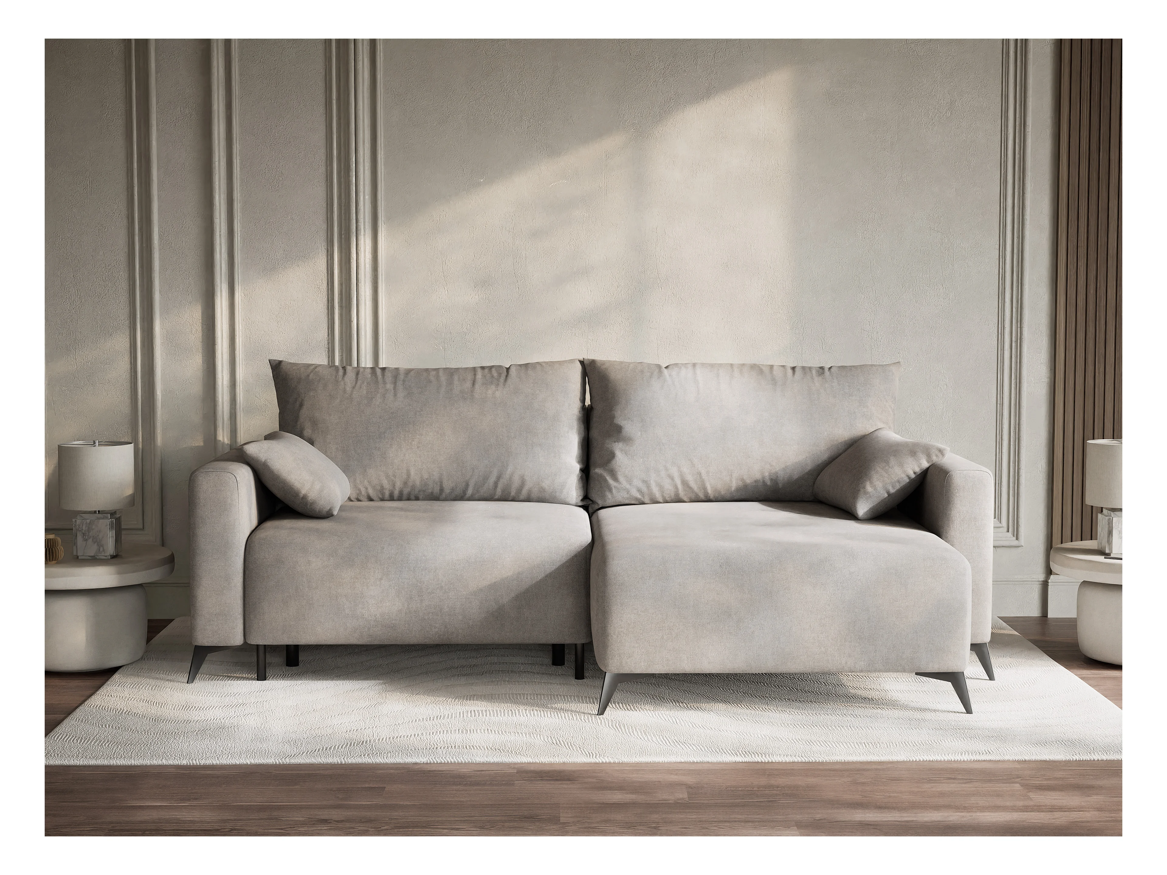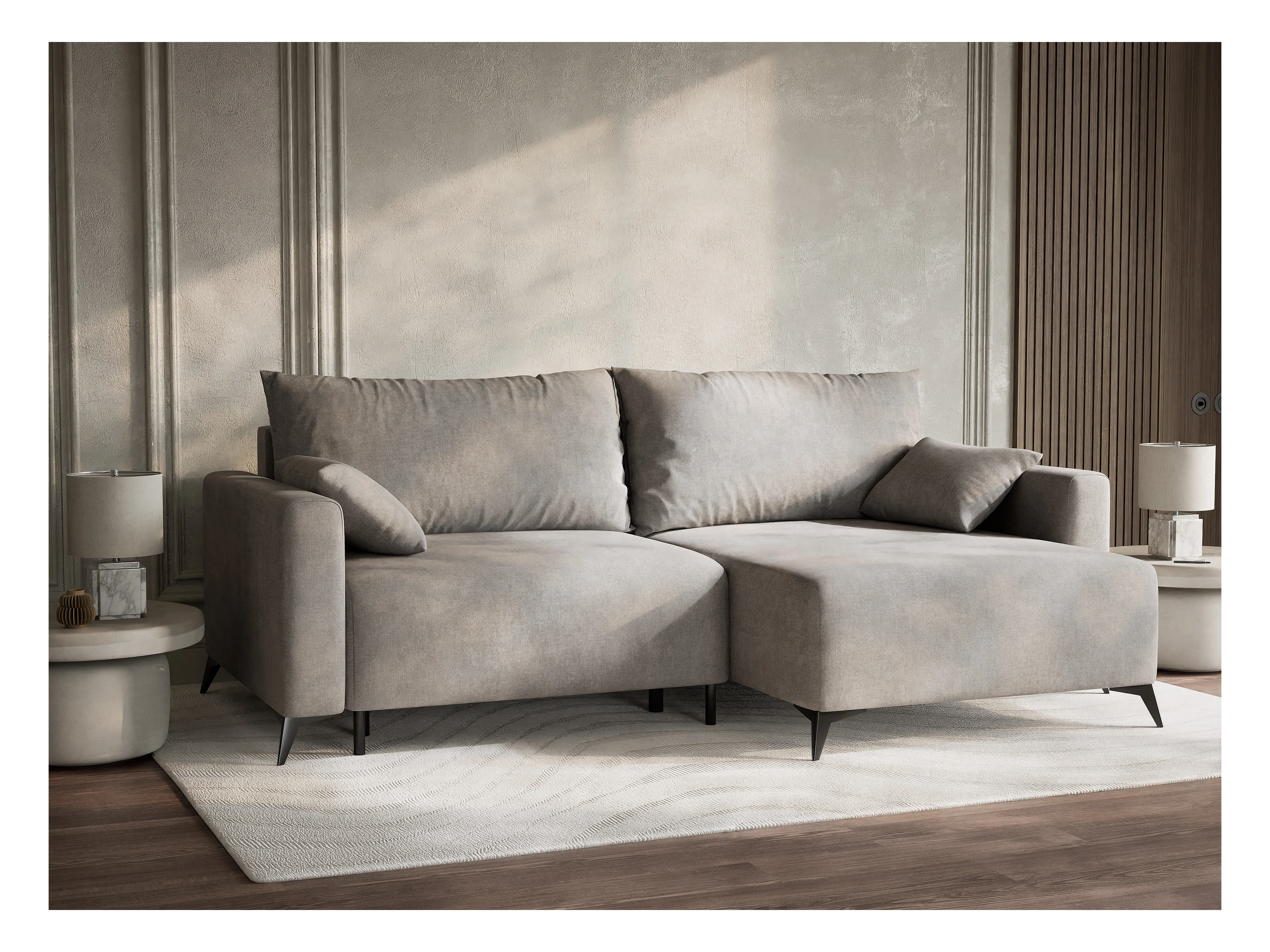 Canapé d'angle droit avec fonction lit en tissu chenille beige gris LEON