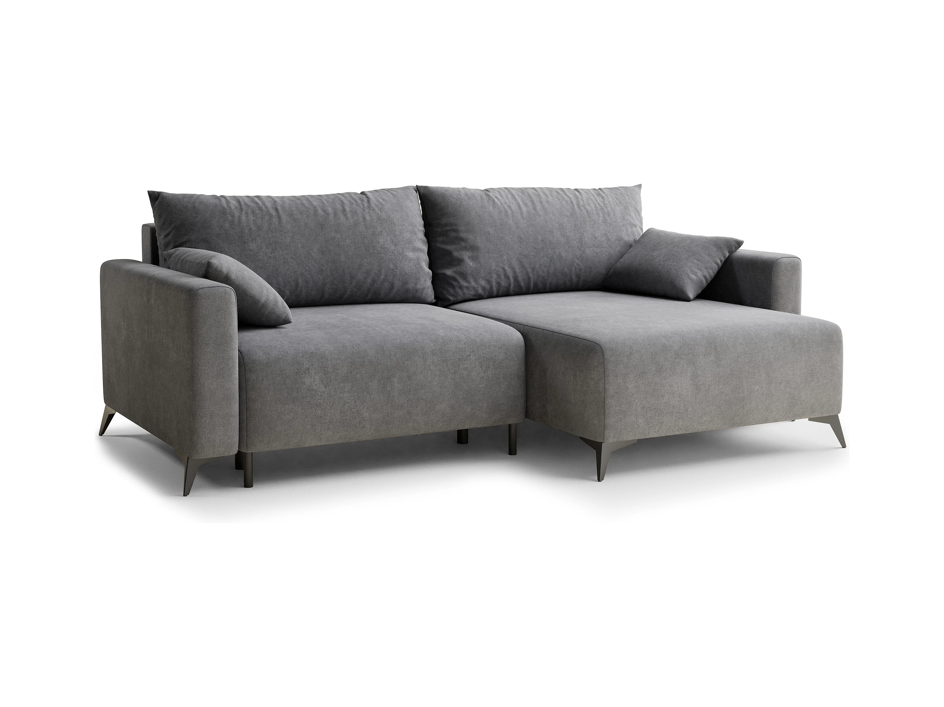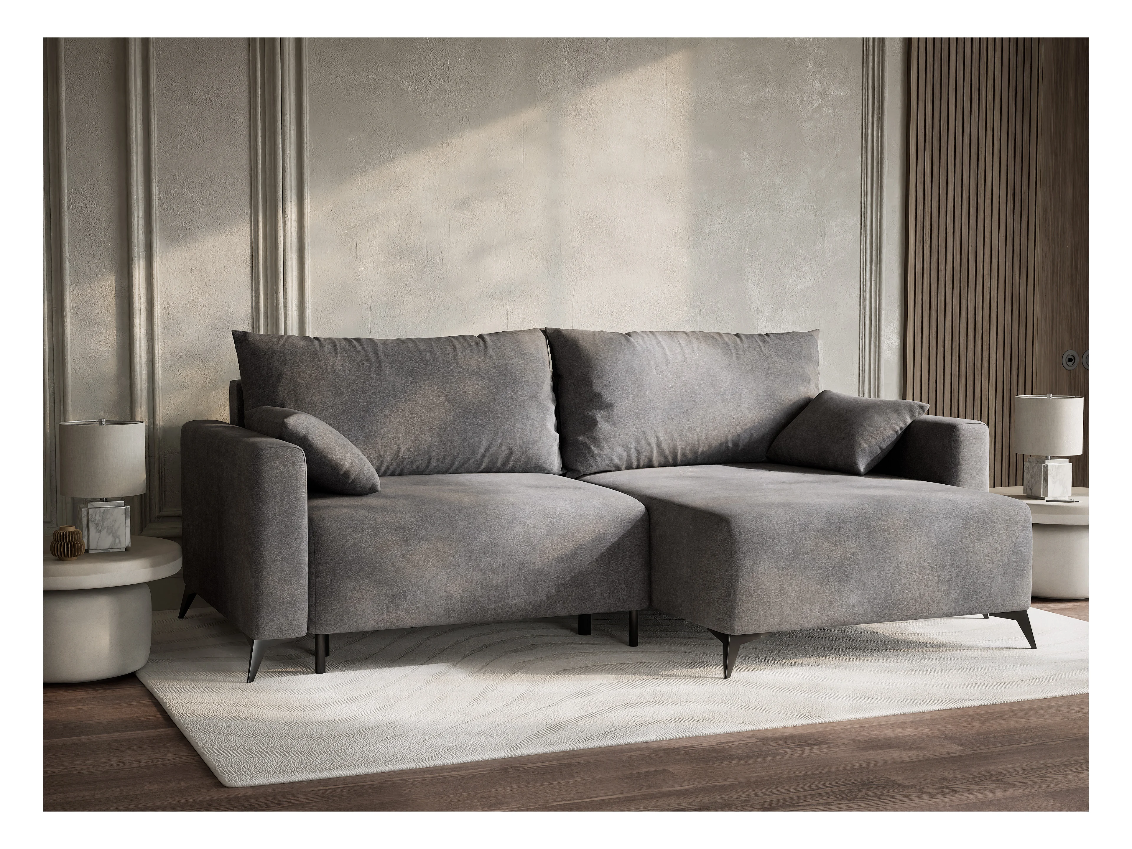 Canapé d'angle droit avec fonction lit en tissu chenille gris LEON