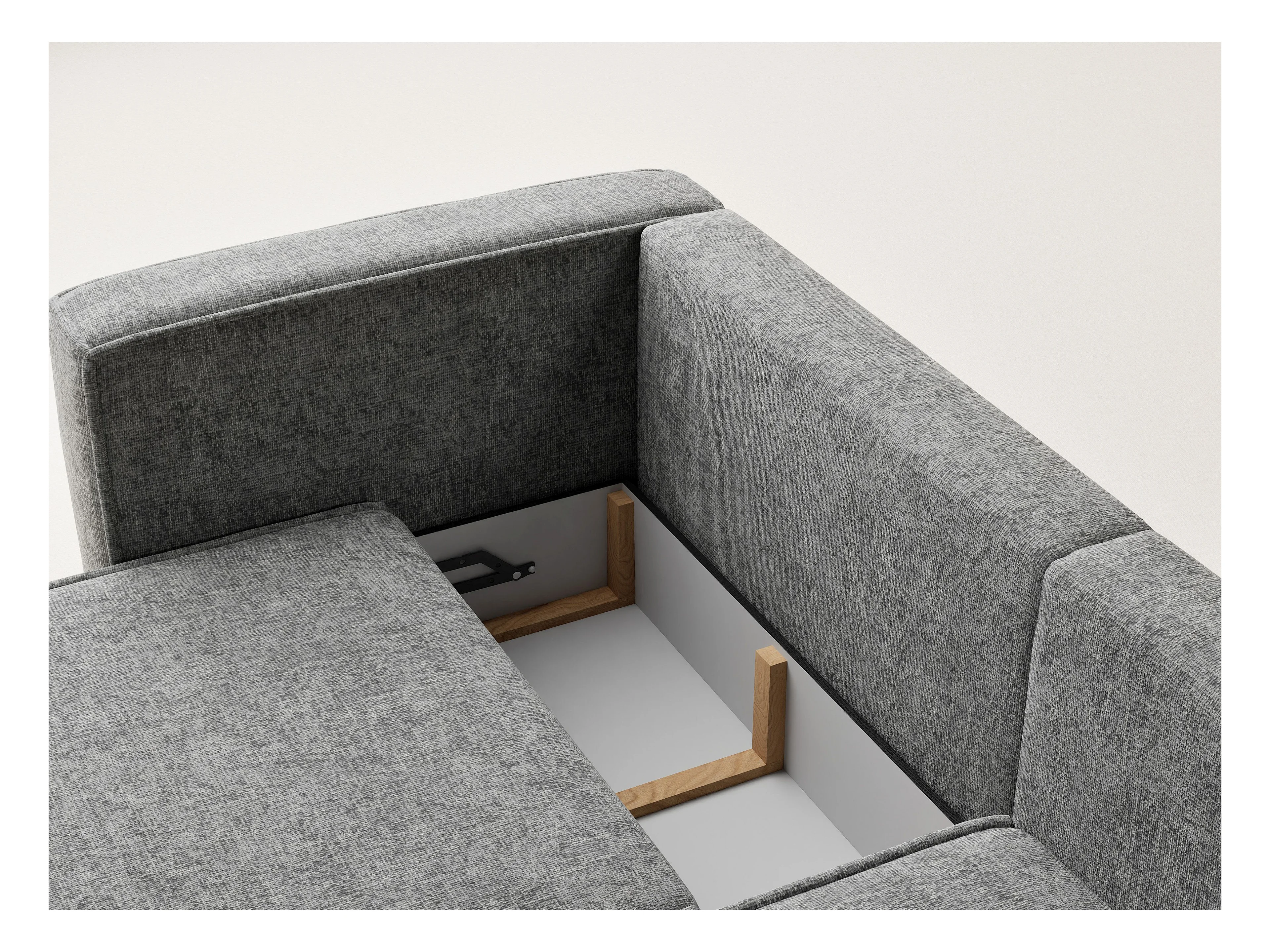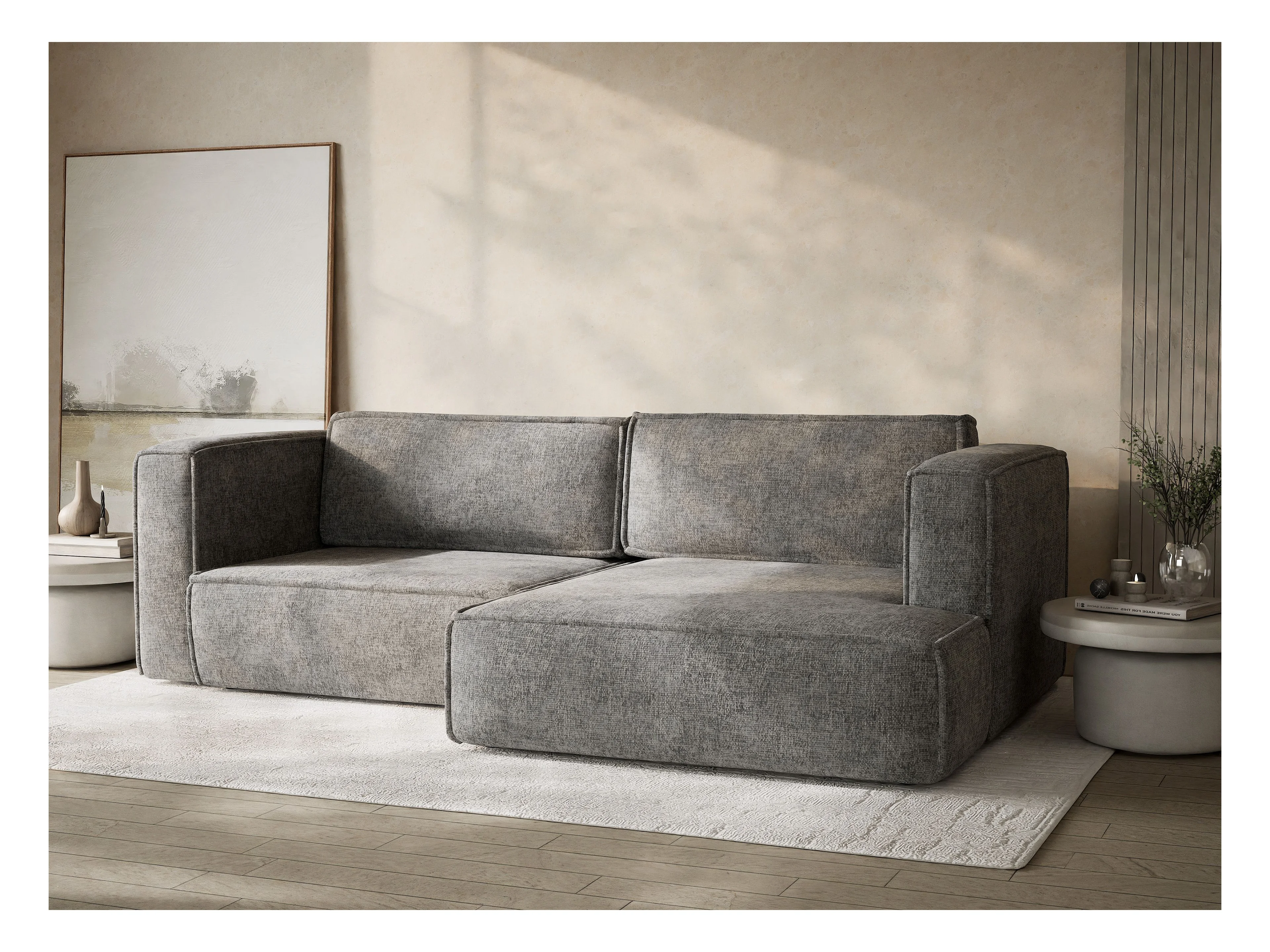 Canapé d'angle droit avec fonction lit en tissu chenille gris VELTO