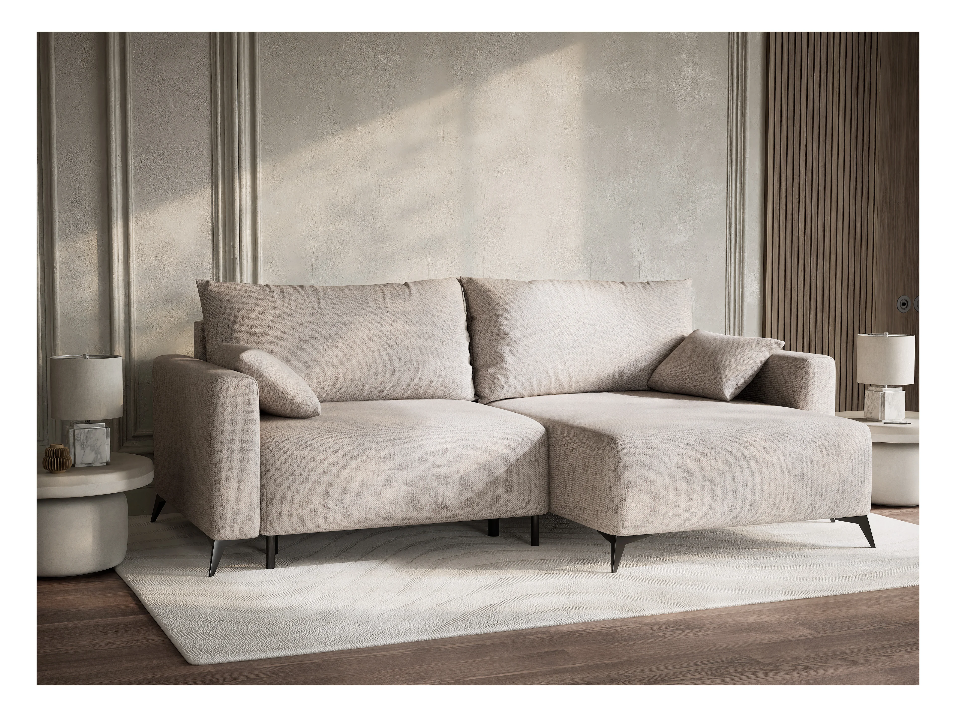 Canapé d'angle droit avec fonction lit en tissu tressé beige LEON