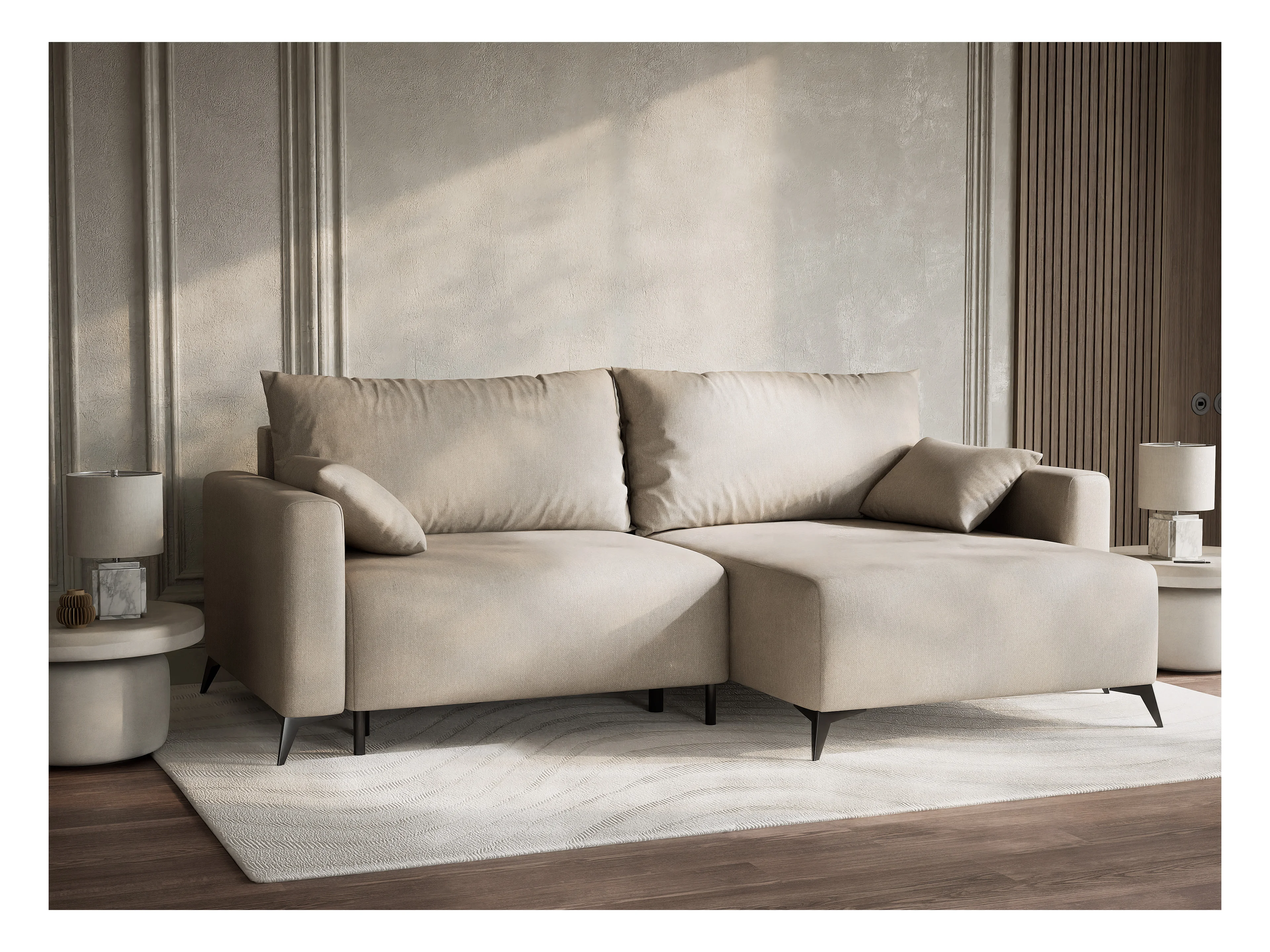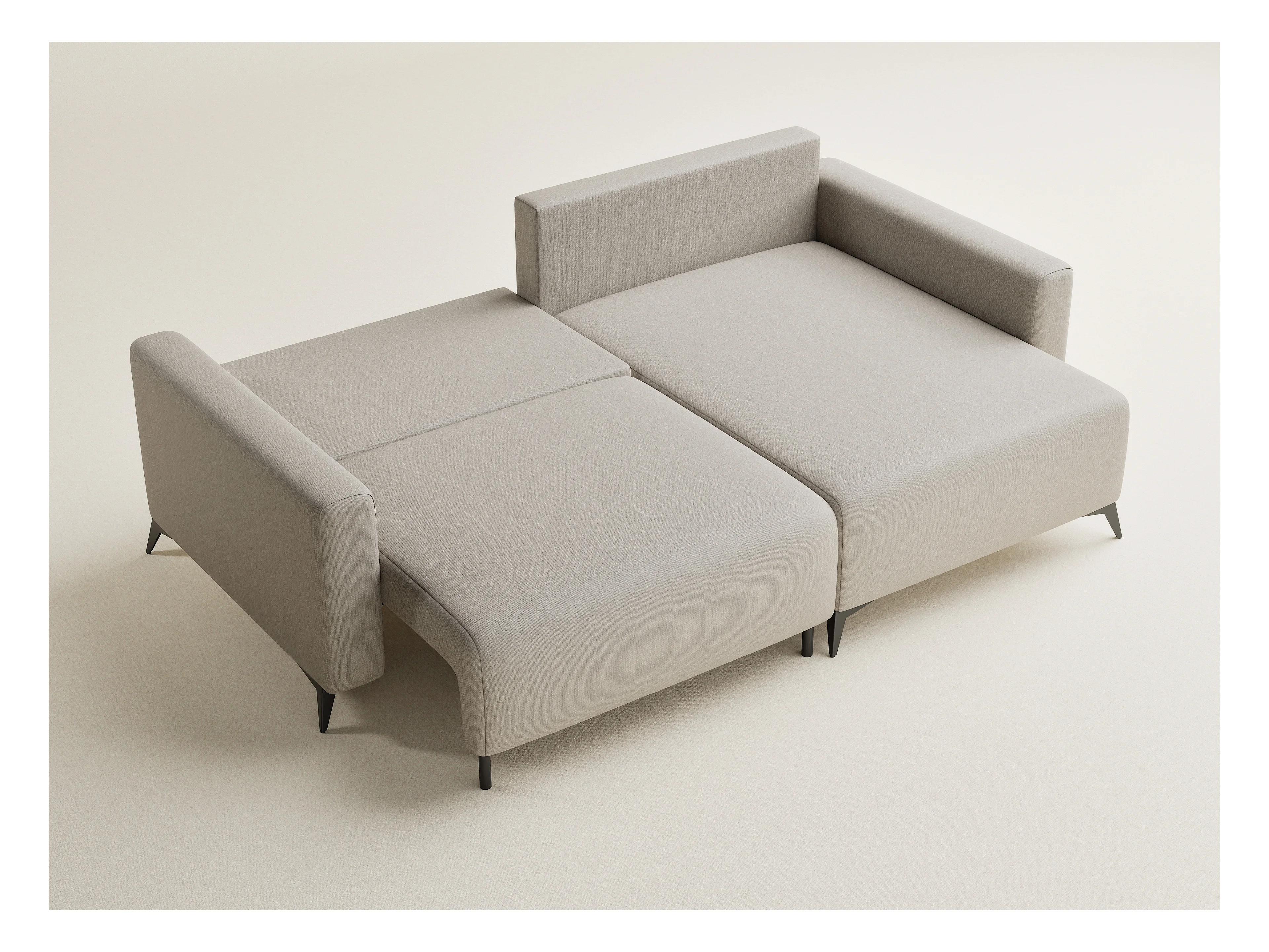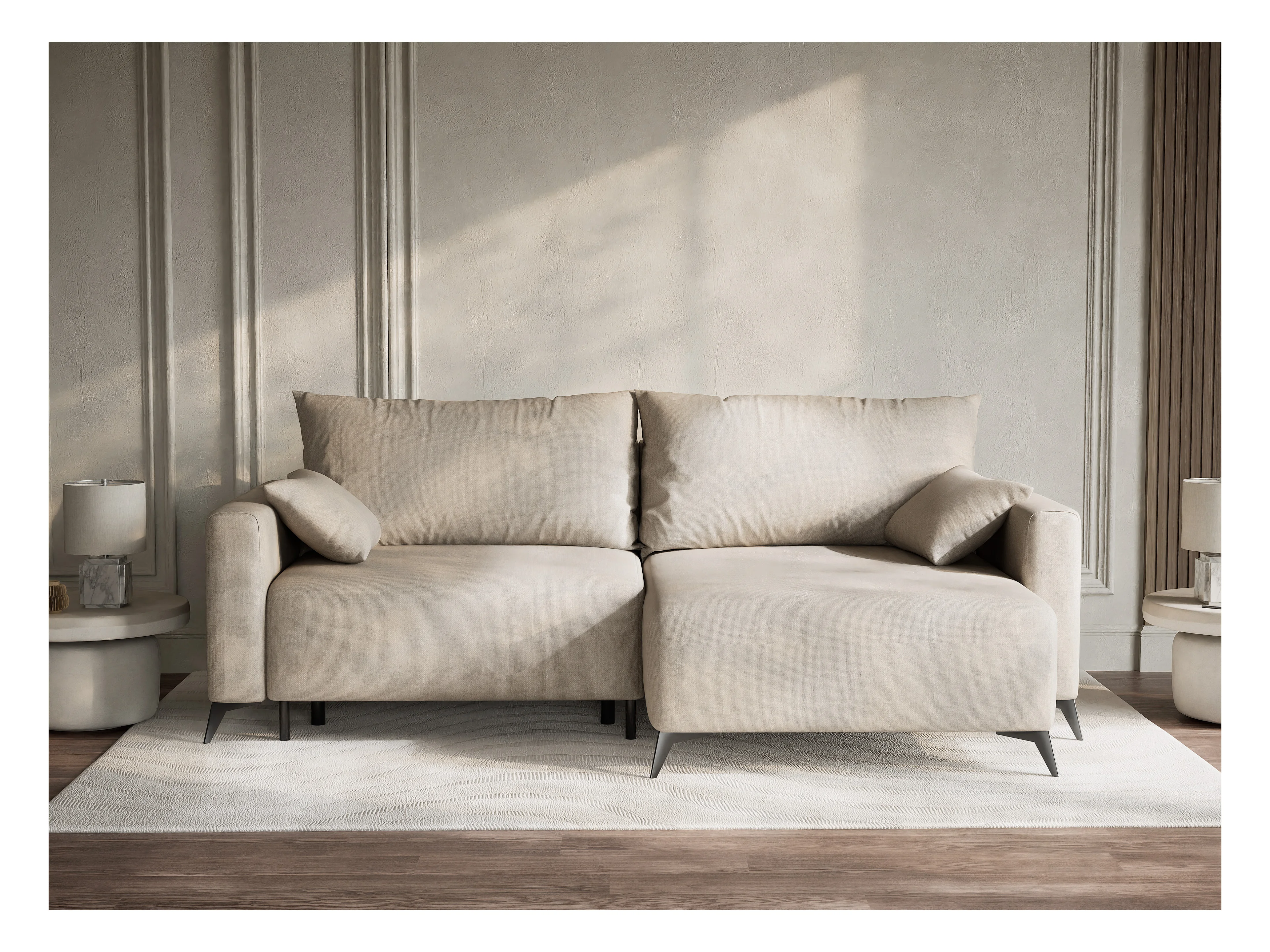 Canapé d'angle droit avec fonction lit en tissu tressé beige LEON