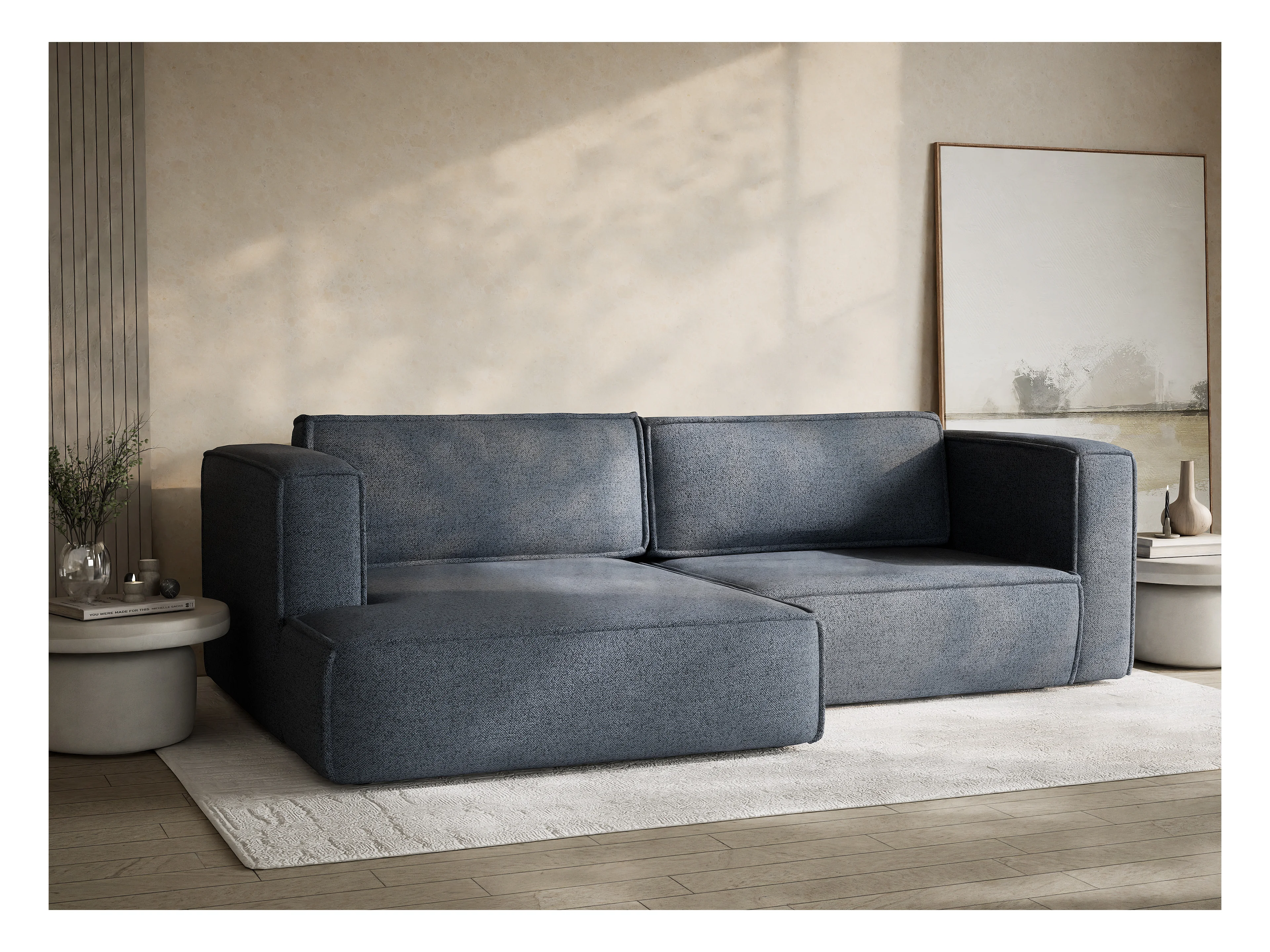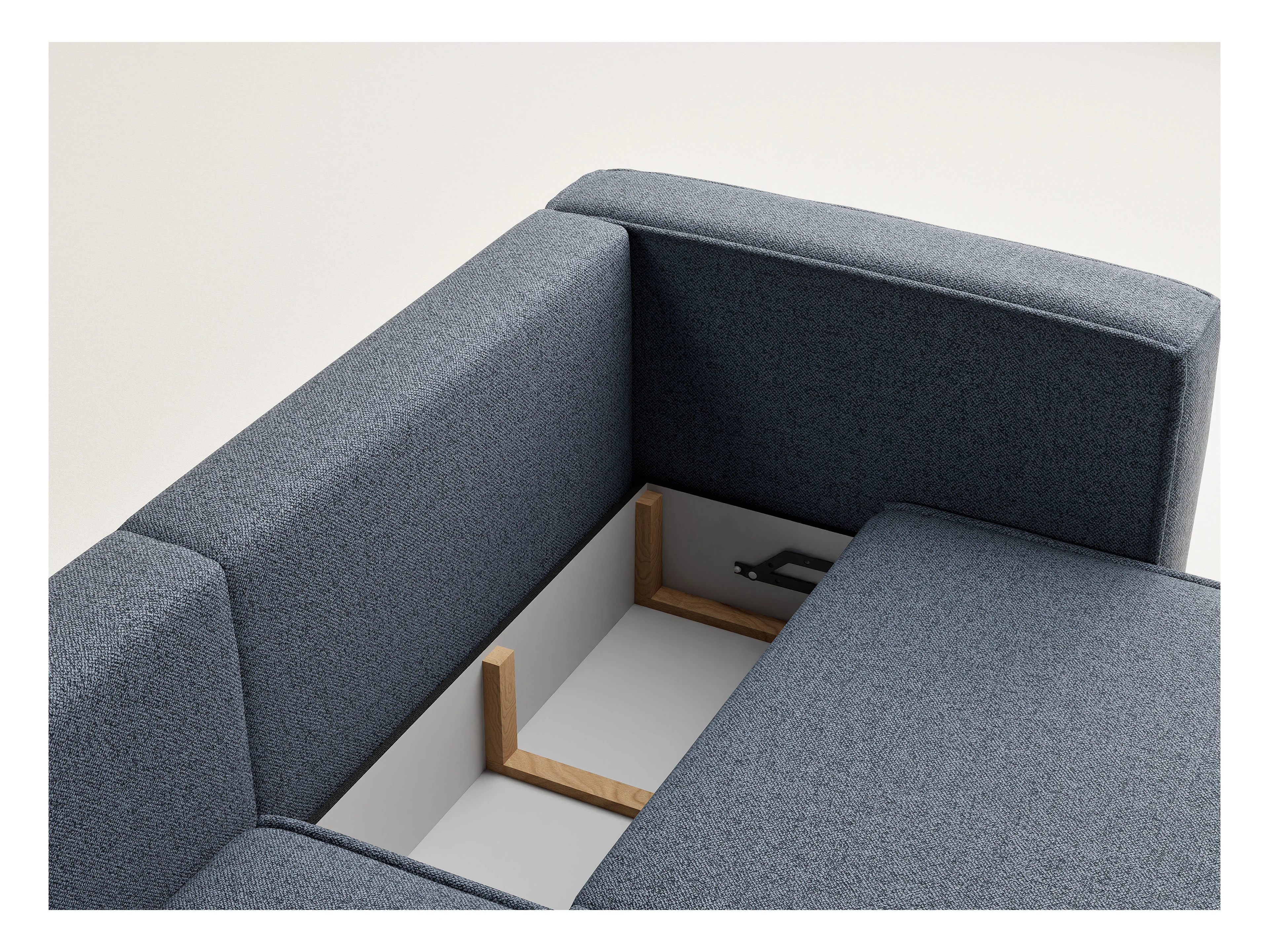 Canapé d'angle droit avec fonction lit en tissu tressé bleu gris VELTO