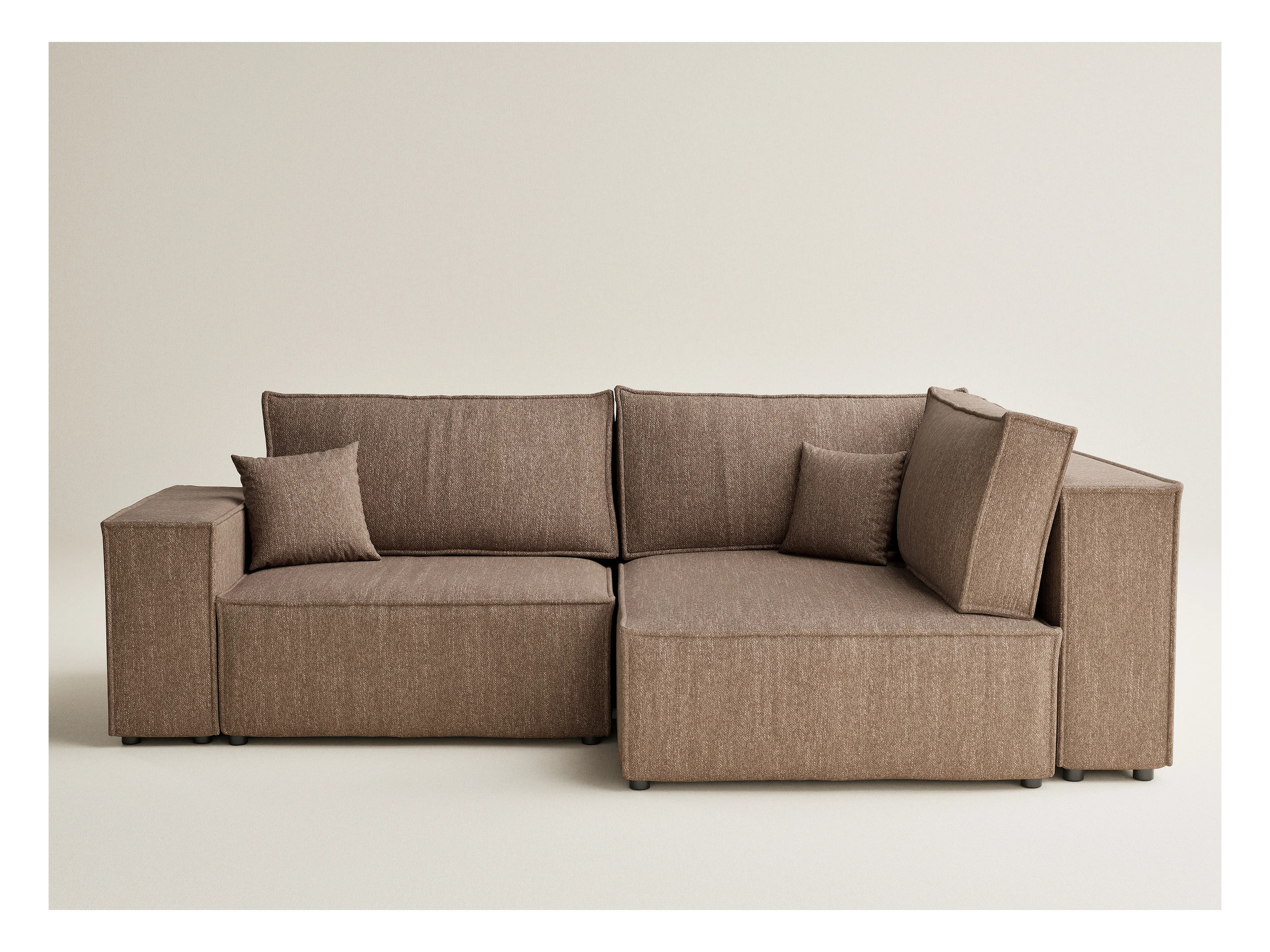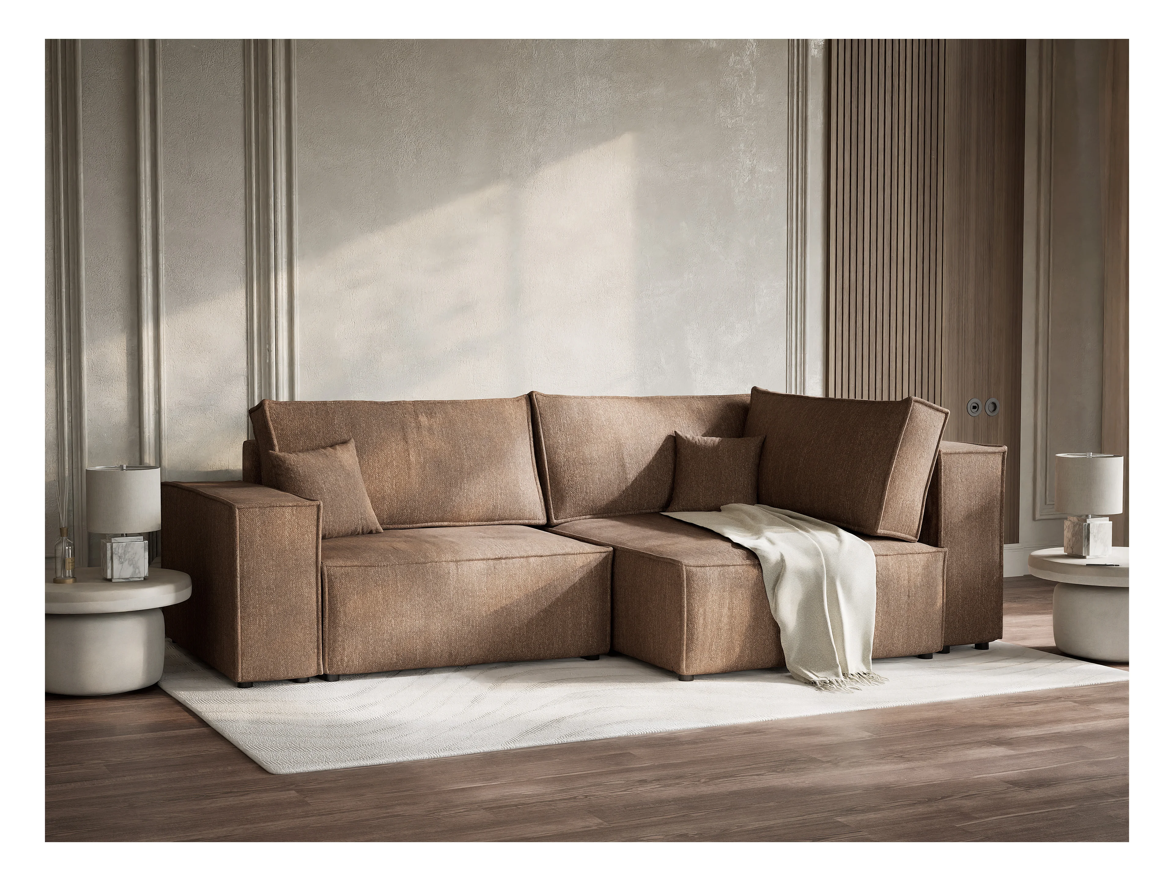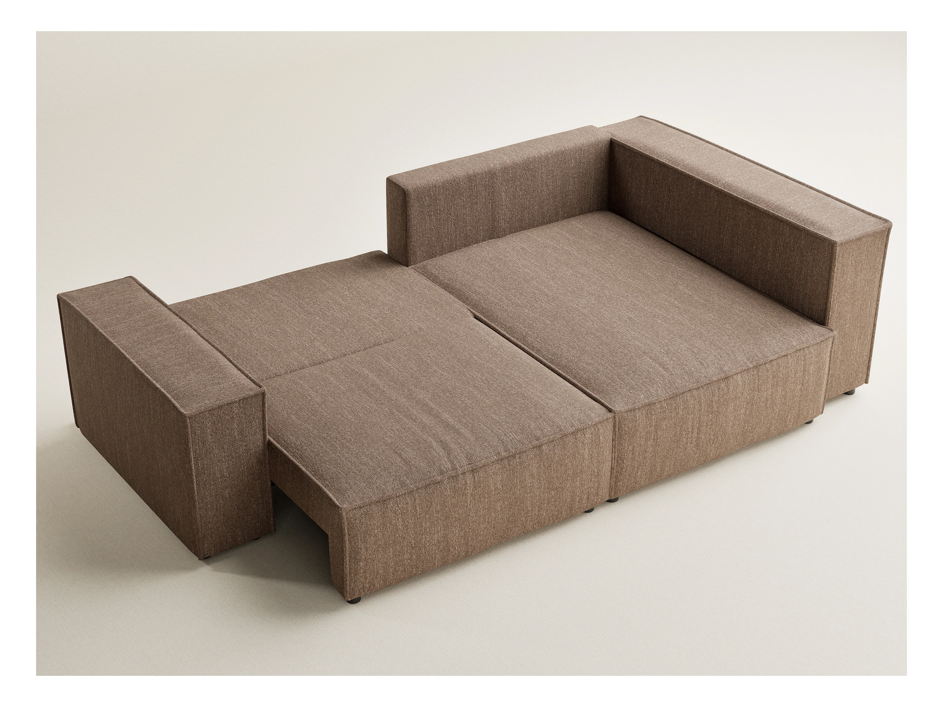 Canapé d'angle droit avec fonction lit en tissu tressé brun TONGA