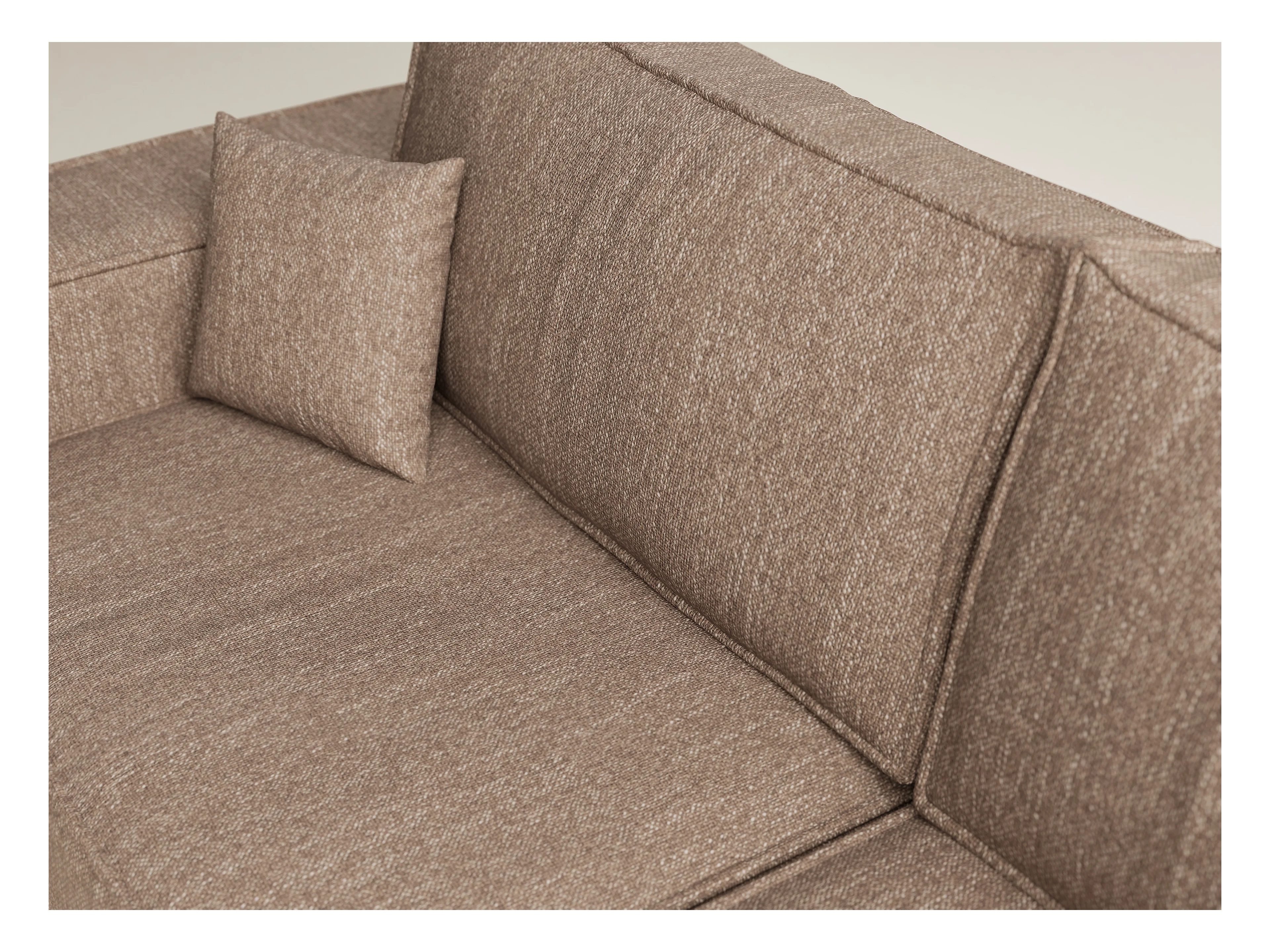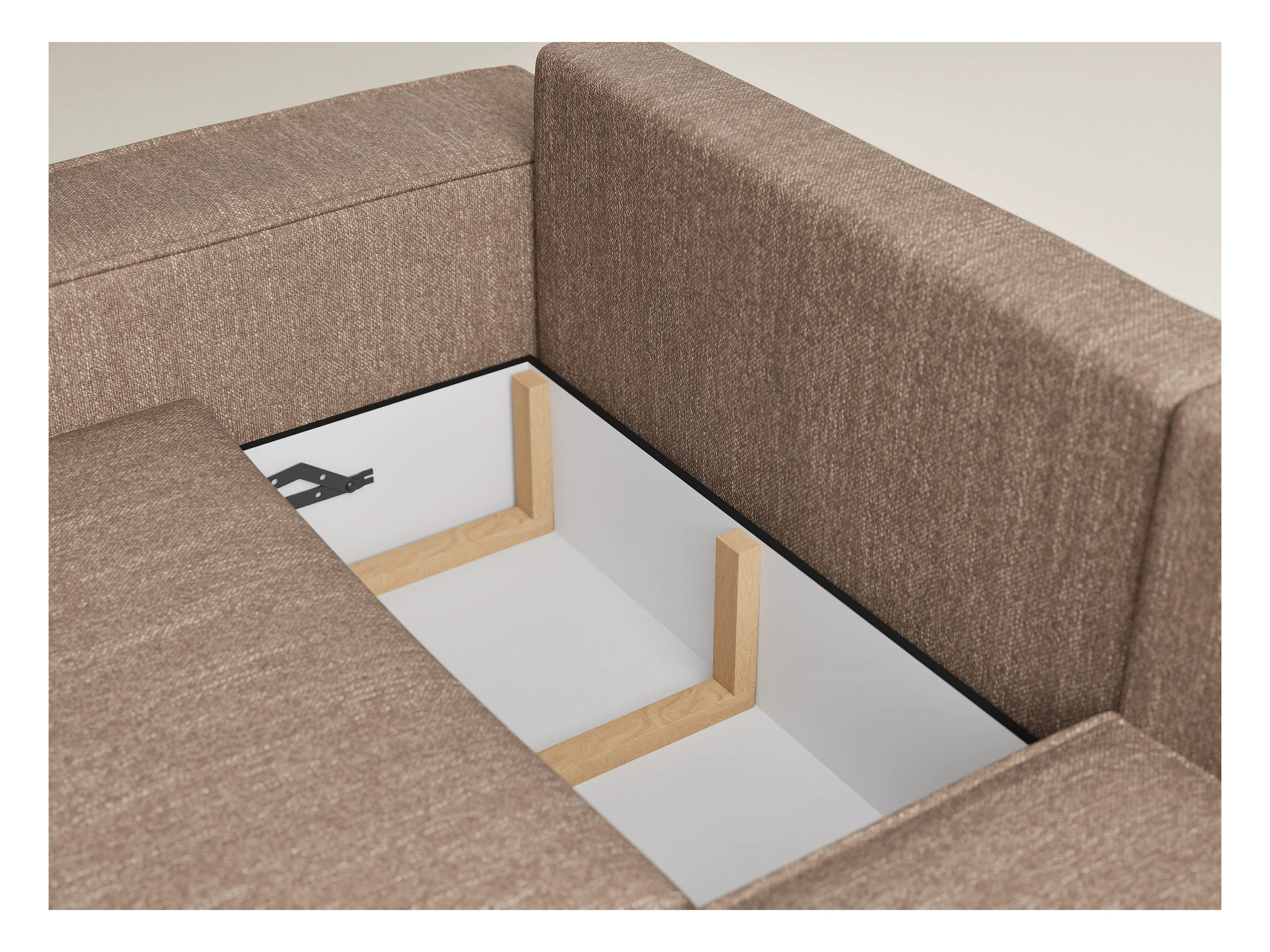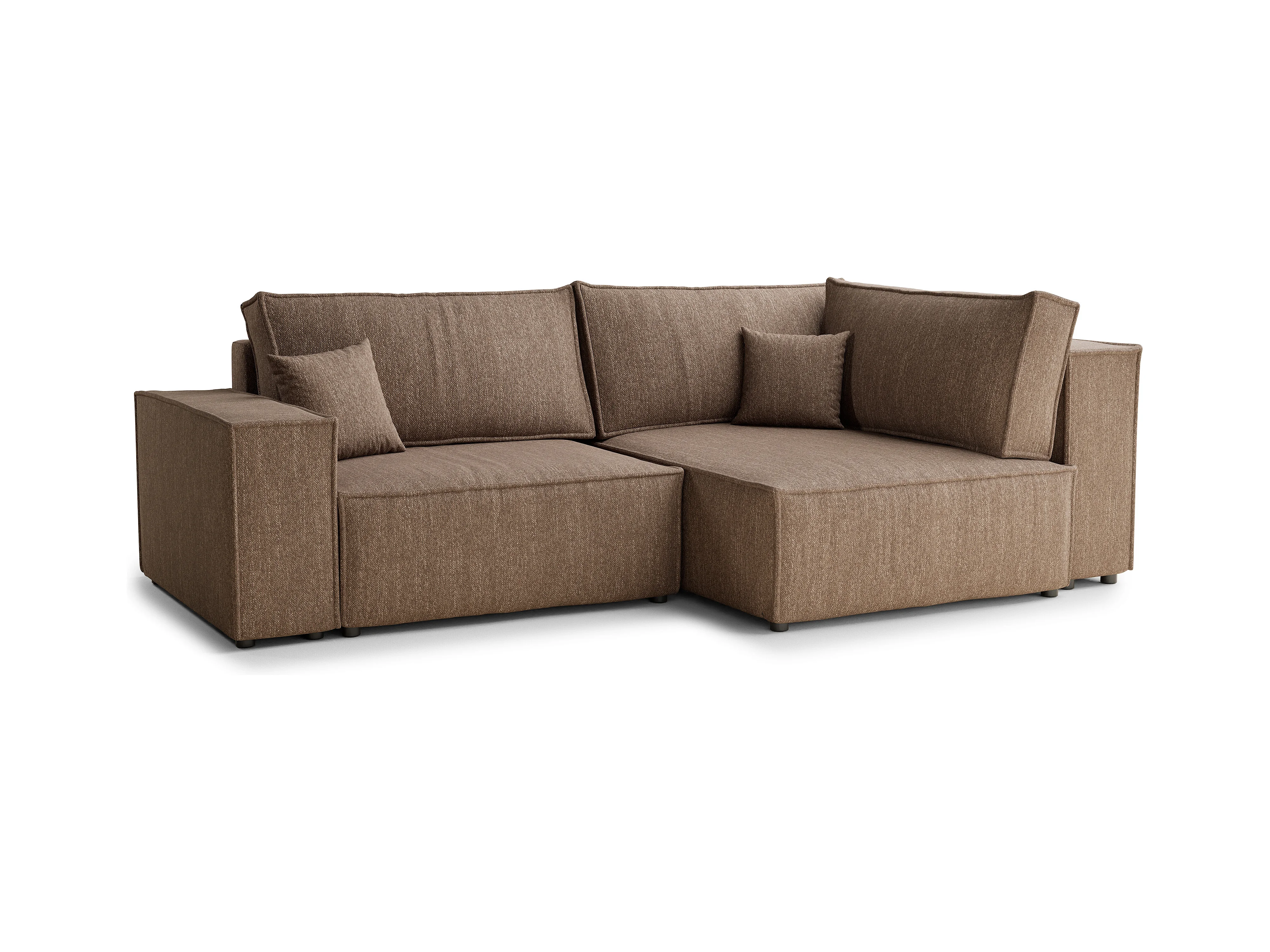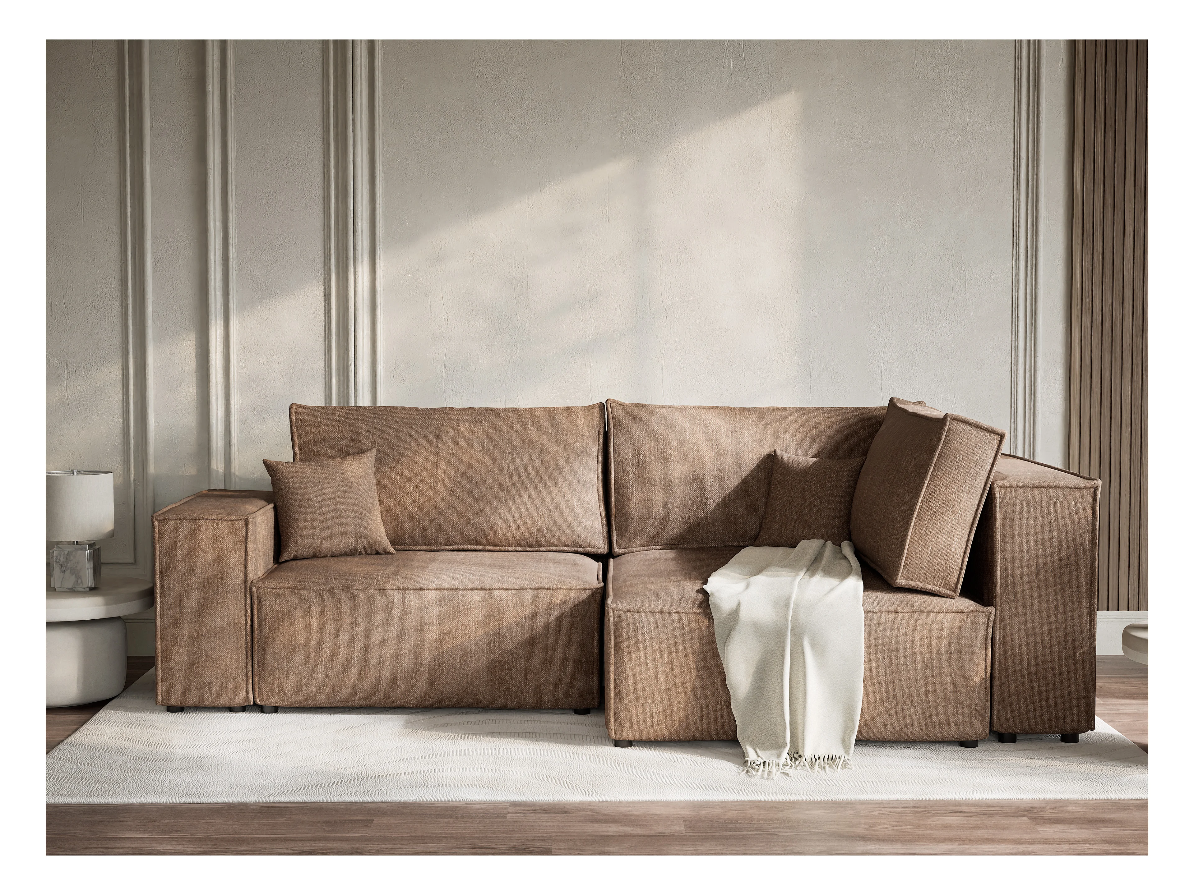 Canapé d'angle droit avec fonction lit en tissu tressé brun TONGA