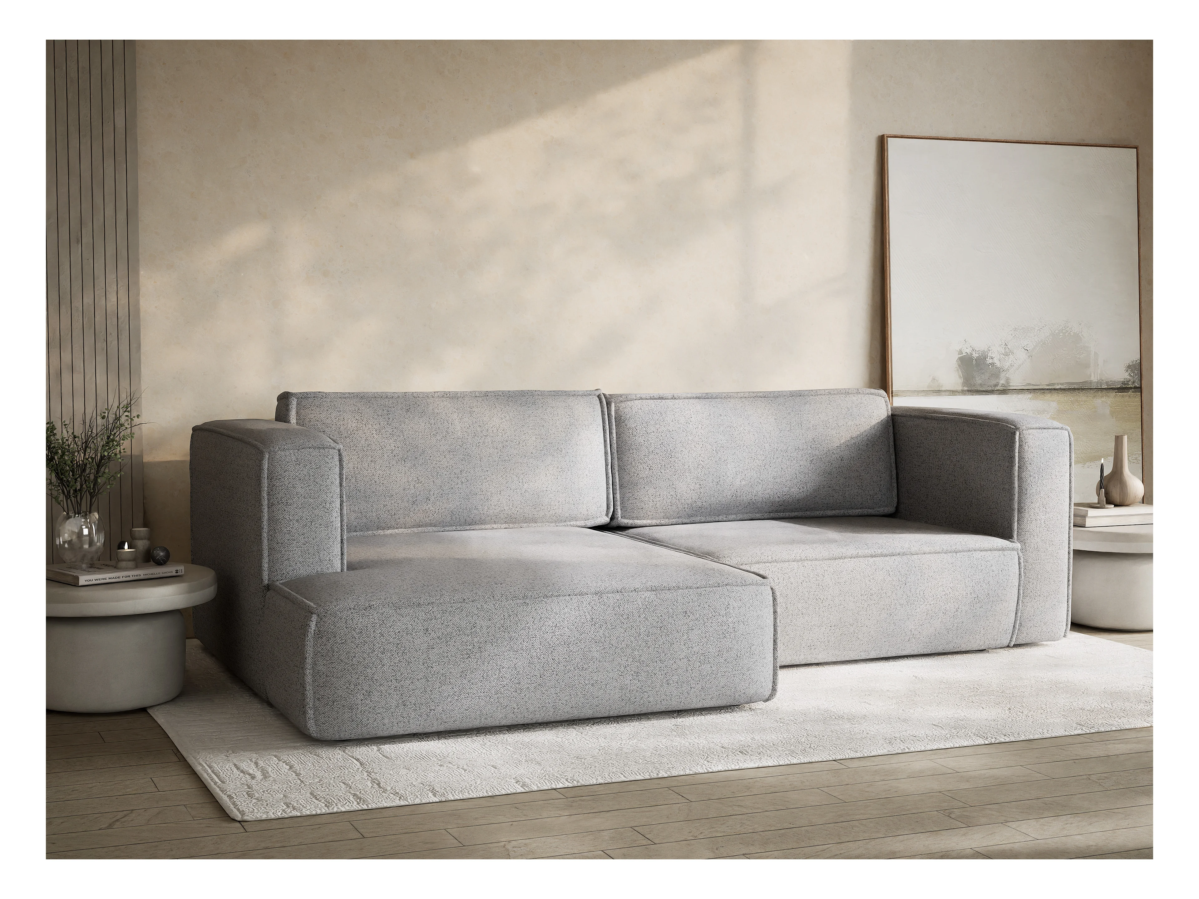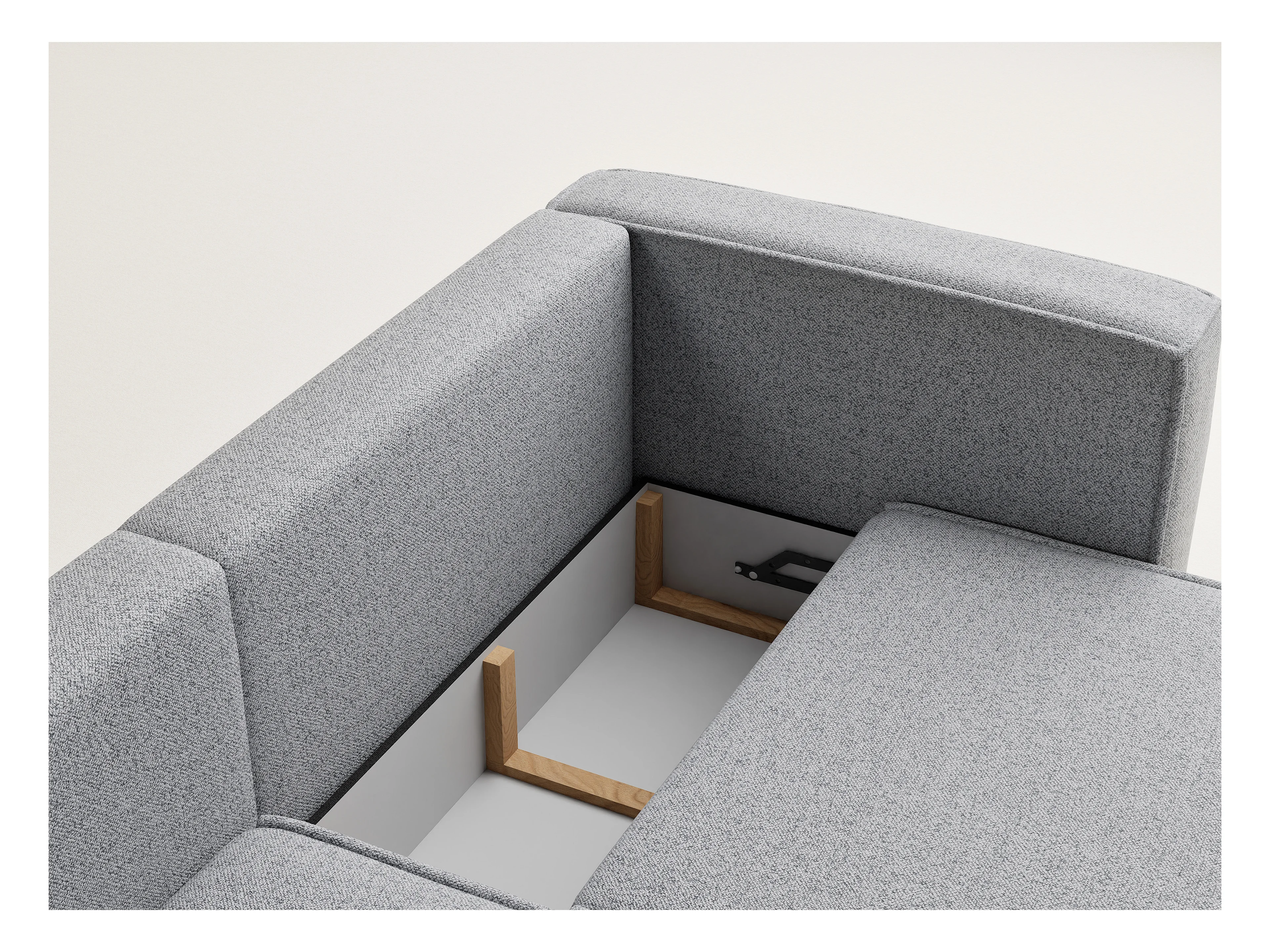 Canapé d'angle droit avec fonction lit en tissu tressé gris clair VELTO