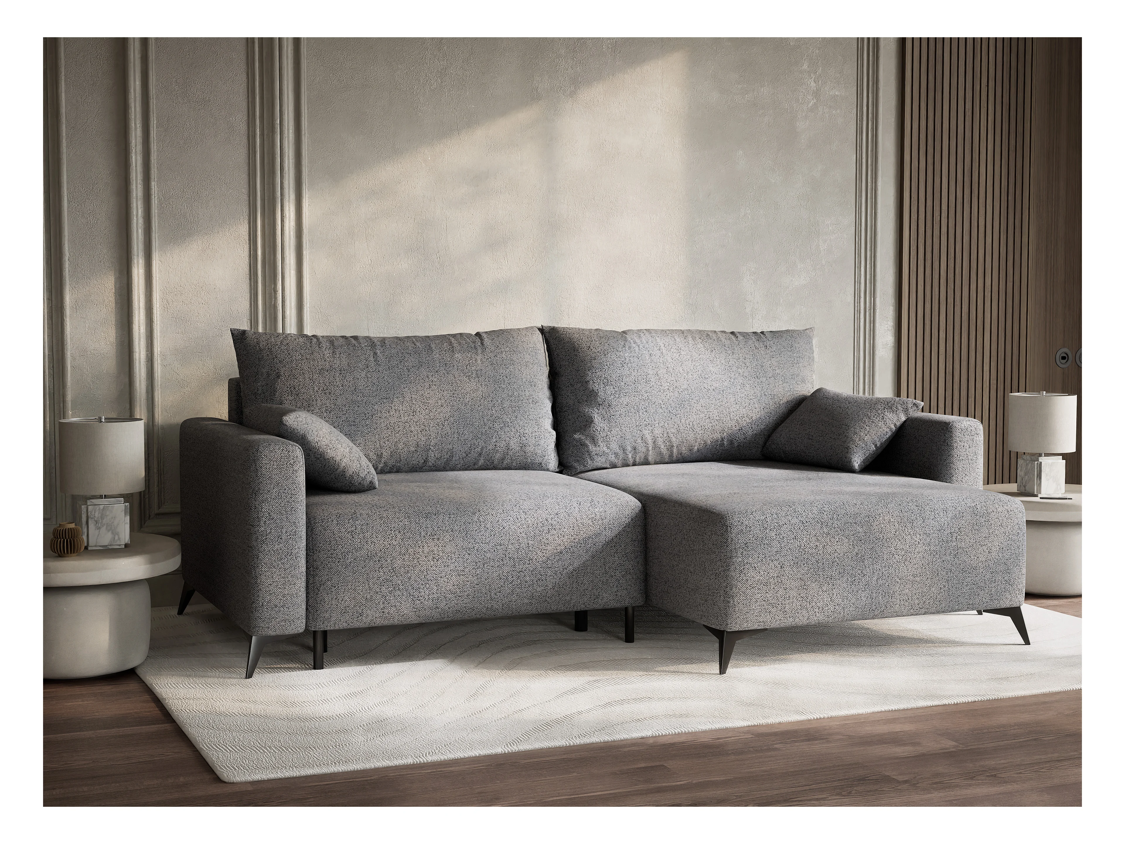 Canapé d'angle droit avec fonction lit en tissu tressé gris LEON