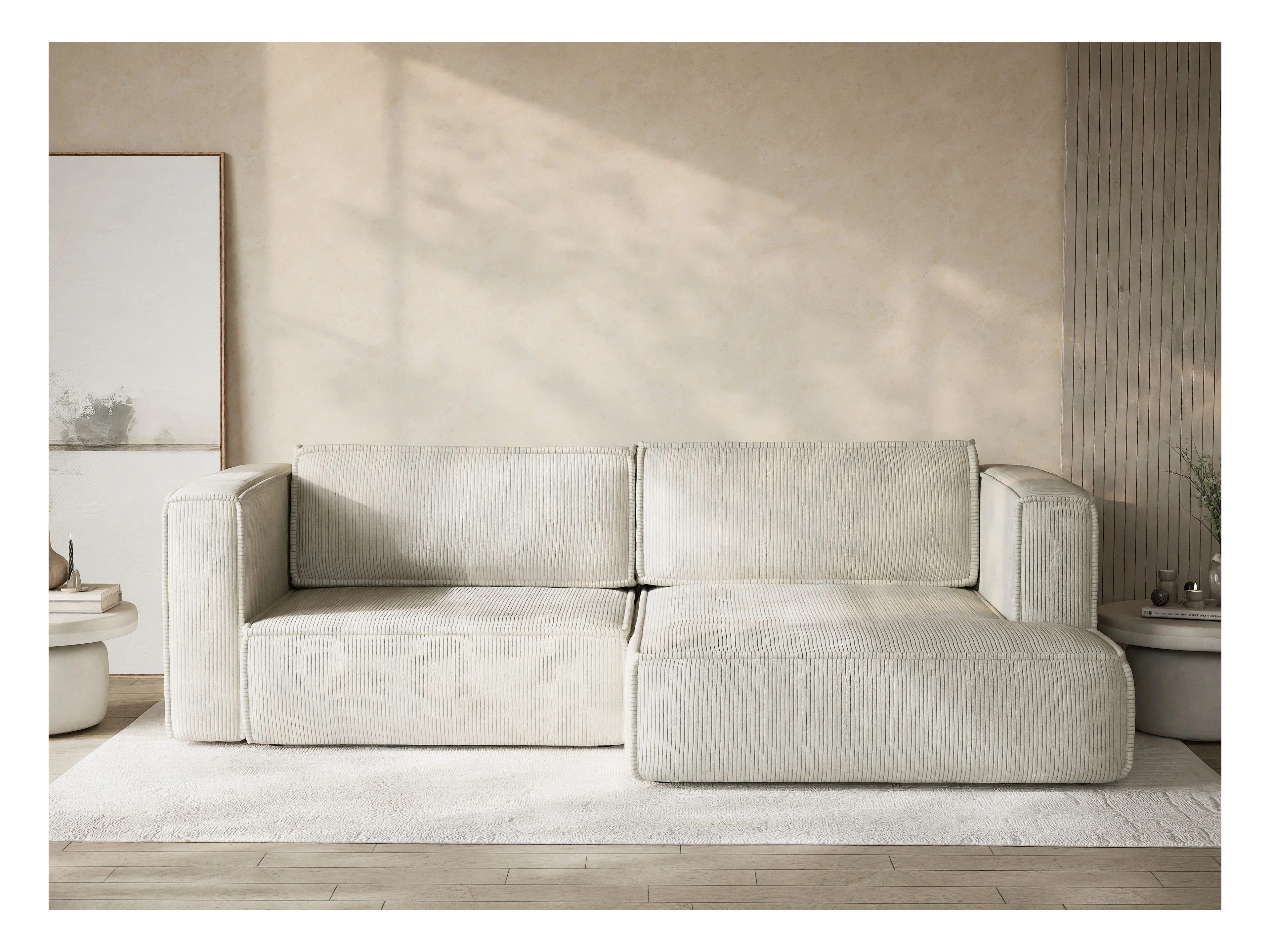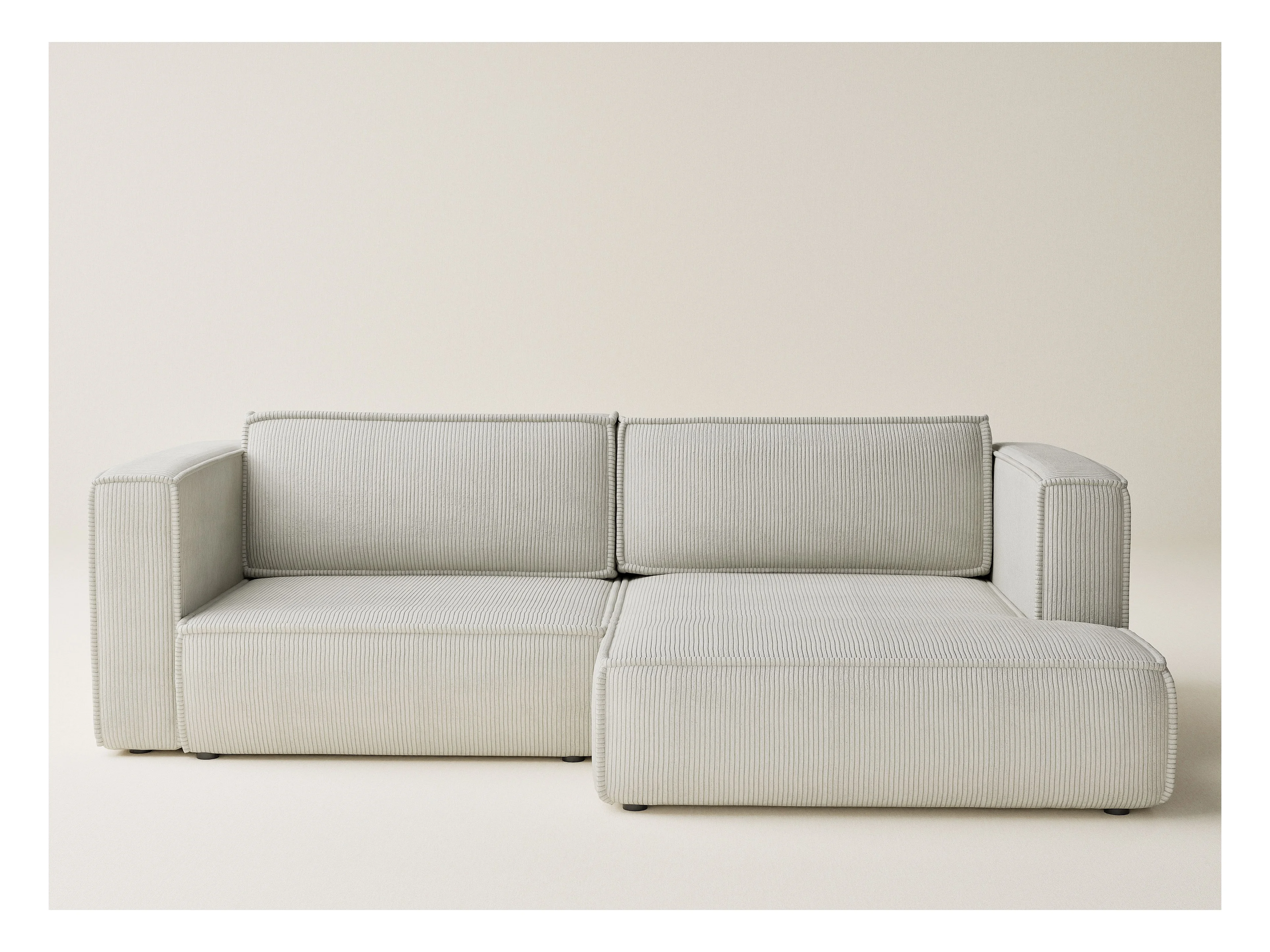 Canapé d'angle droit avec fonction lit en velours creme VELTO