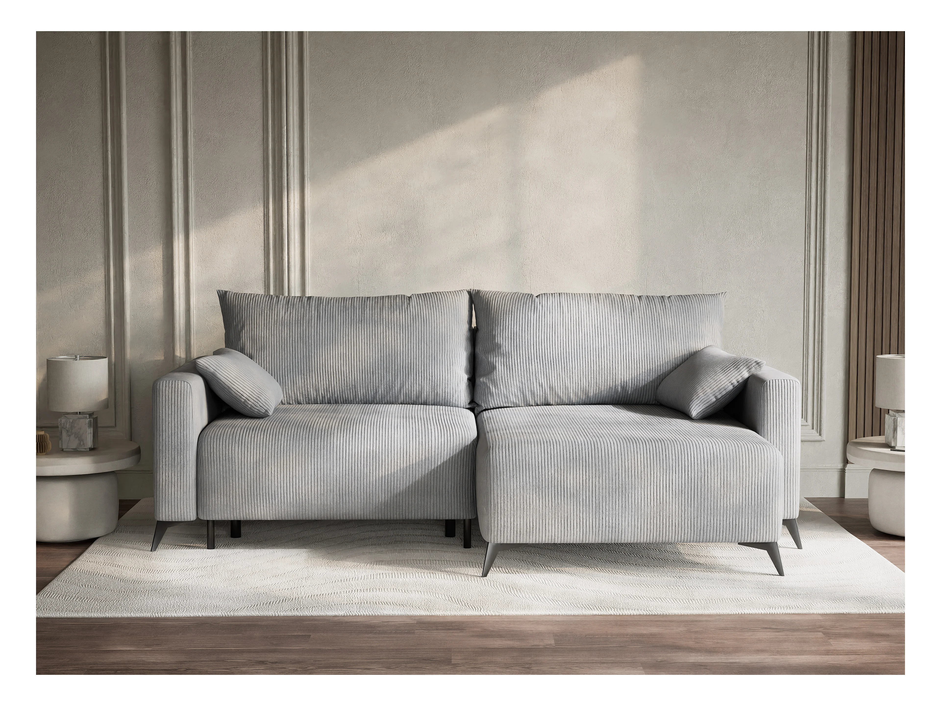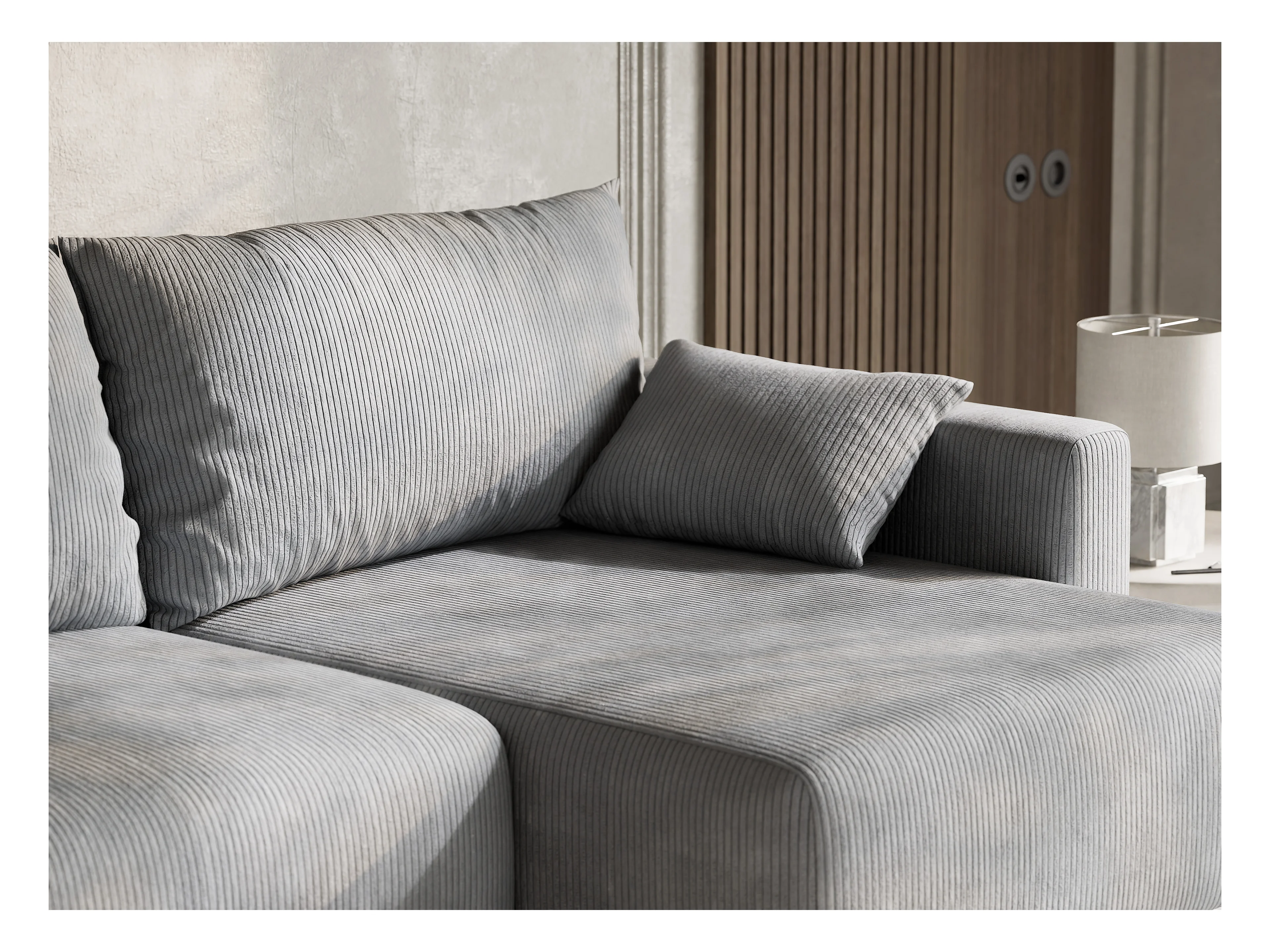 Canapé d'angle droit avec fonction lit en velours gris clair LEON