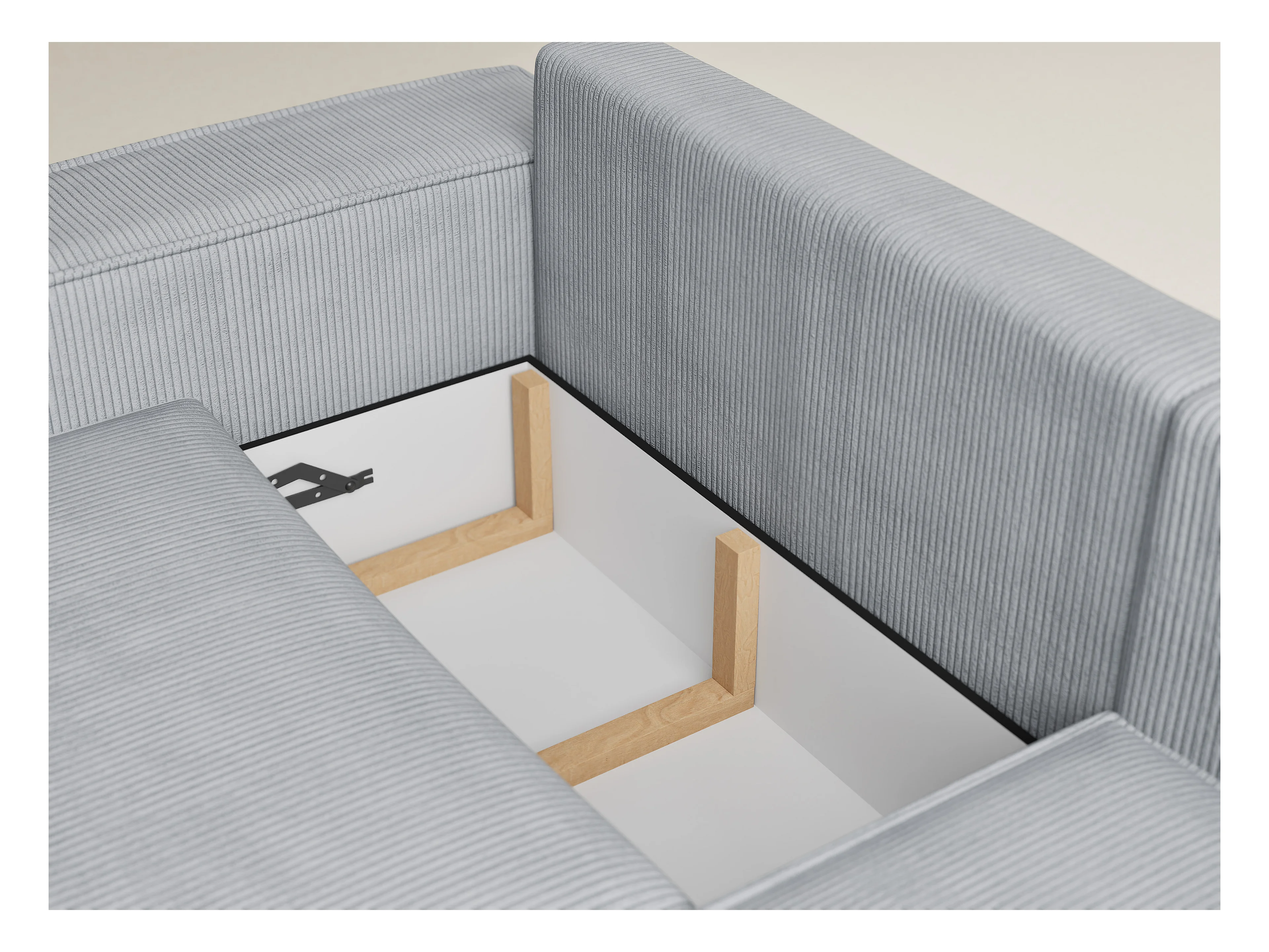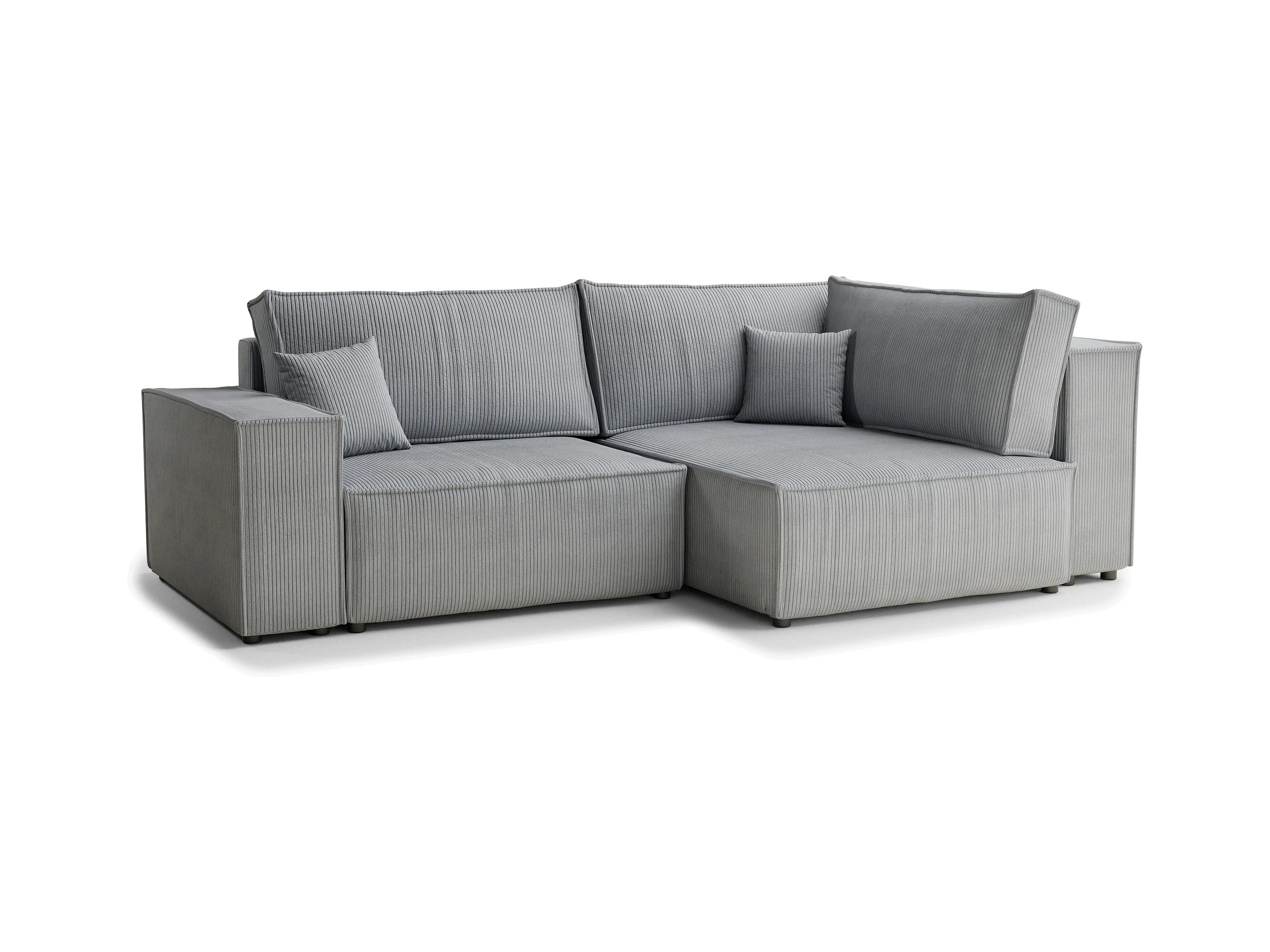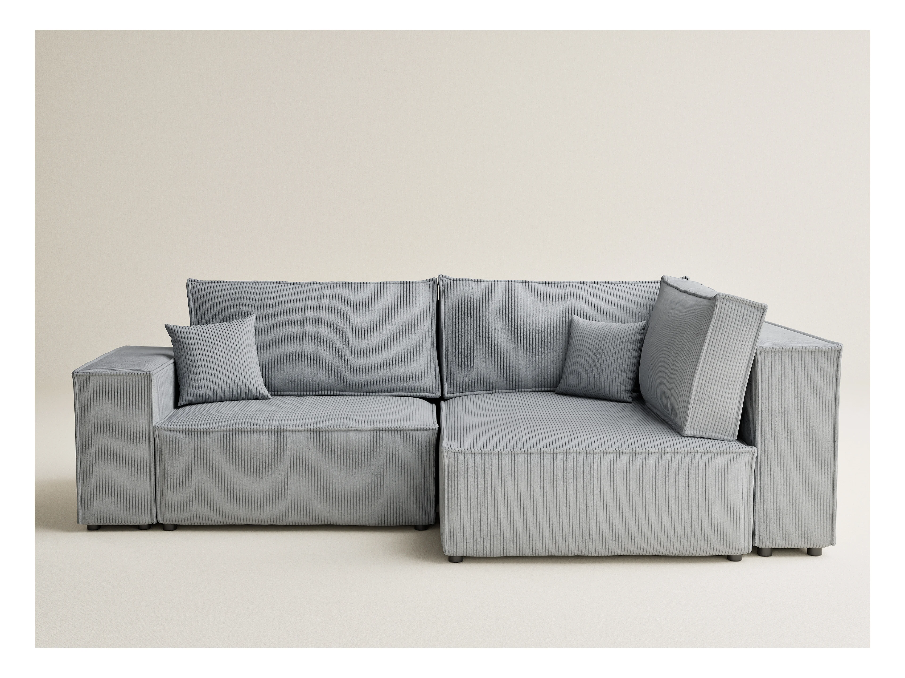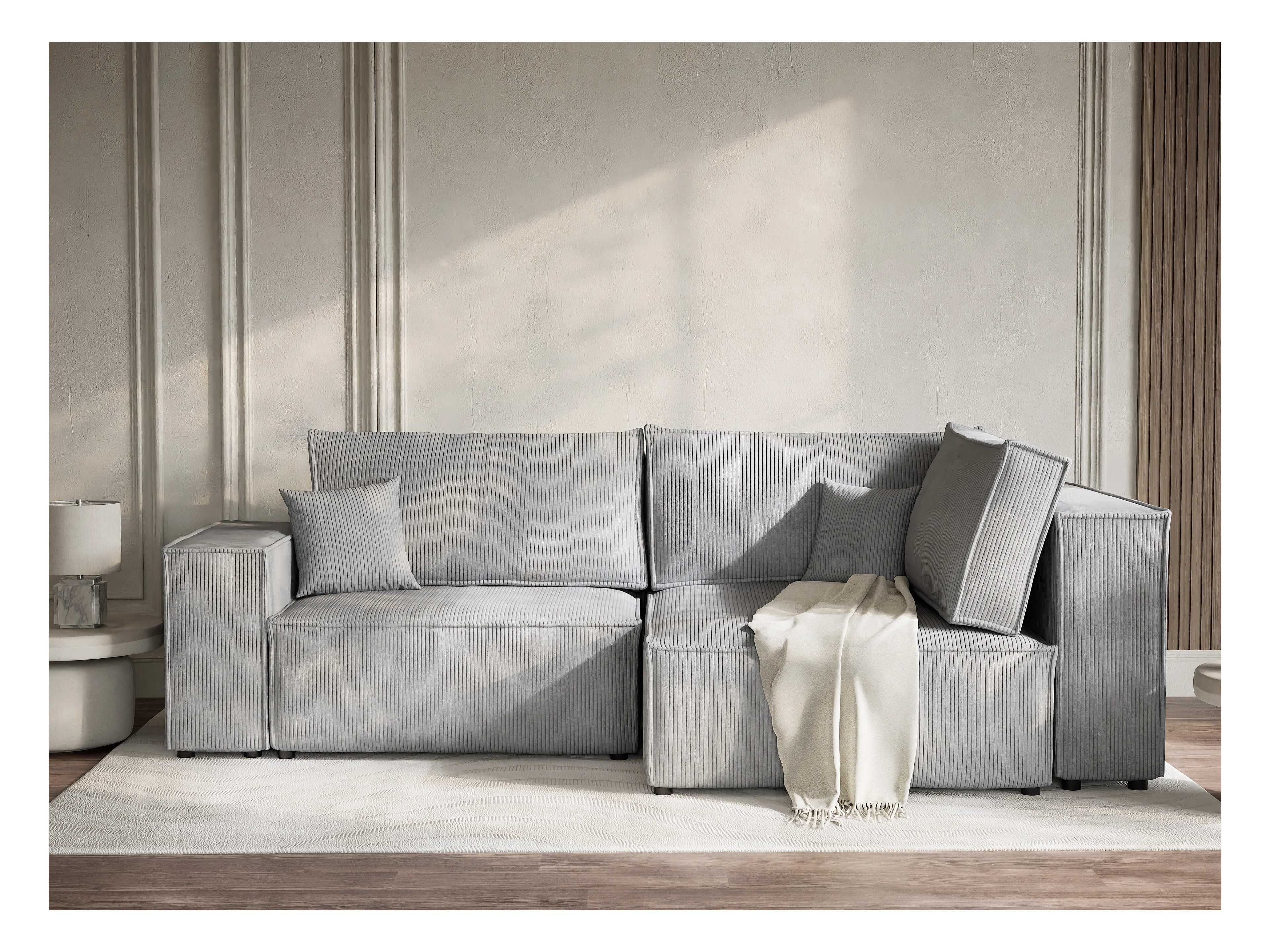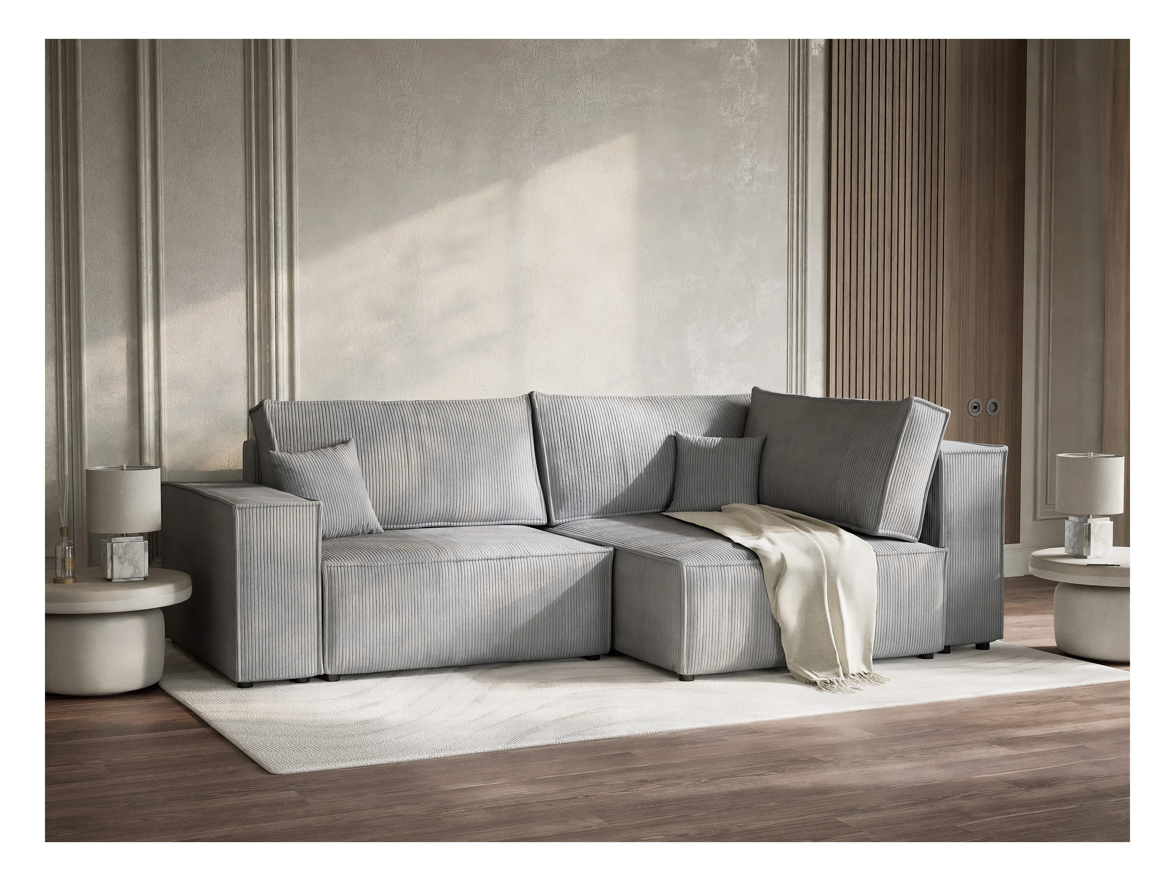 Canapé d'angle droit avec fonction lit en velours gris clair TONGA
