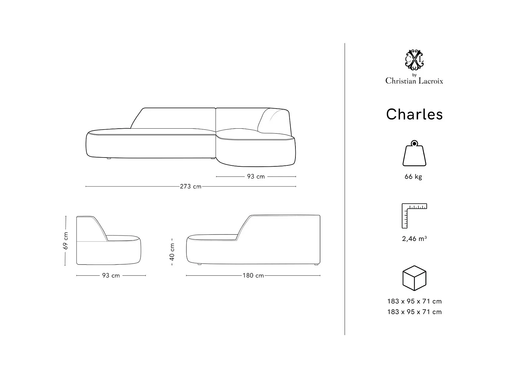 CXL by Christian Lacroix - Canapé d'angle droit "Charles" 4 places en velours motif de jardin bleu clair,bleu - 273x180x69cm