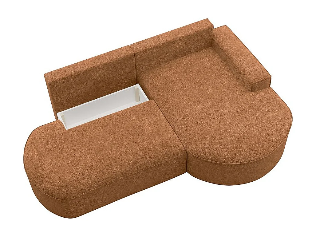 Canapé d'angle droit convertible 4 places MARLO en tissu chenille - Terracotta