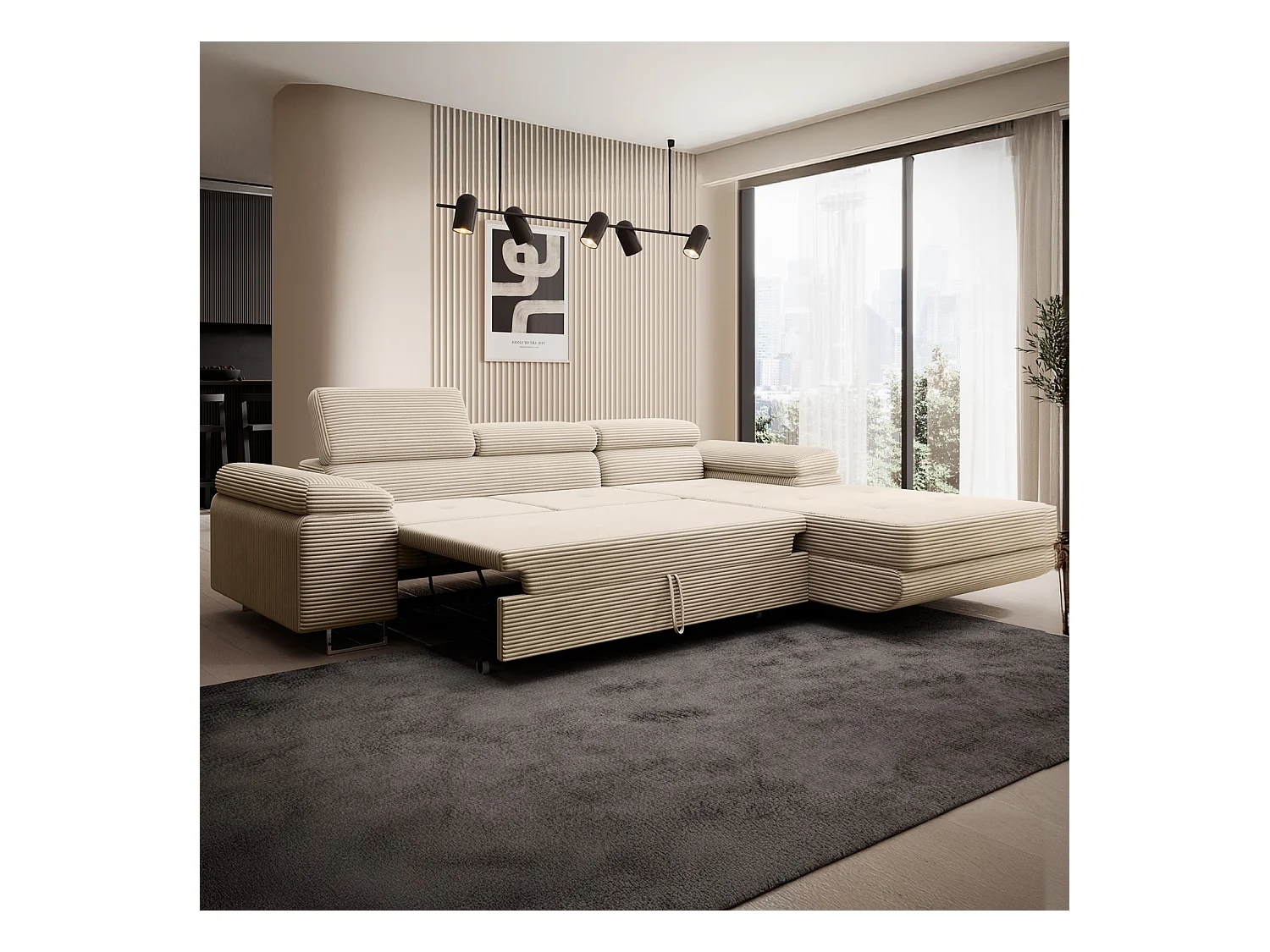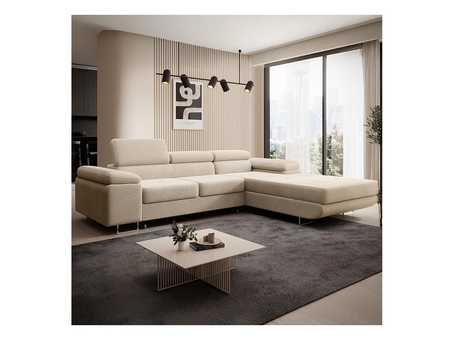 Canapé d'angle droit convertible Alphonso velours côtelé Beige