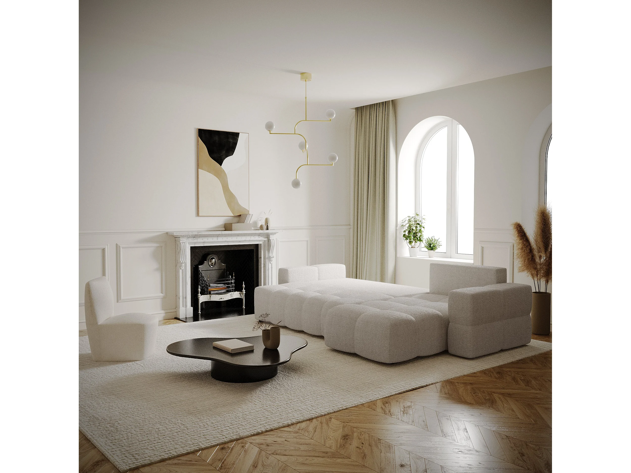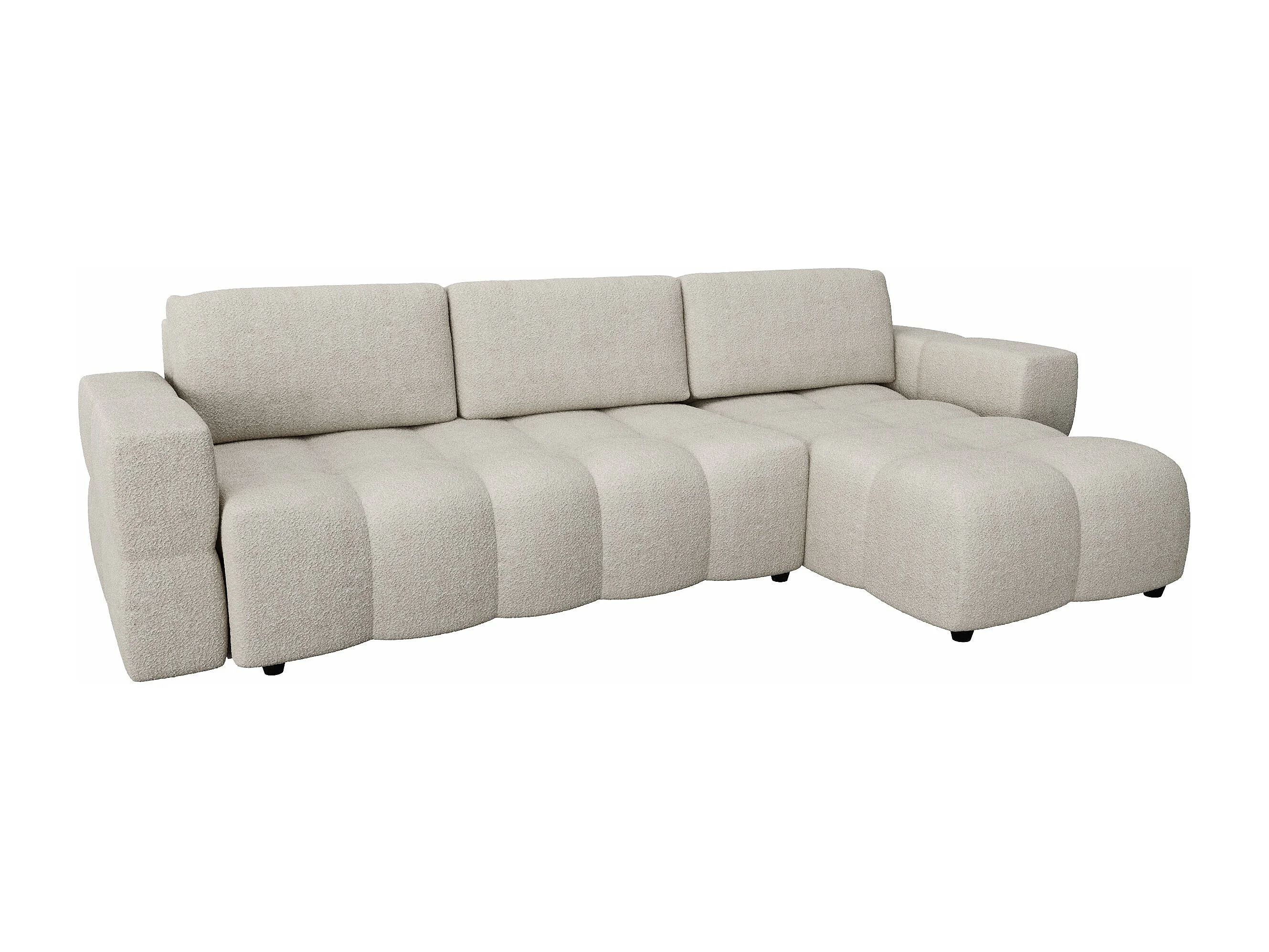 Canapé d'angle droit convertible coffre bouclette beige 260cm
