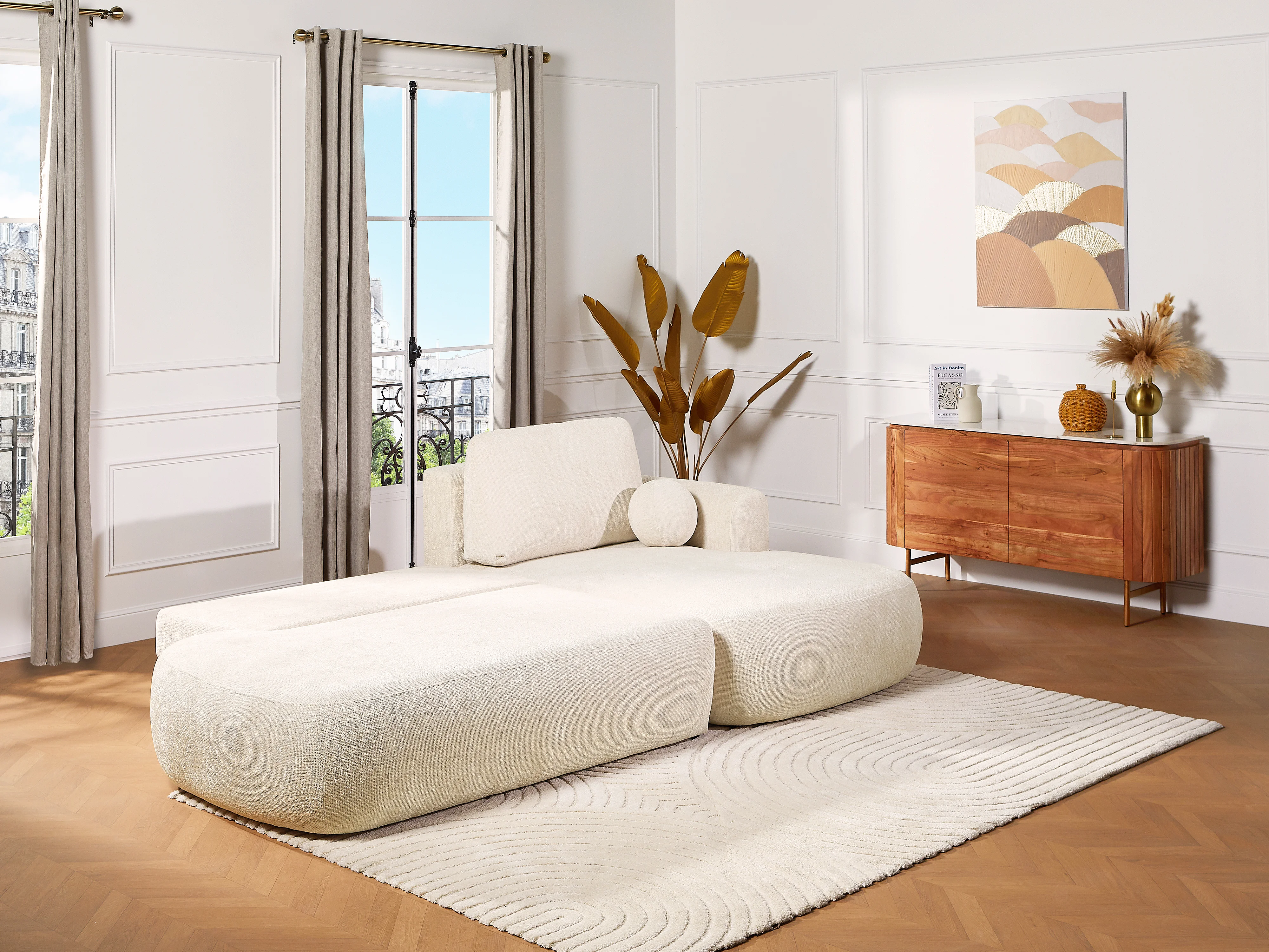 Canapé d'angle droit convertible en tissu chenille beige BROCARO de Maison Céphy