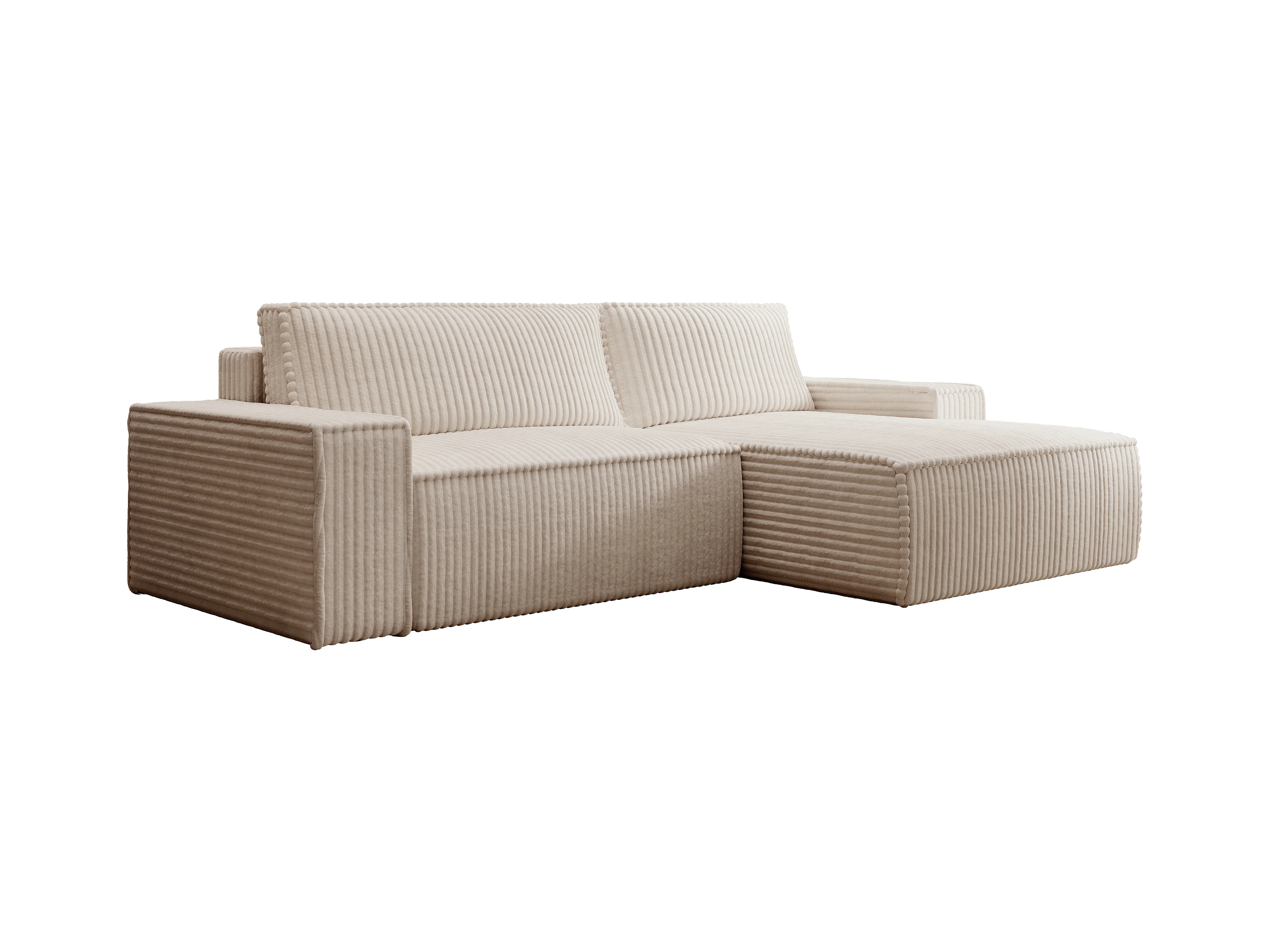 Canapé d'angle droit convertible en velours côtelé grosses côtes beige AMELIA