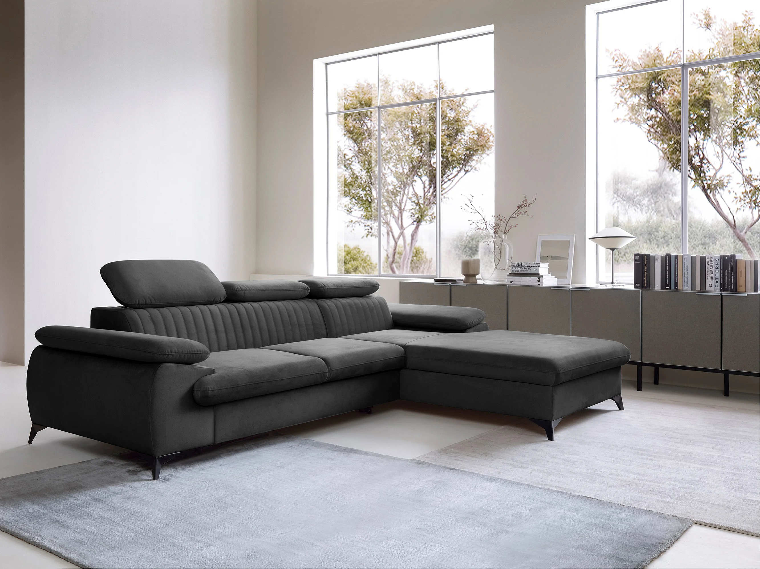 Canapé d'angle droit convertible en velours gris anthracite SAMARA de Pascal Morabito