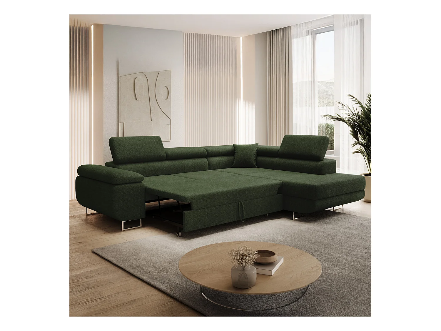 Canapé d'angle droit convertible Marius bouclette Kaki