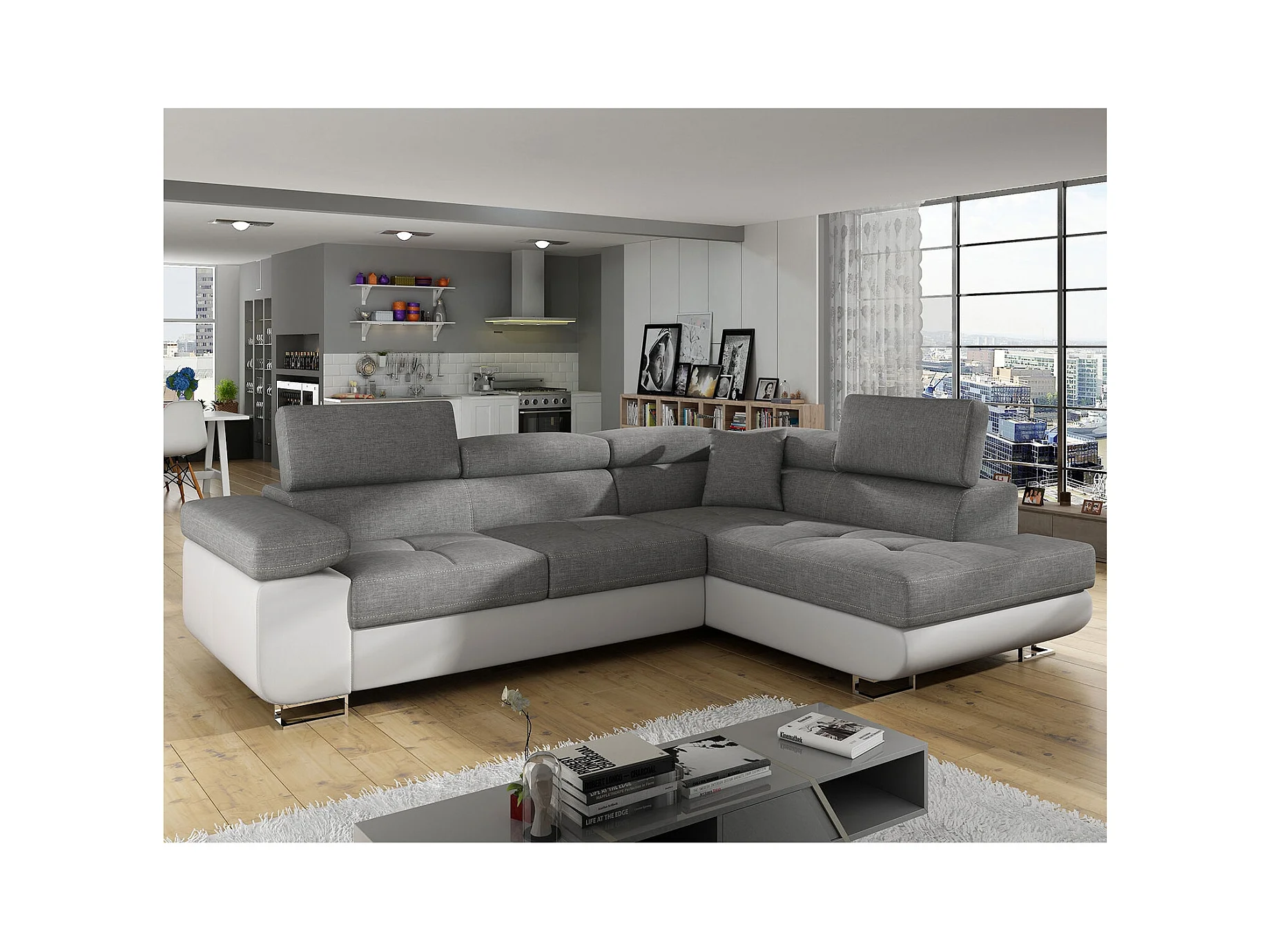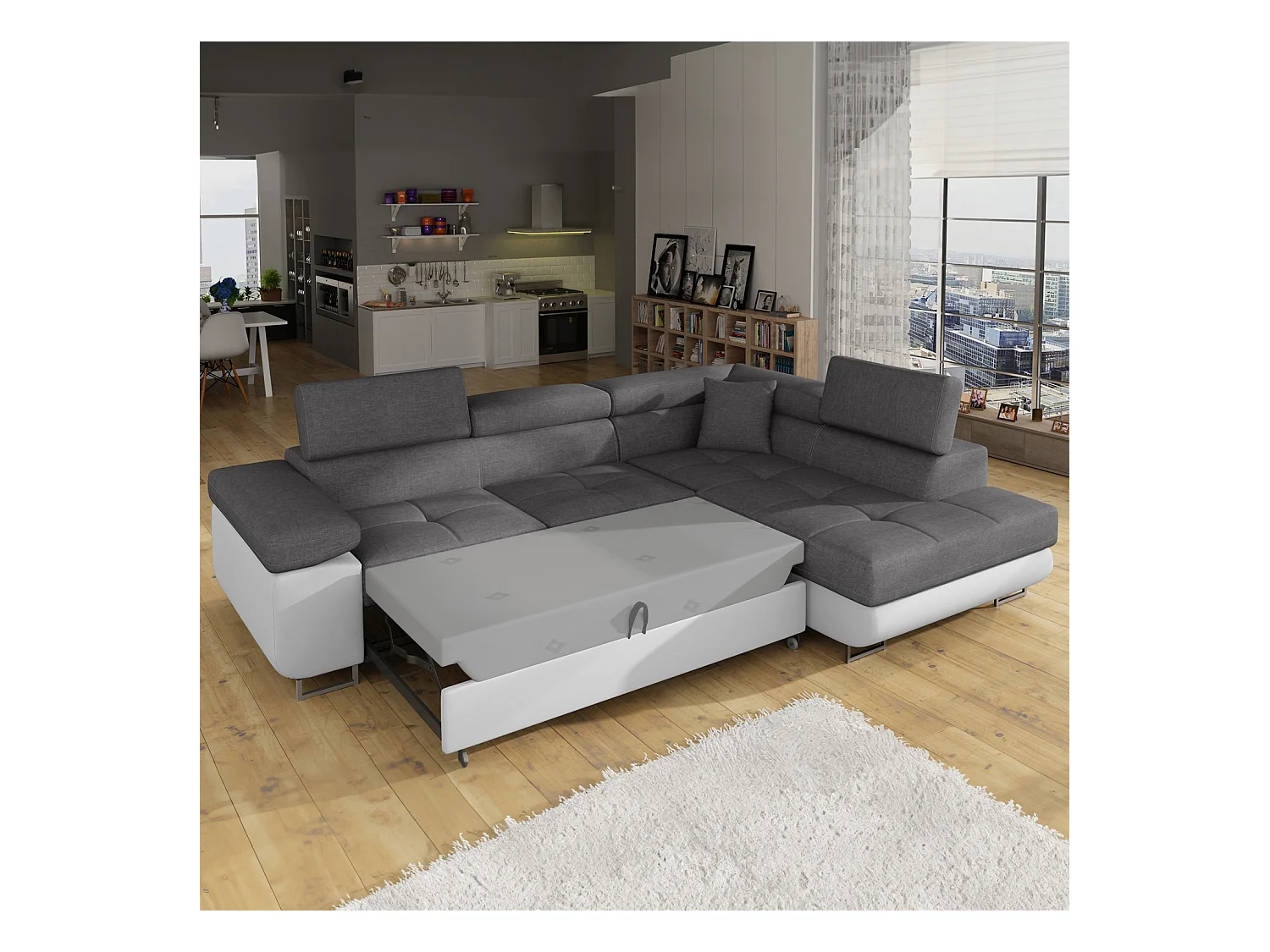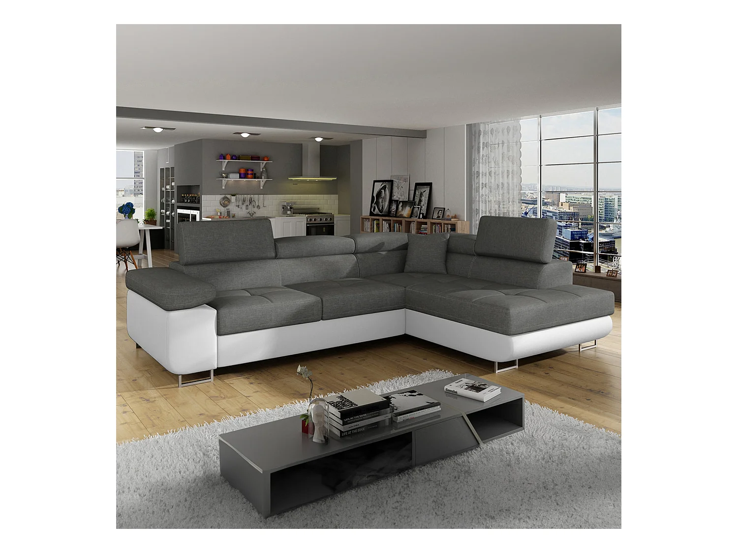 Canapé d'angle droit convertible Marius Gris et Blanc