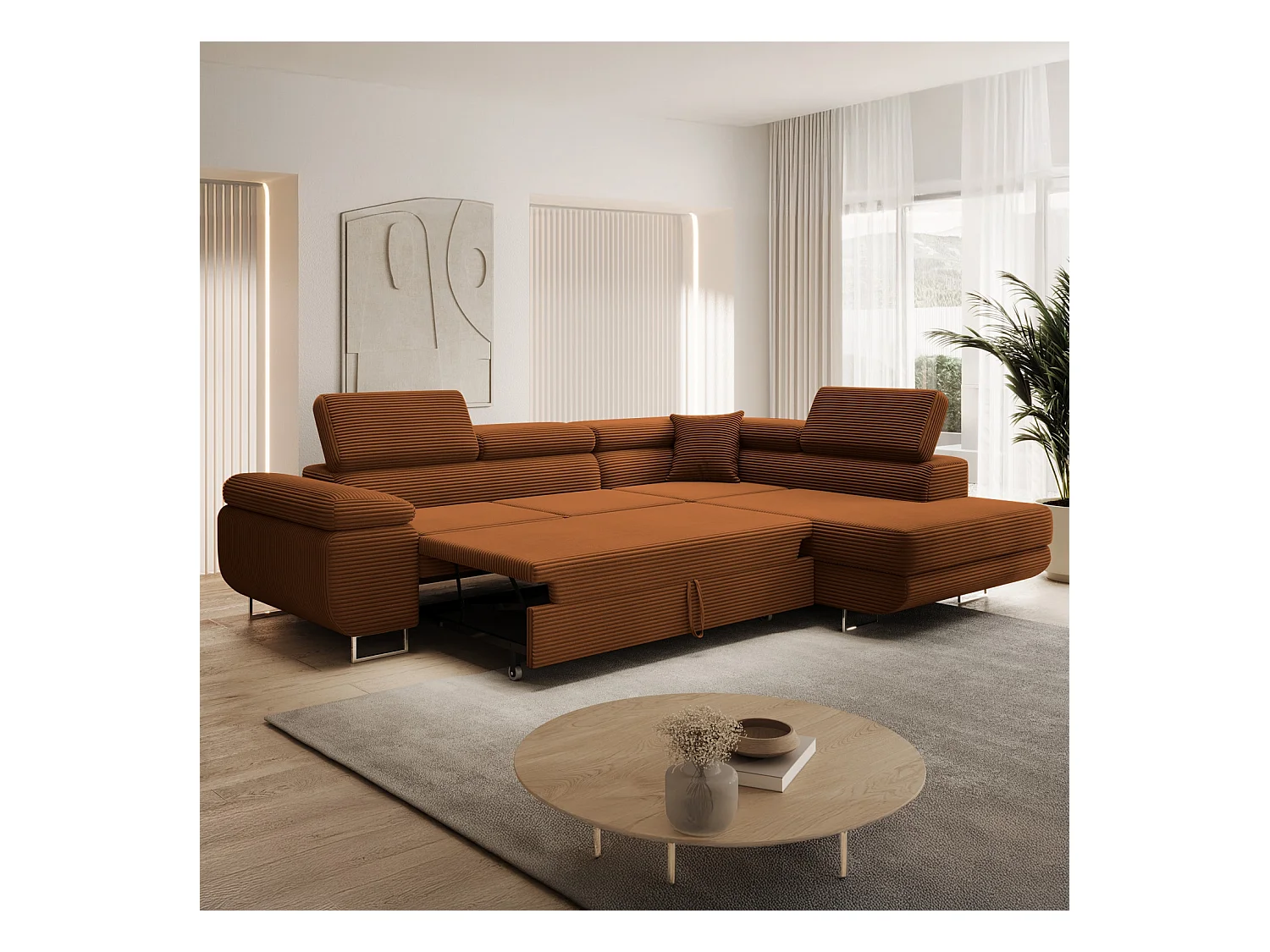 Canapé d'angle droit convertible Marius velours côtelé Terracotta