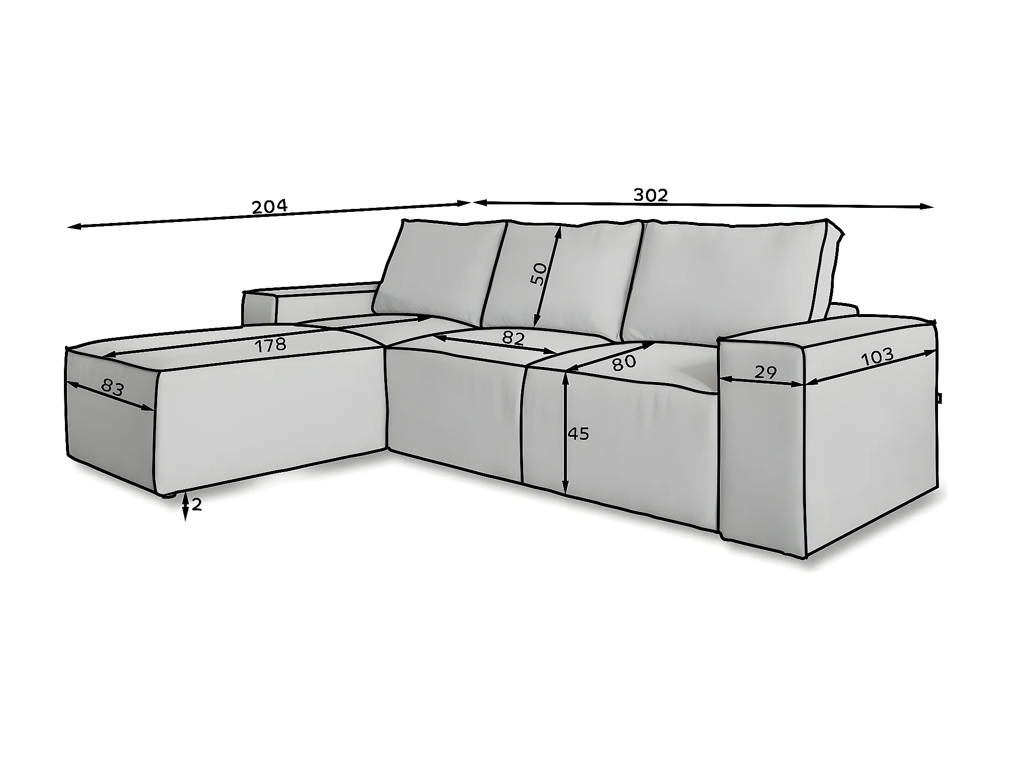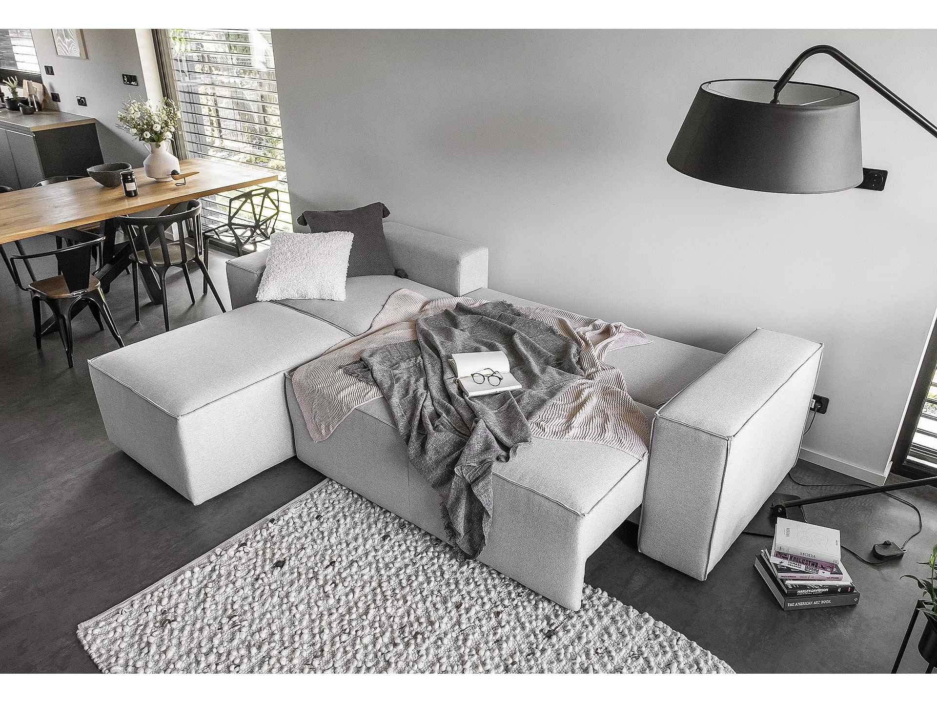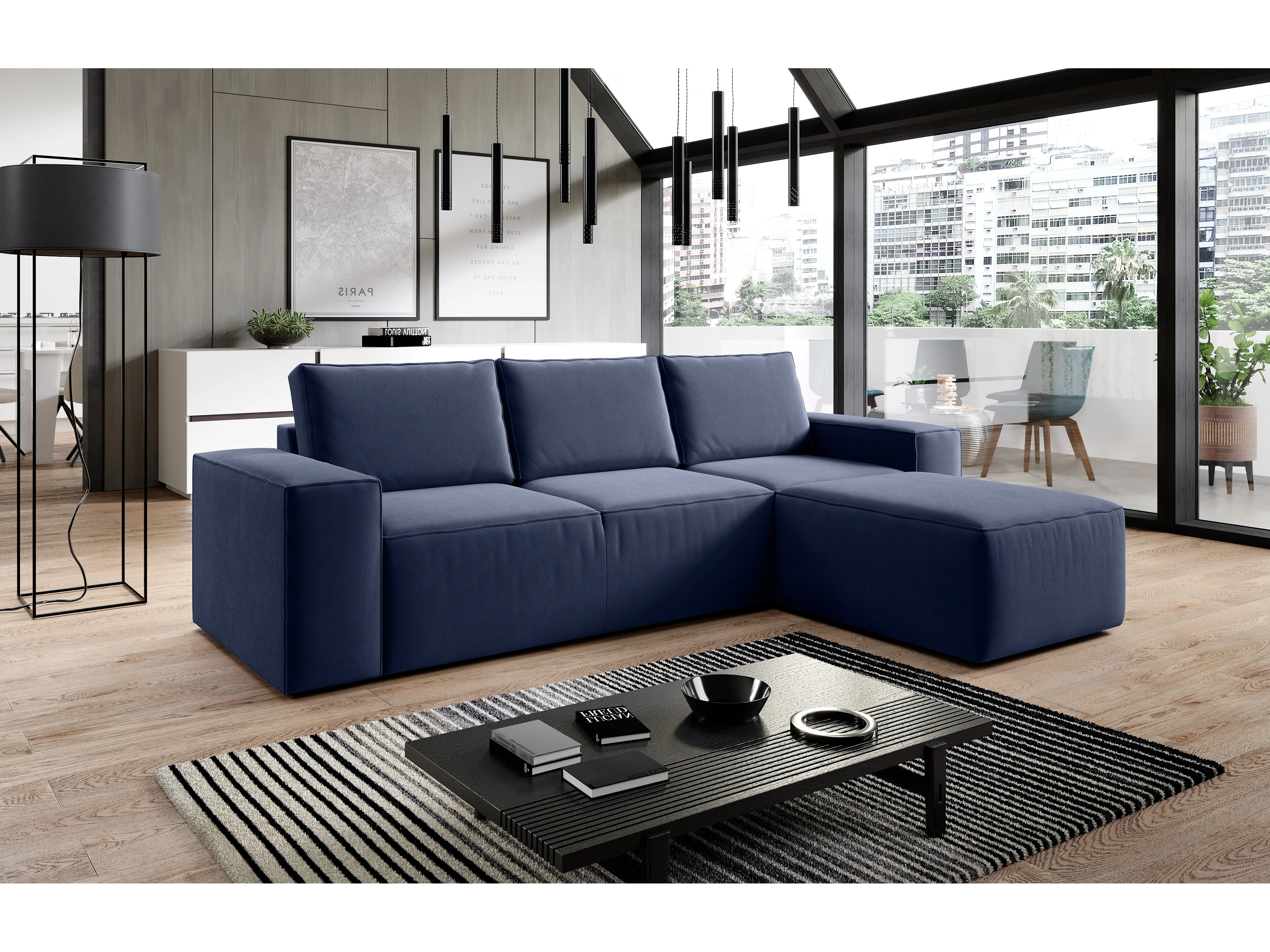 Canapé d'angle droit convertible moderne tissu bleu turquin Willace 302cm