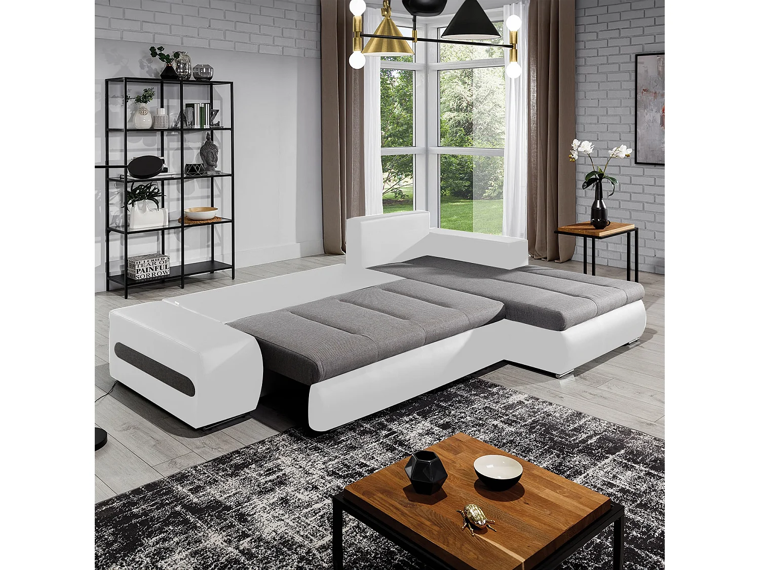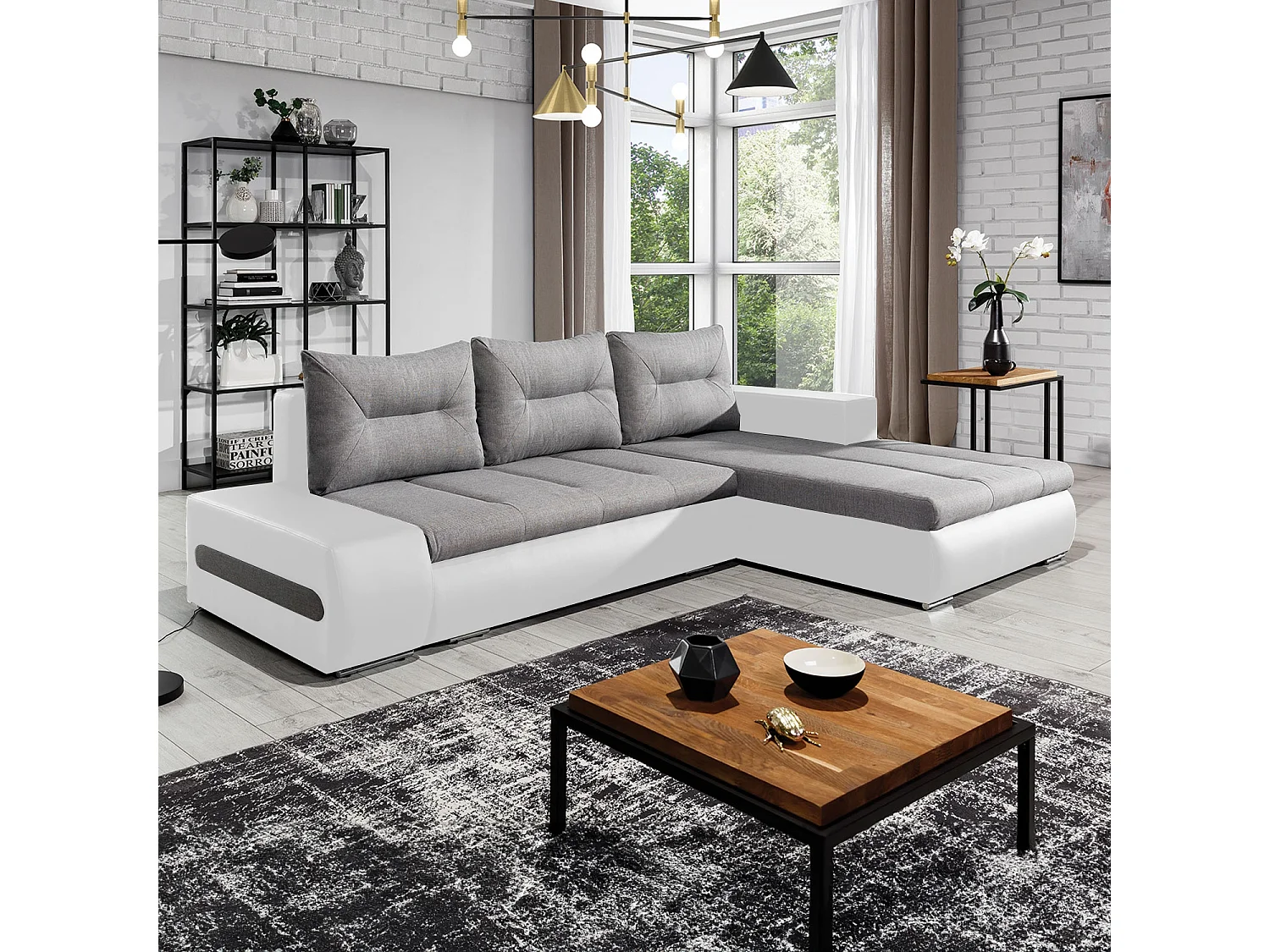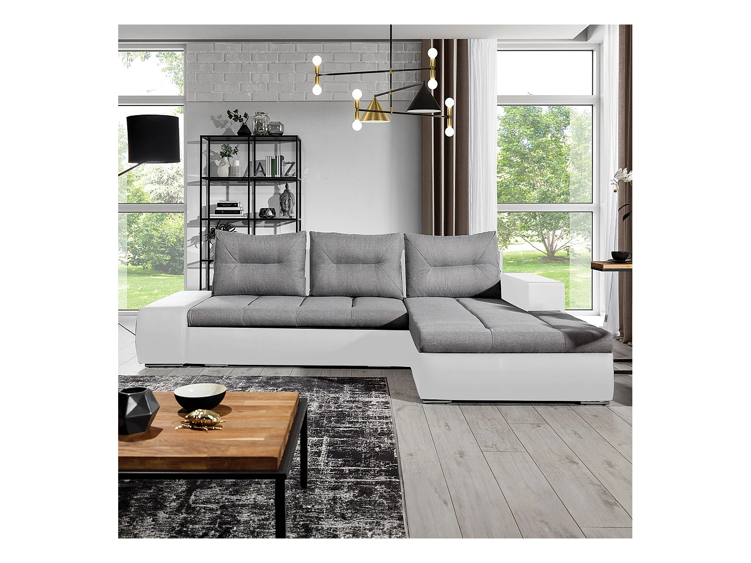 Canapé d'angle droit convertible Santiago Gris et Blanc