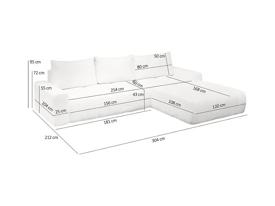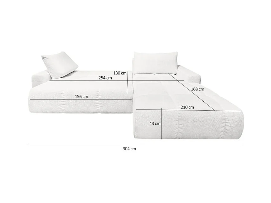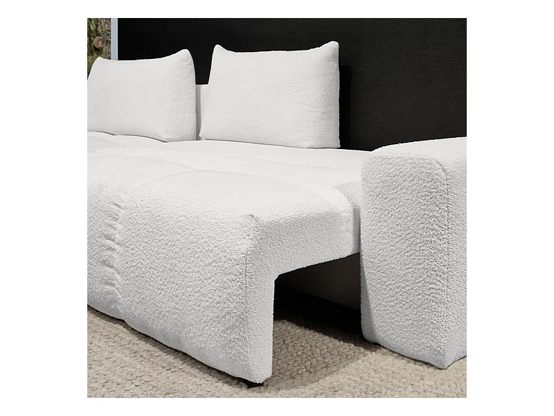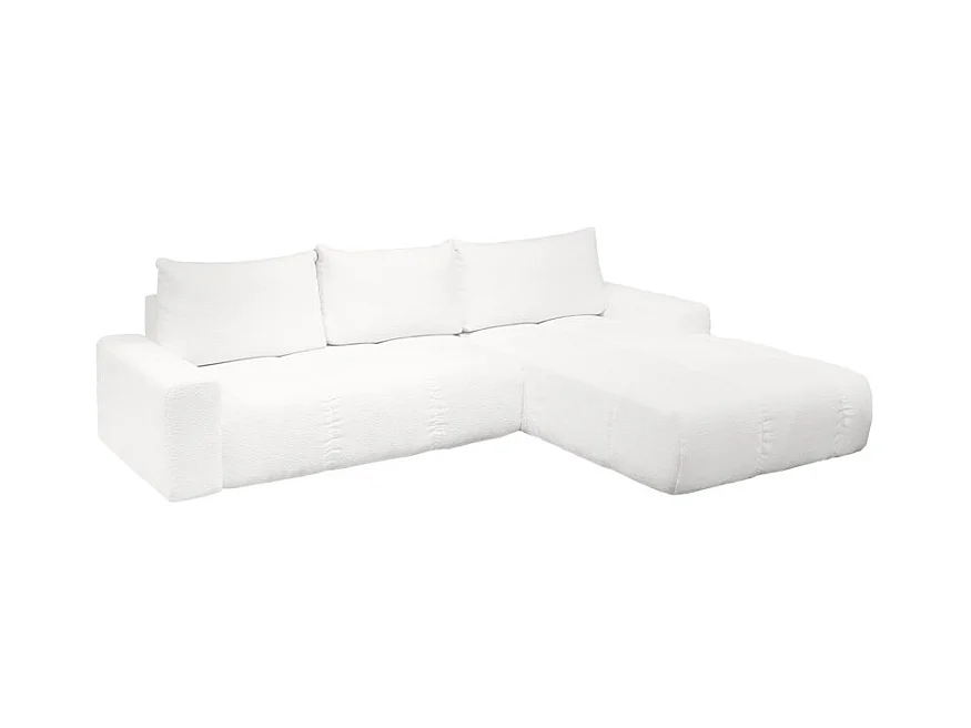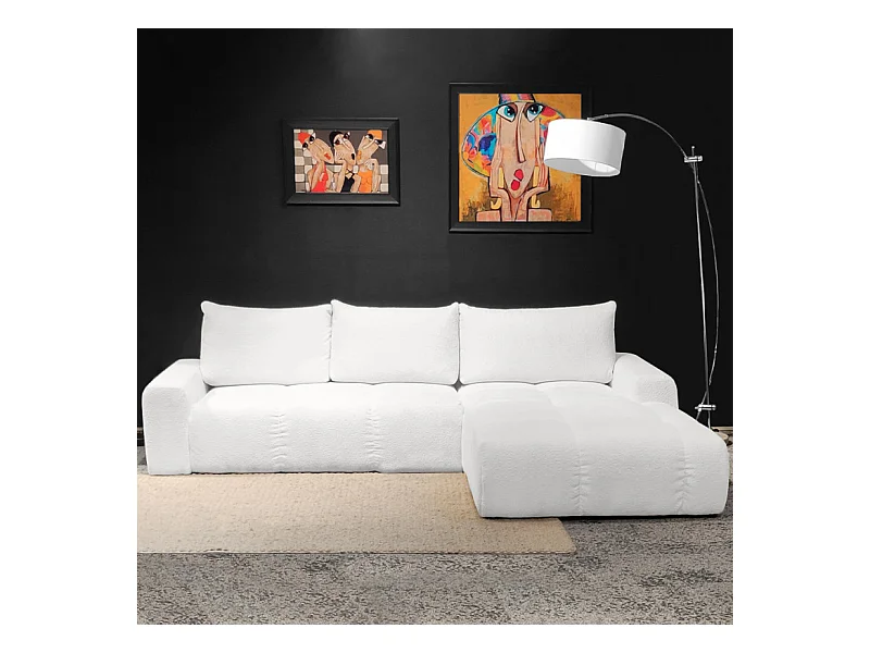 Canapé d'angle droit convertible tissu bouclette blanc 304 cm - VOLT