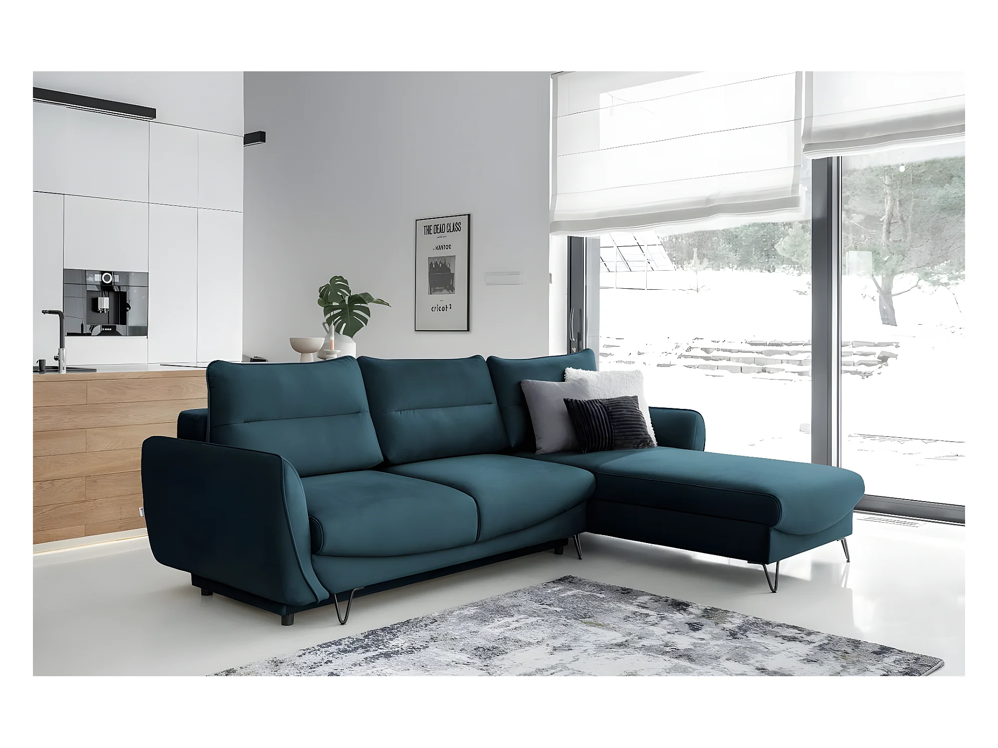 Canapé d'angle droit convertible tissu doux bleu nuit Zurik 276cm