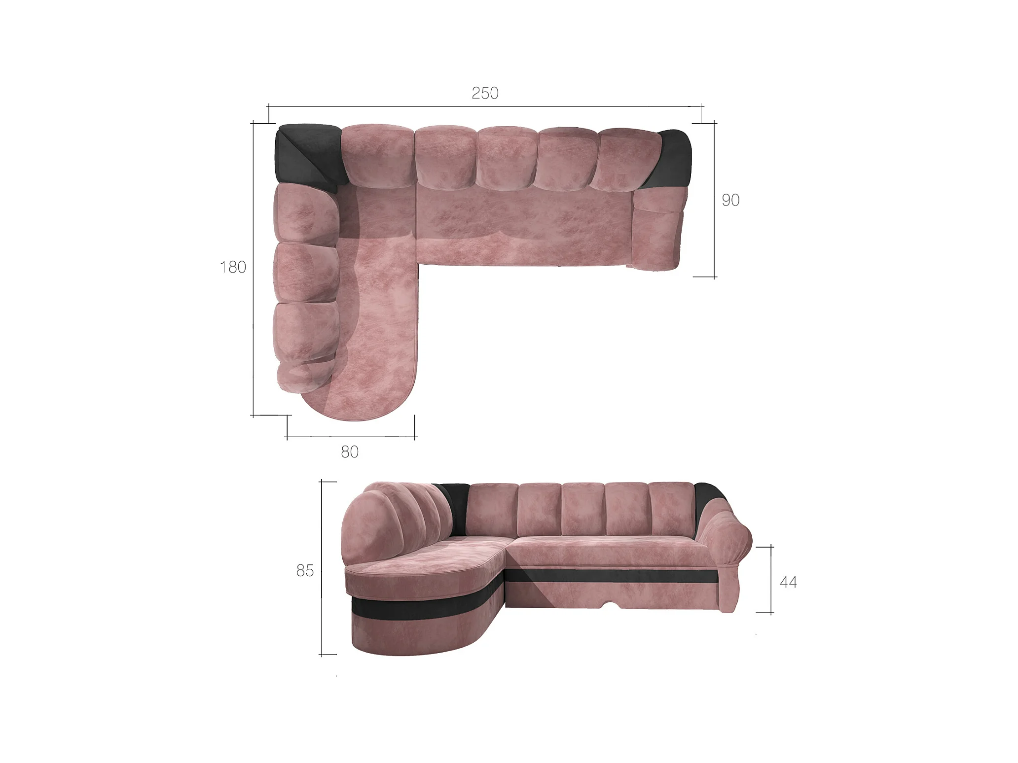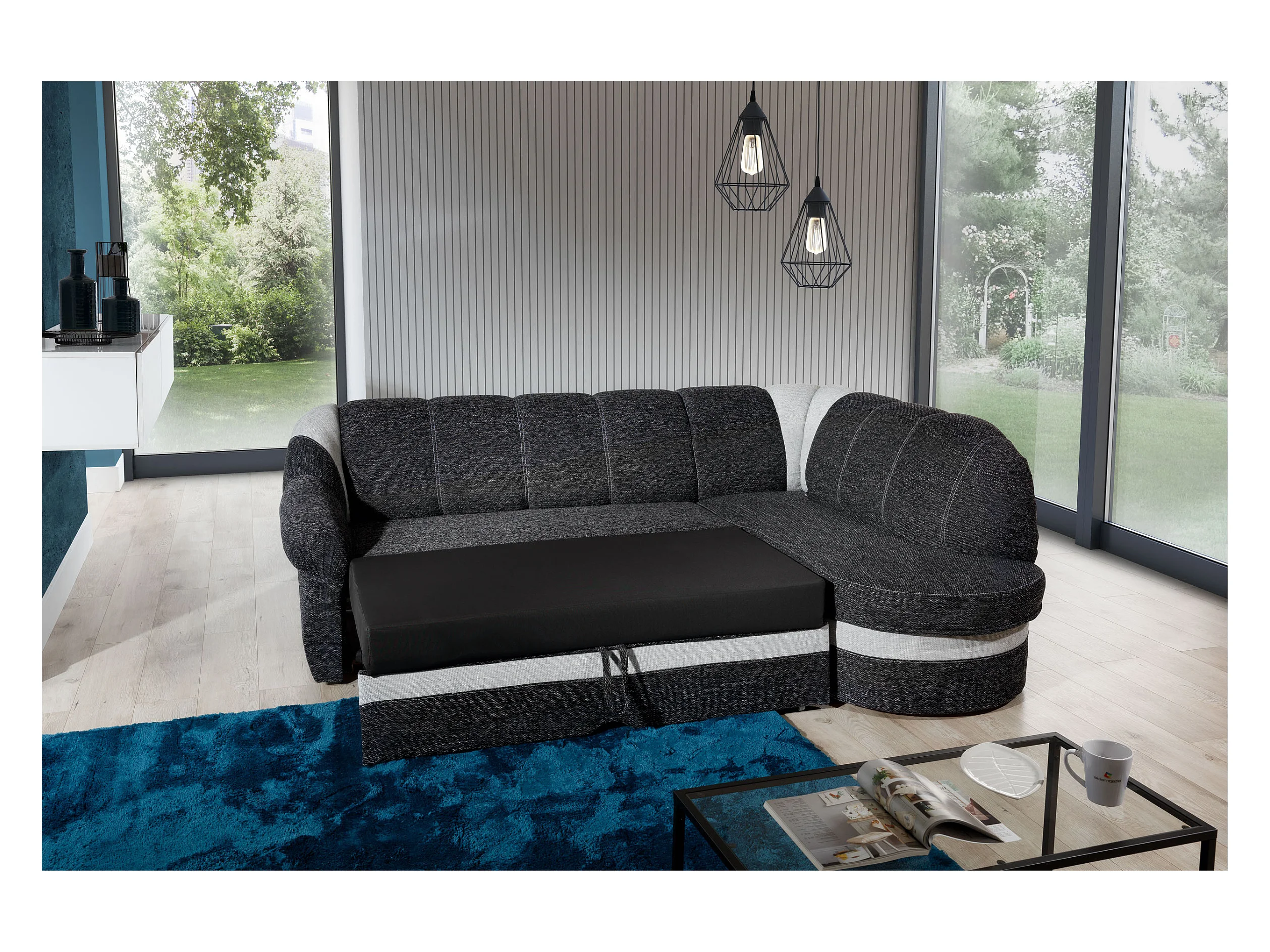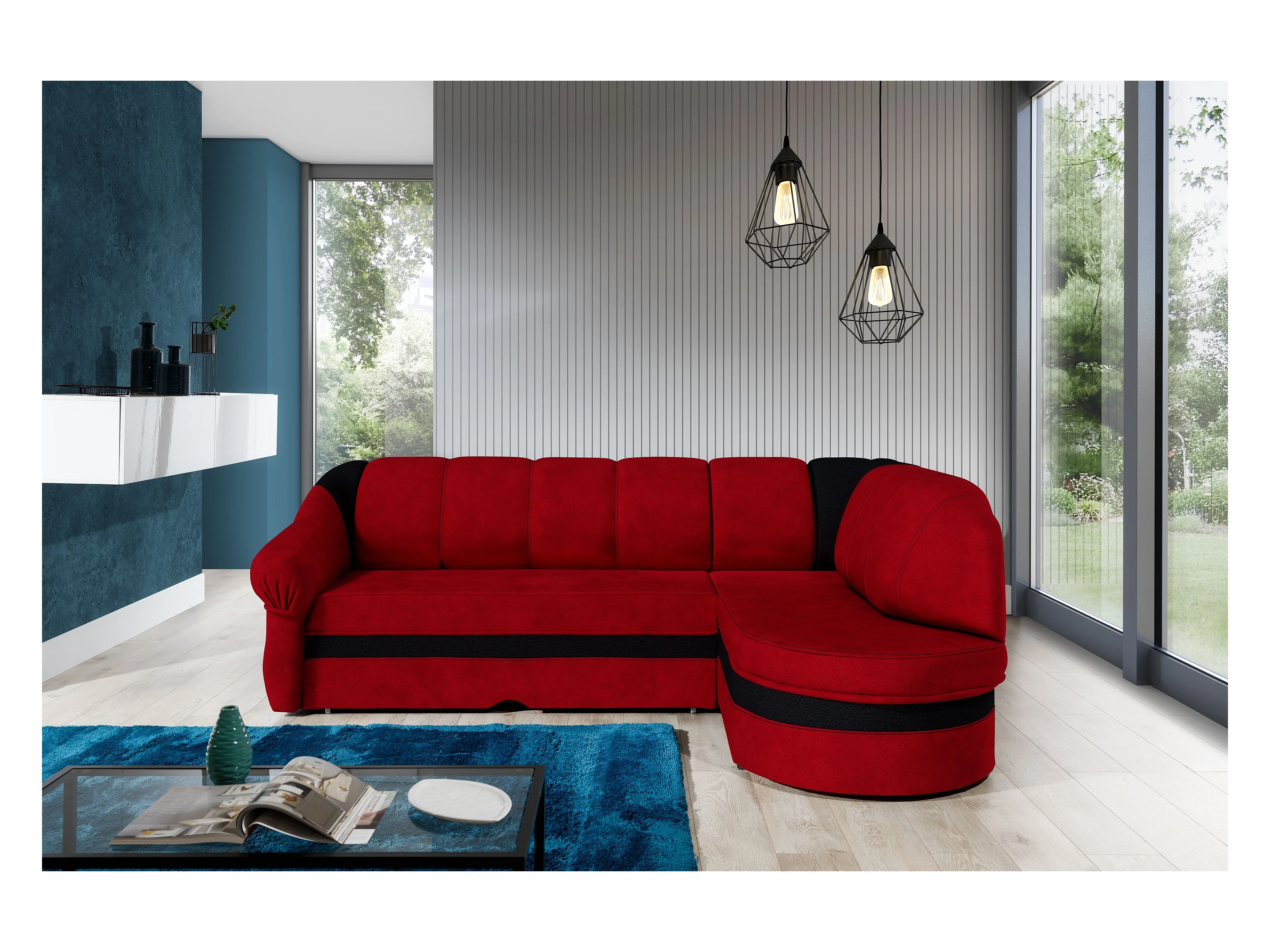 Canapé d'angle droit convertible tissu rouge et noir Sundy 250cm