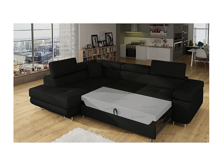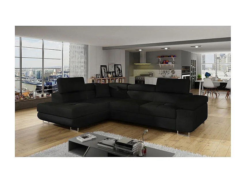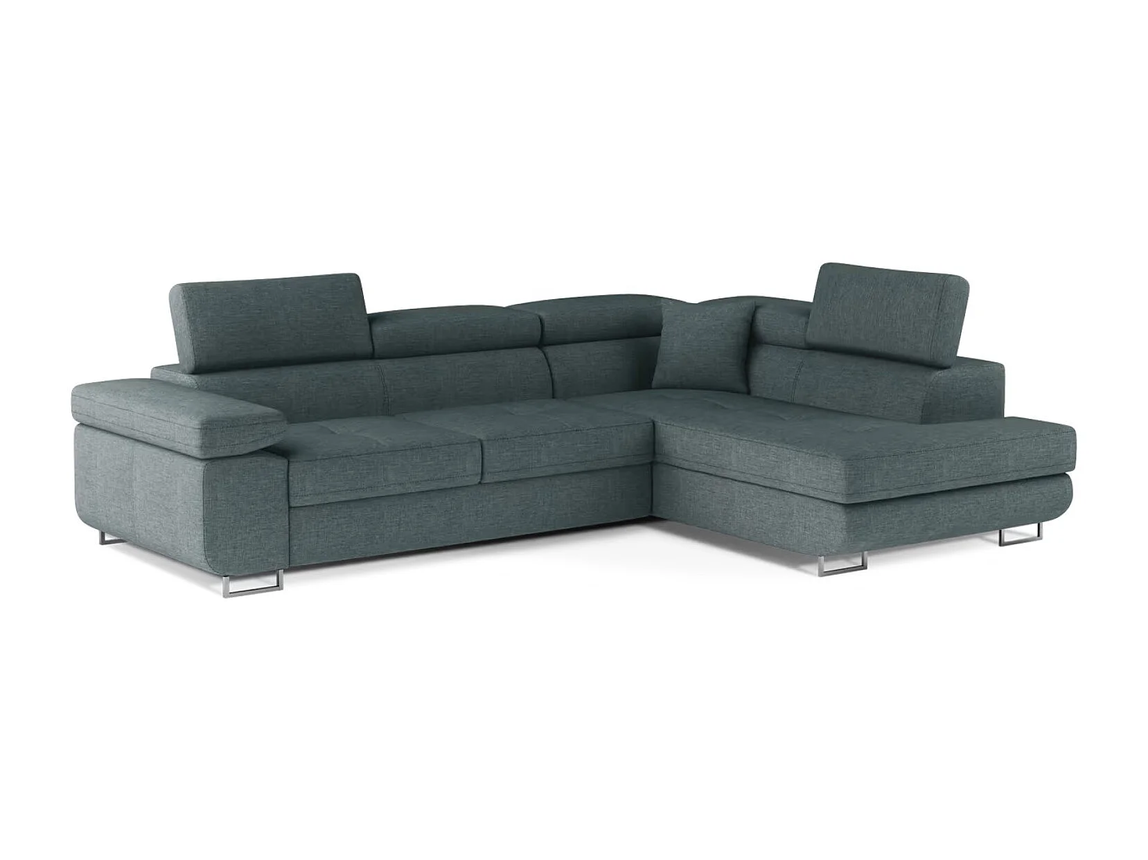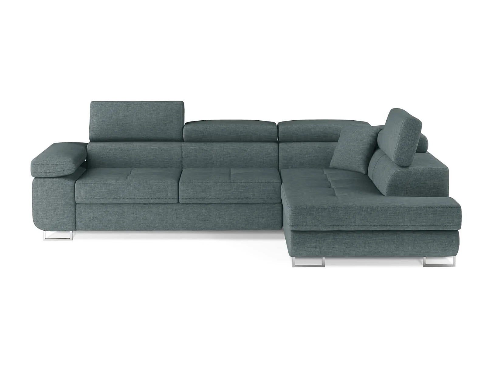 Canapé d'angle convertible tissu MARKA - Coffre et appuis-tête réglables-Vert céladon-angle droit