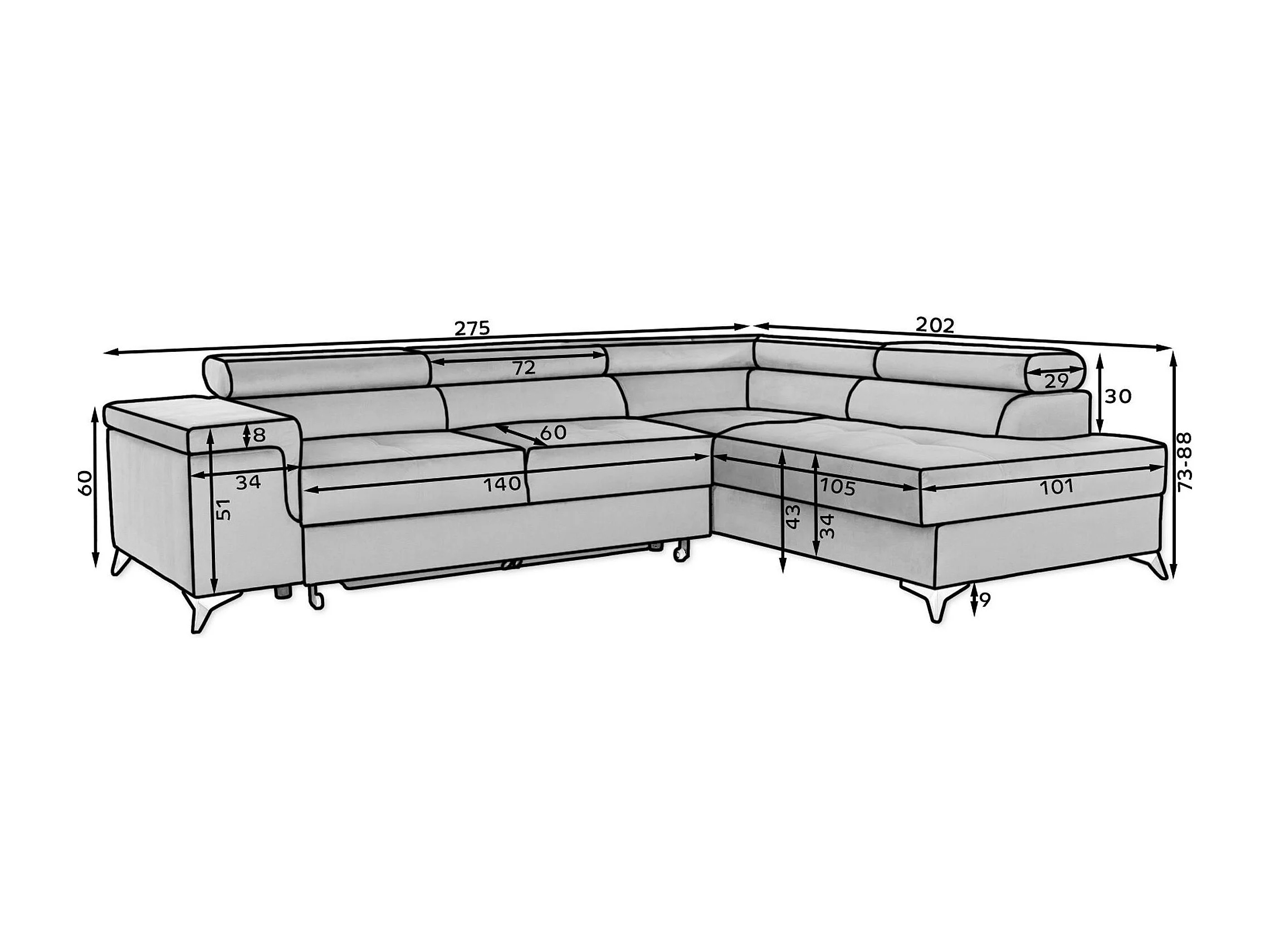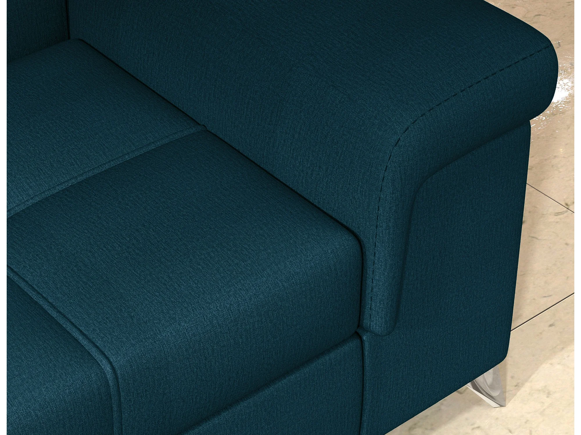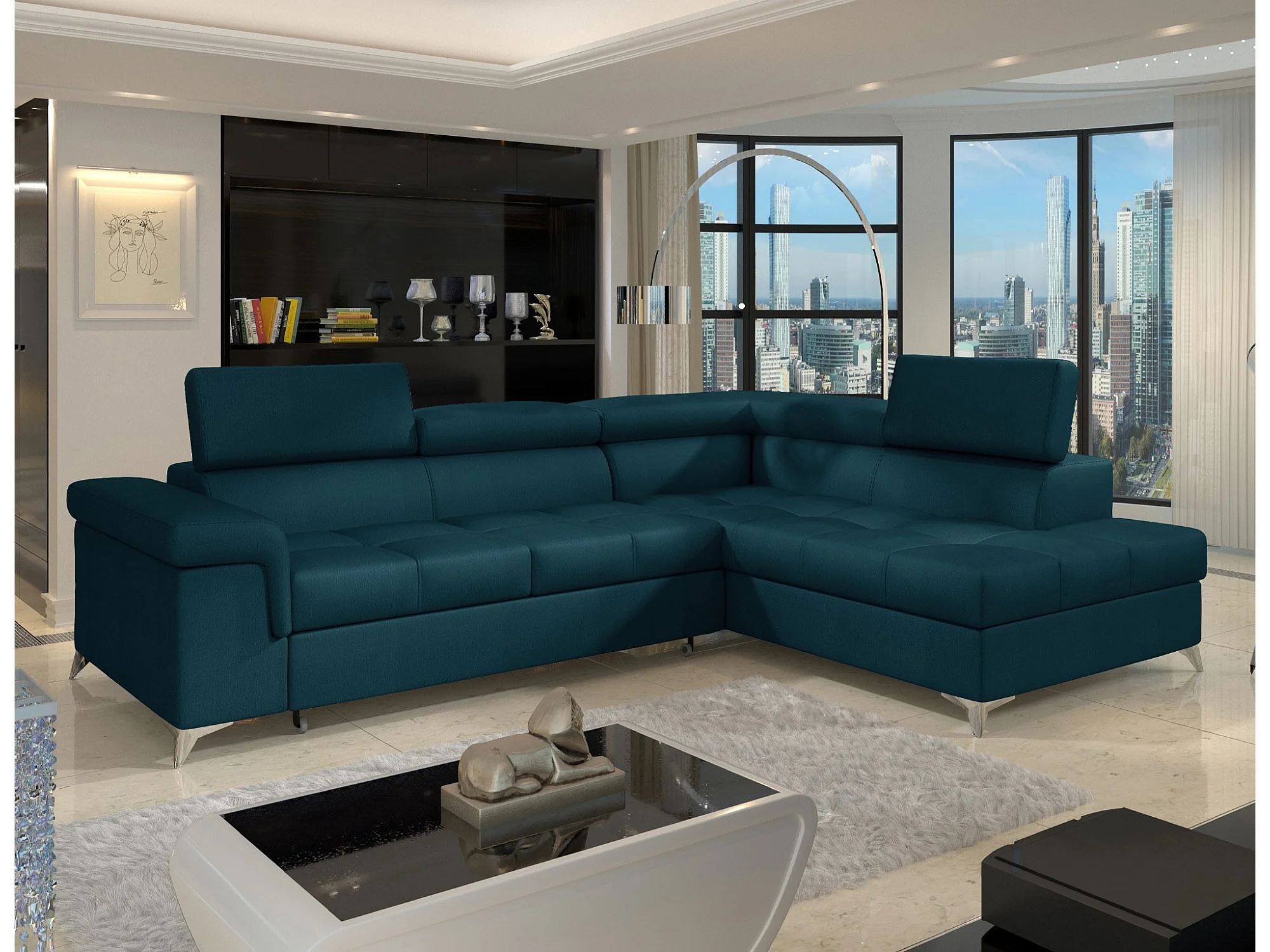 Canapé d'angle convertible velours MARIDO - Coffre et appuis-tête réglables-Bleu foncé-angle droit