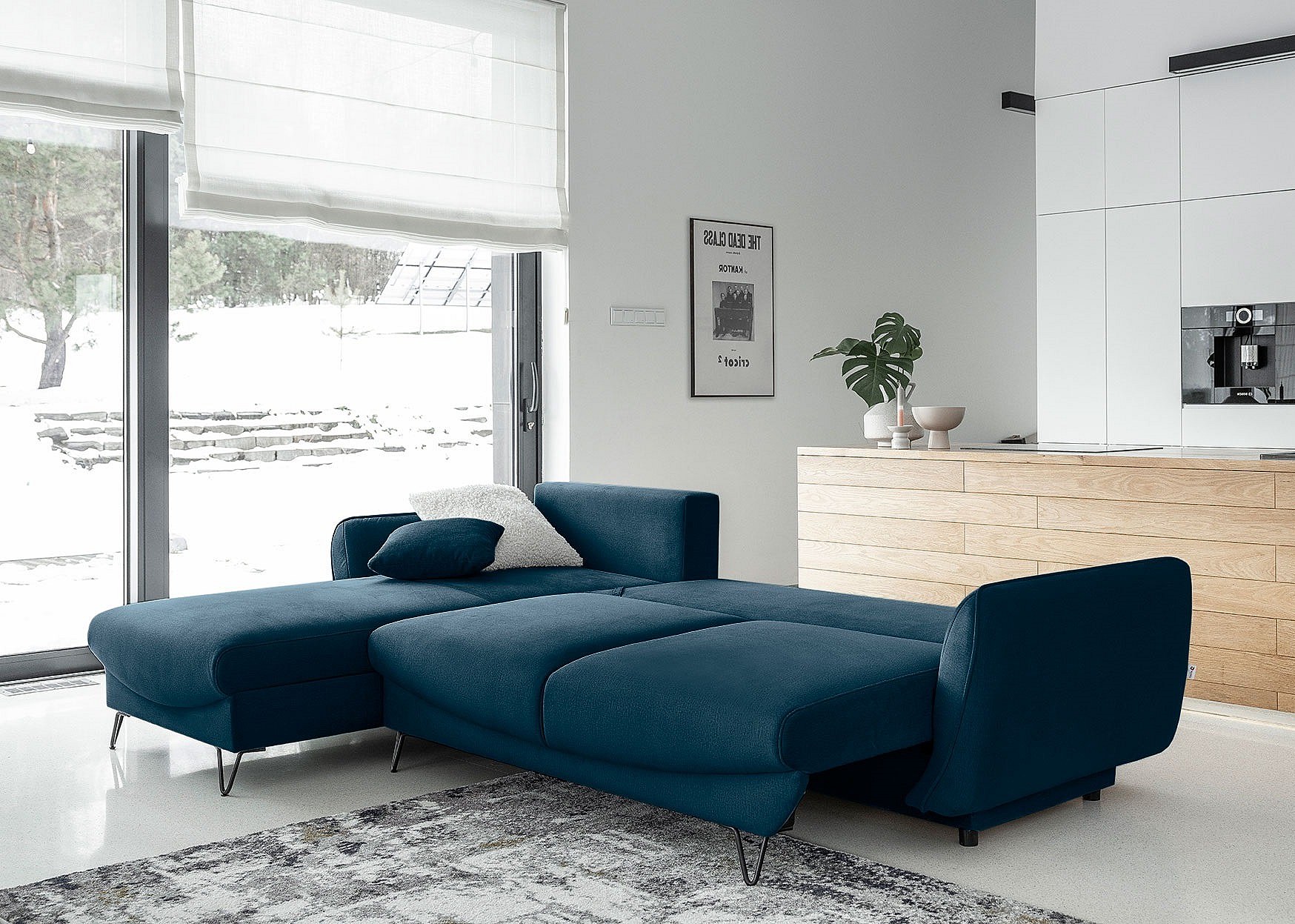 Canapé d'angle convertible tissu ZURIK - Coffre de rangement et pieds métal noir-Vert épinard-angle droit
