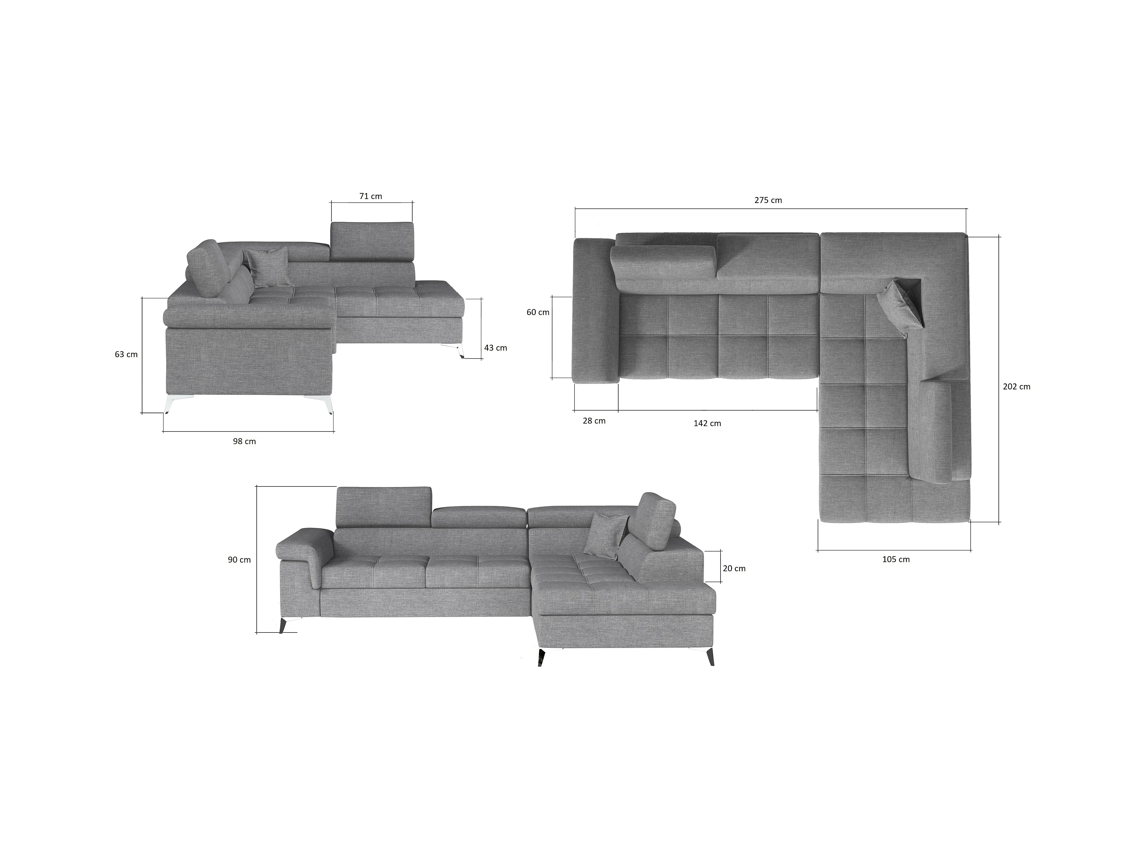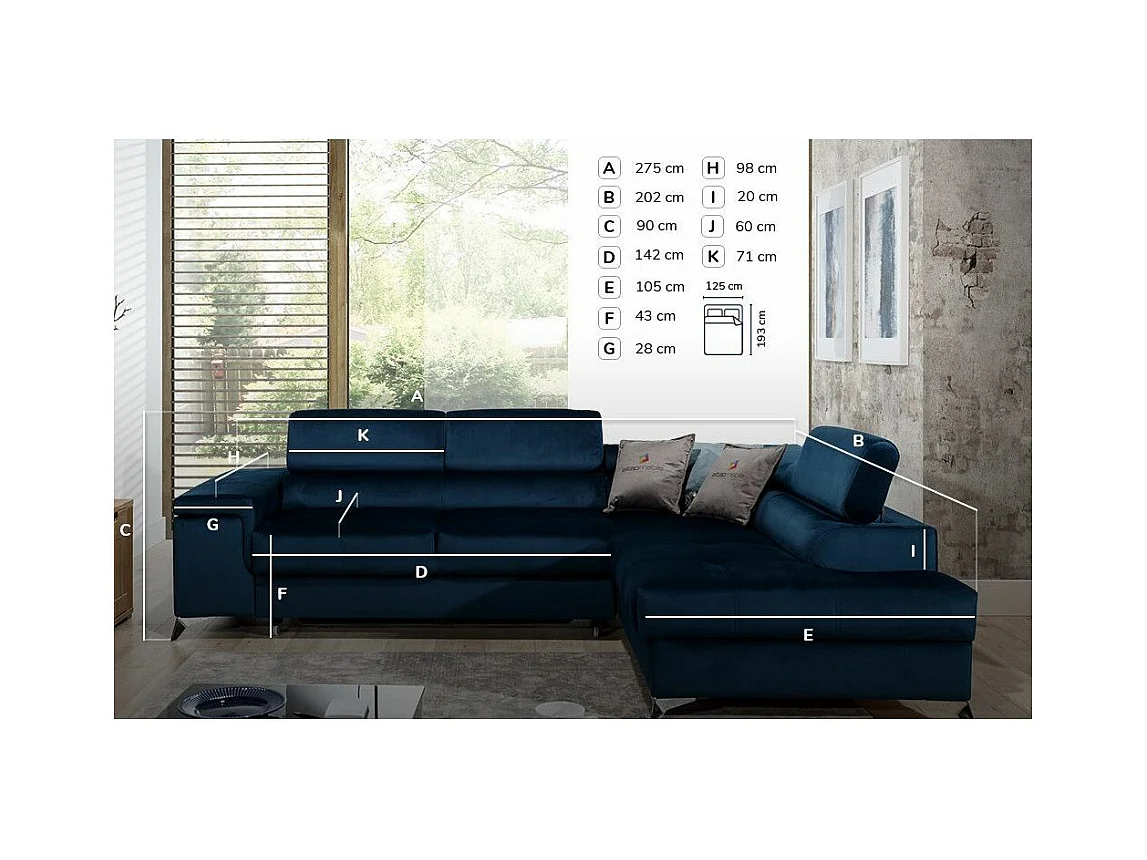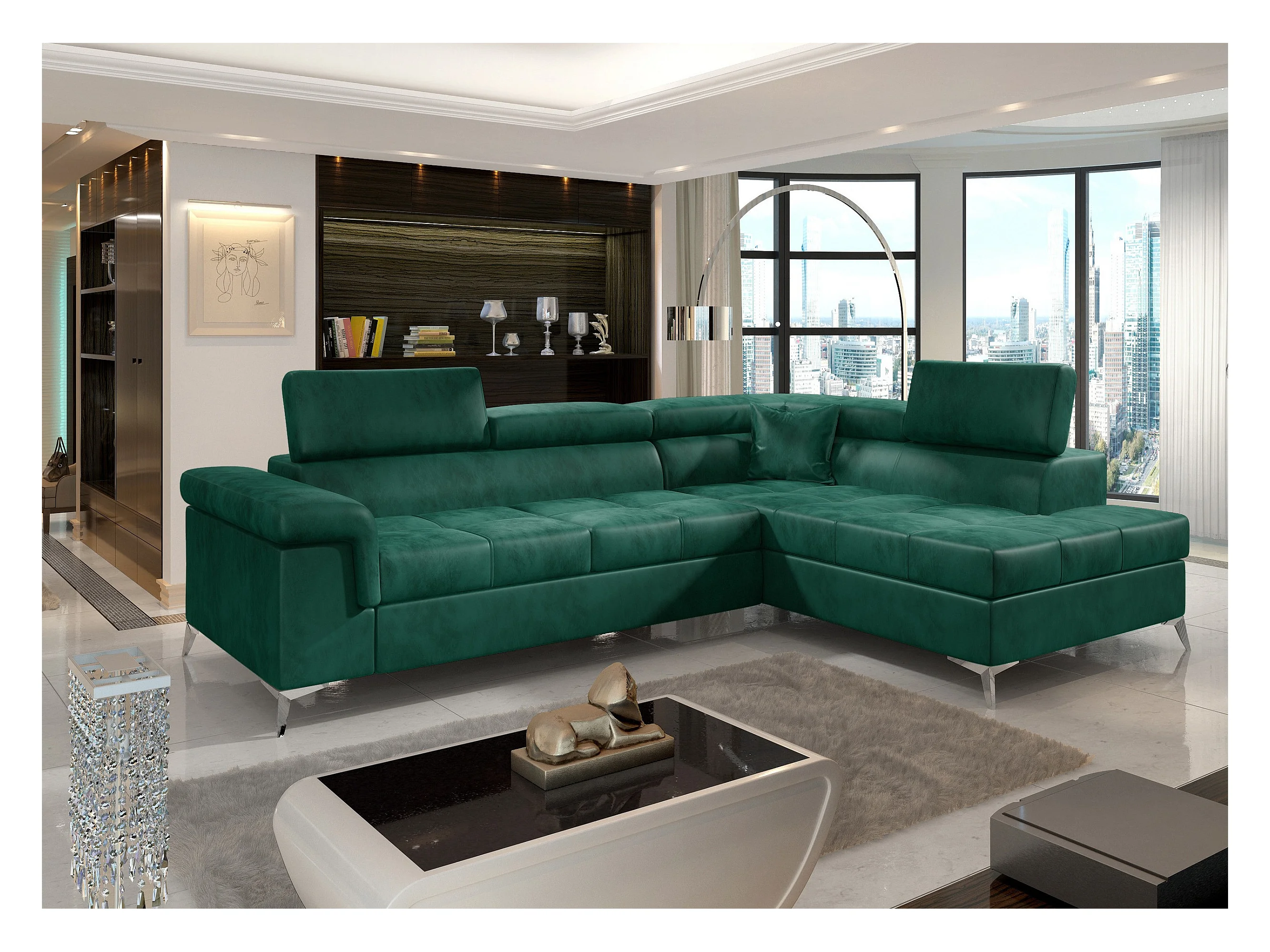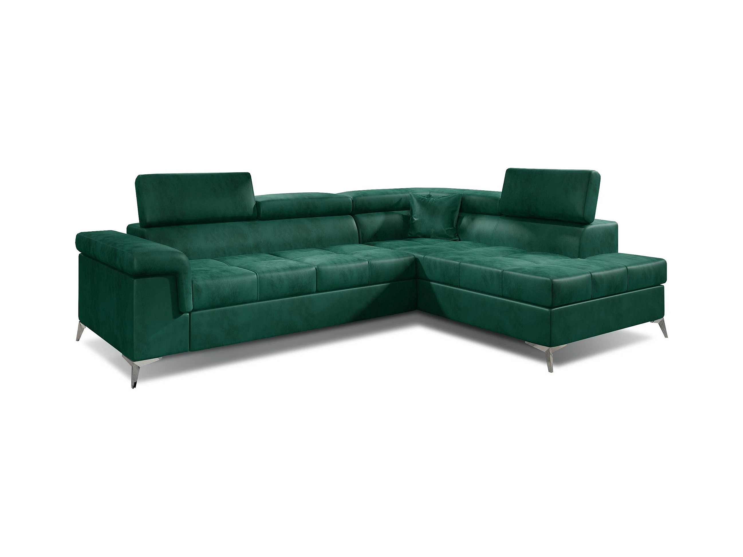 Canapé d'angle droit convertible velours vert sapin Marido 275cm