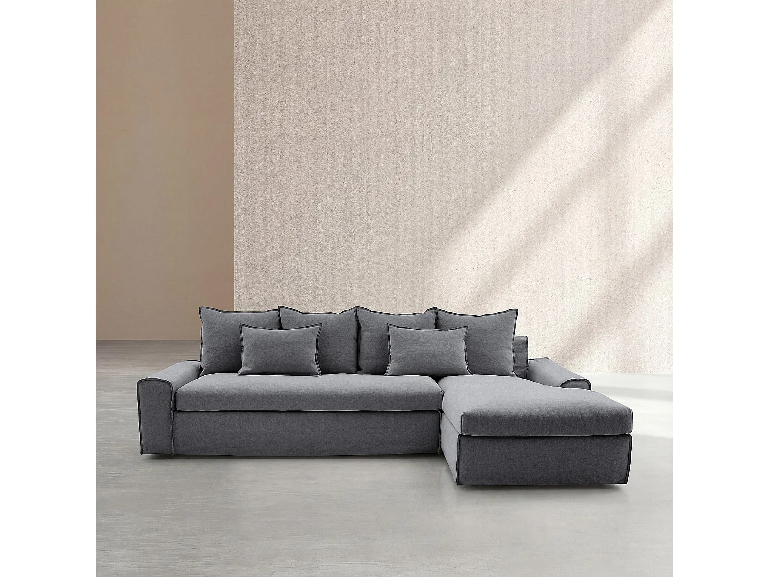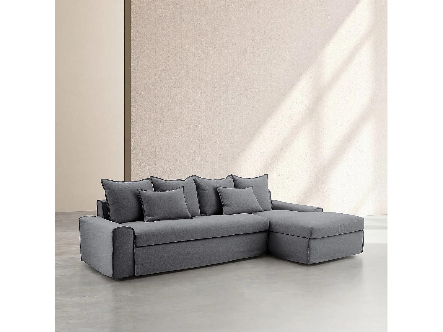Habitat - Canapé d'angle droit déhoussable en coton et lin garni de plumes - Gris ardoise - Ginosa