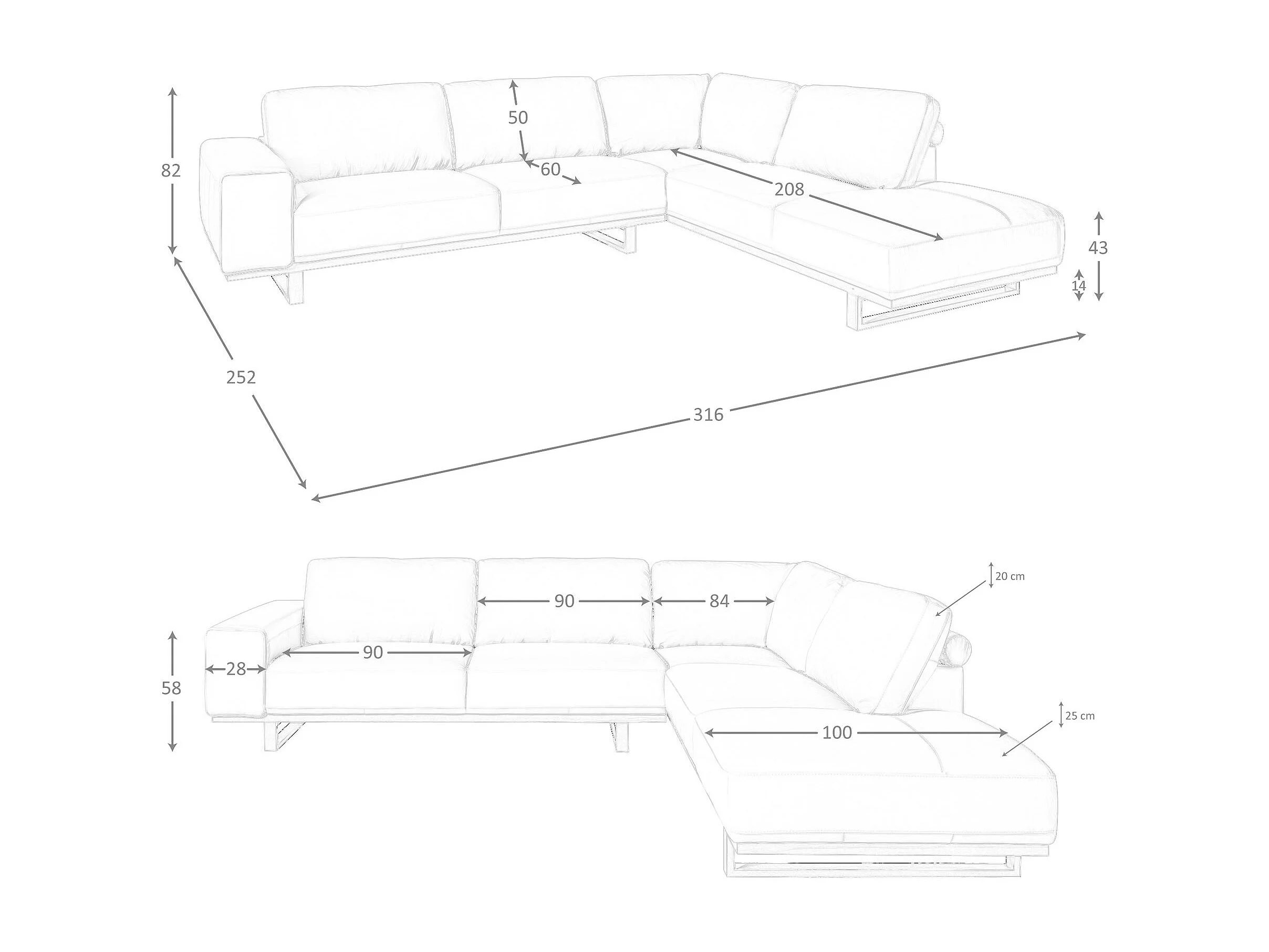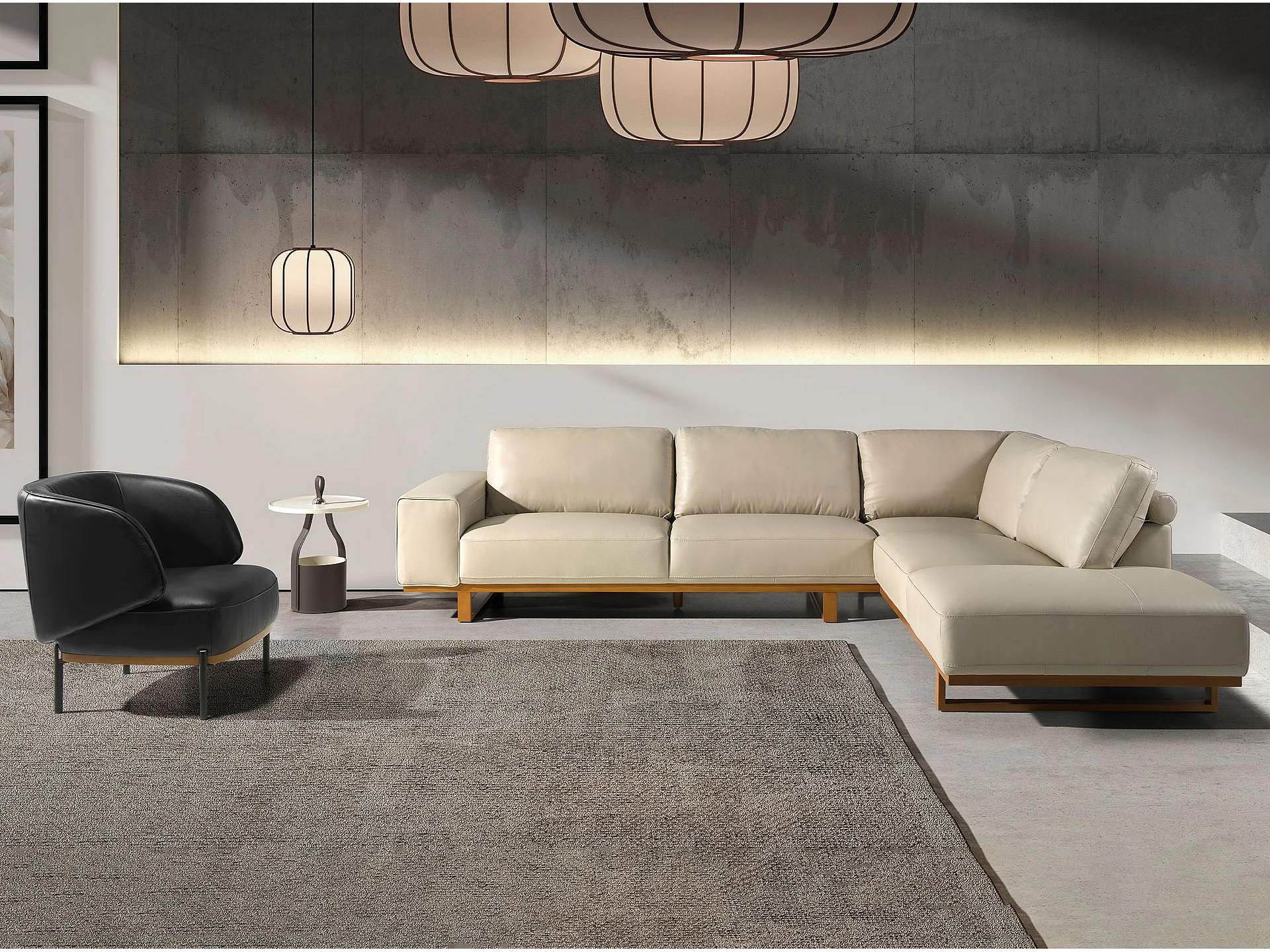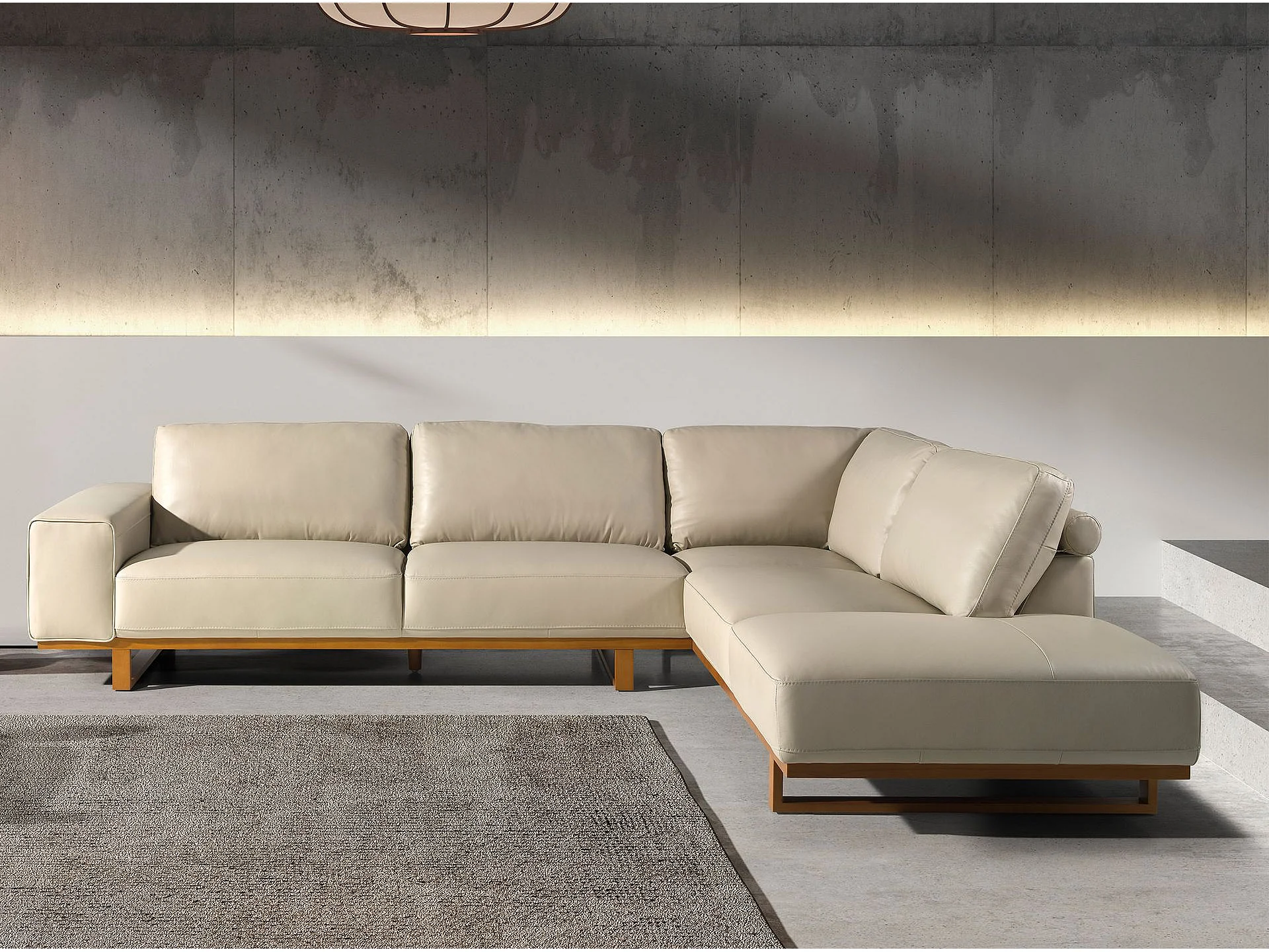 Canapé d'angle droit en cuir sable 6203 ANGEL CERDA