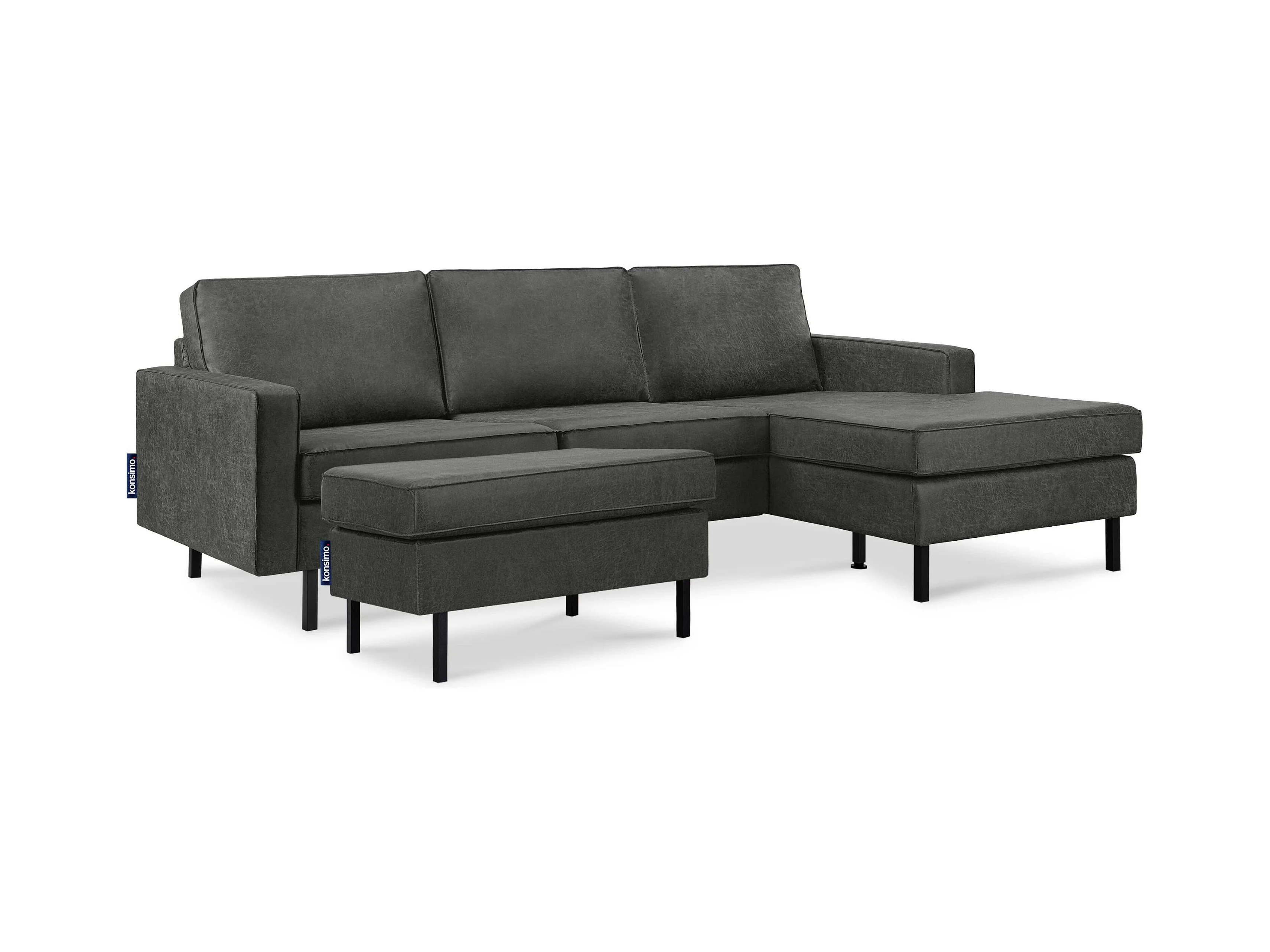 Canapé d'angle droit Loft 4 places en cuir et microfibre - gris foncé - INVIA