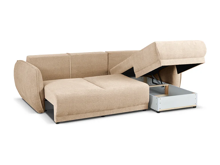 Canapé d’angle droit Loren convertible 250x150x90 cm – Tissu Raven 24 créme