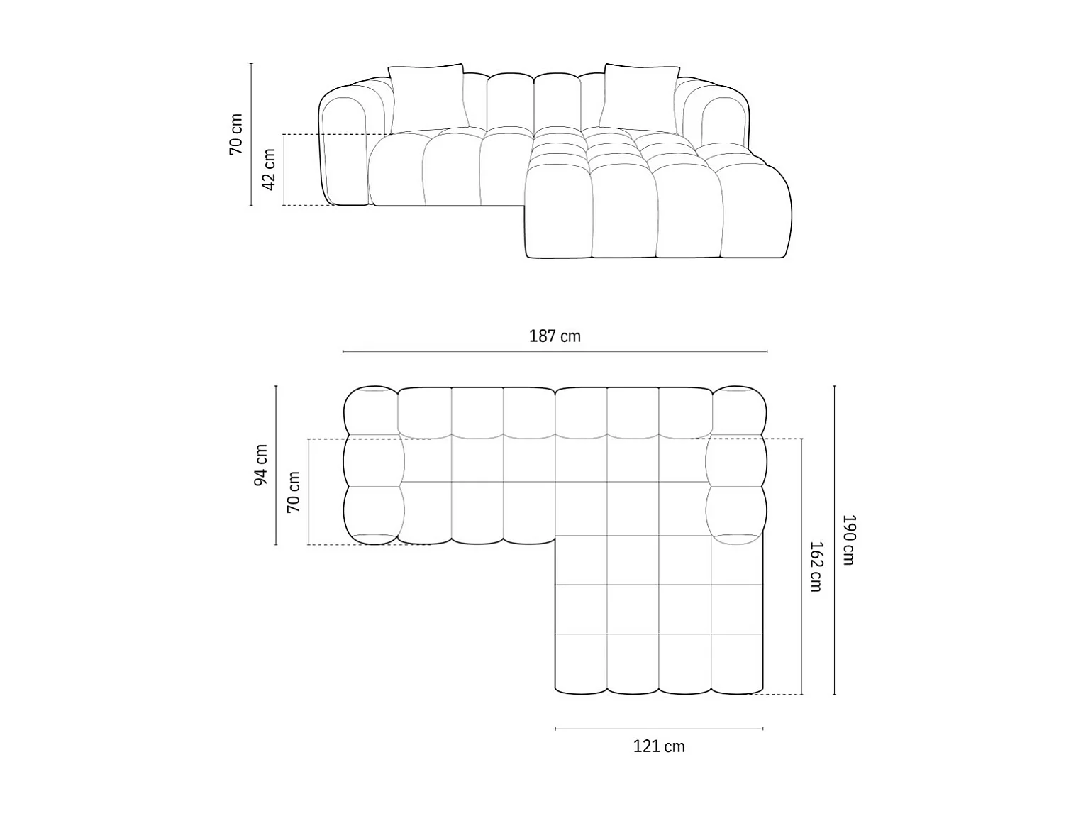 CXL by Christian Lacroix - Canapé d'angle droit modulable "Clotilde" 3 places en velours saumon - 187x190x70cm