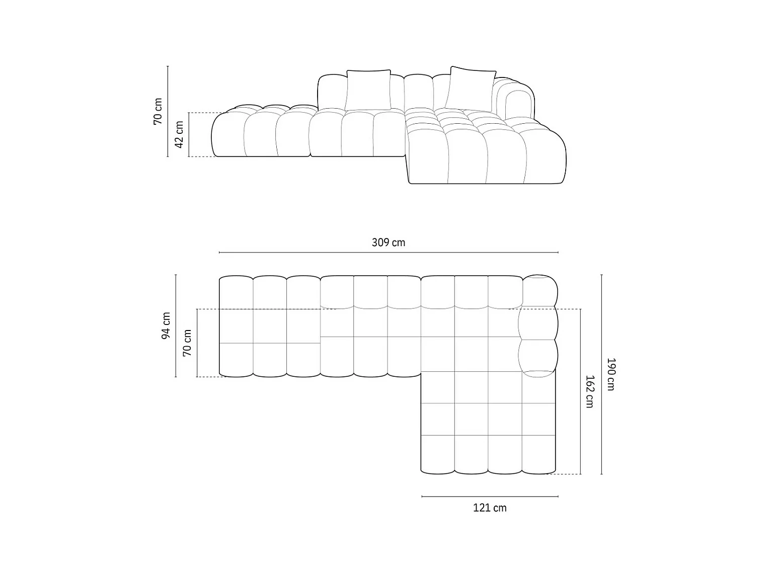 CXL by Christian Lacroix - Canapé d'angle droit modulable "Clotilde" 4 places en velours vert bouteille - 309x190x70cm