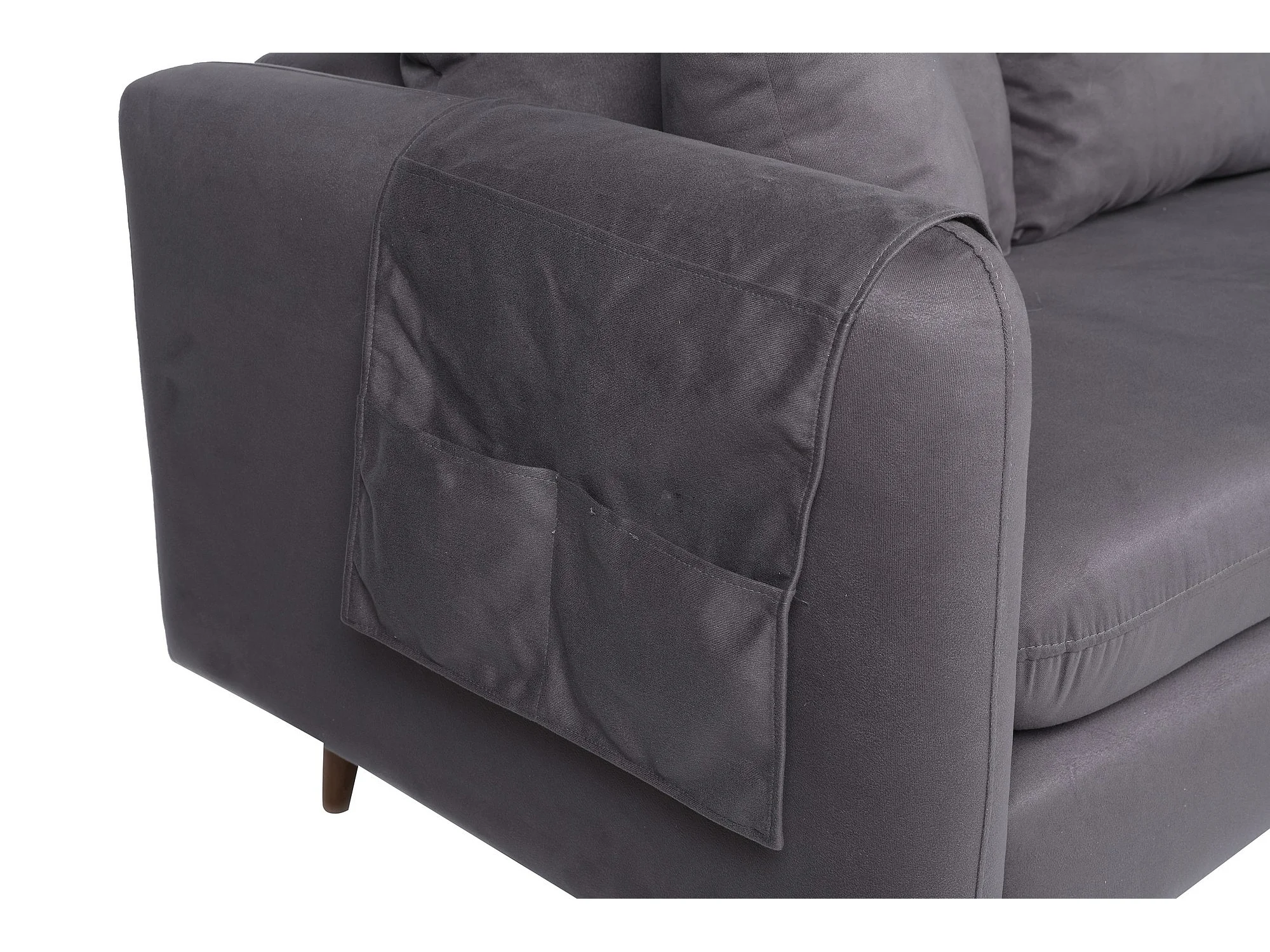 Canapé d'angle droit tissu anthracite avec pieds en bois naturel Rival 215cm