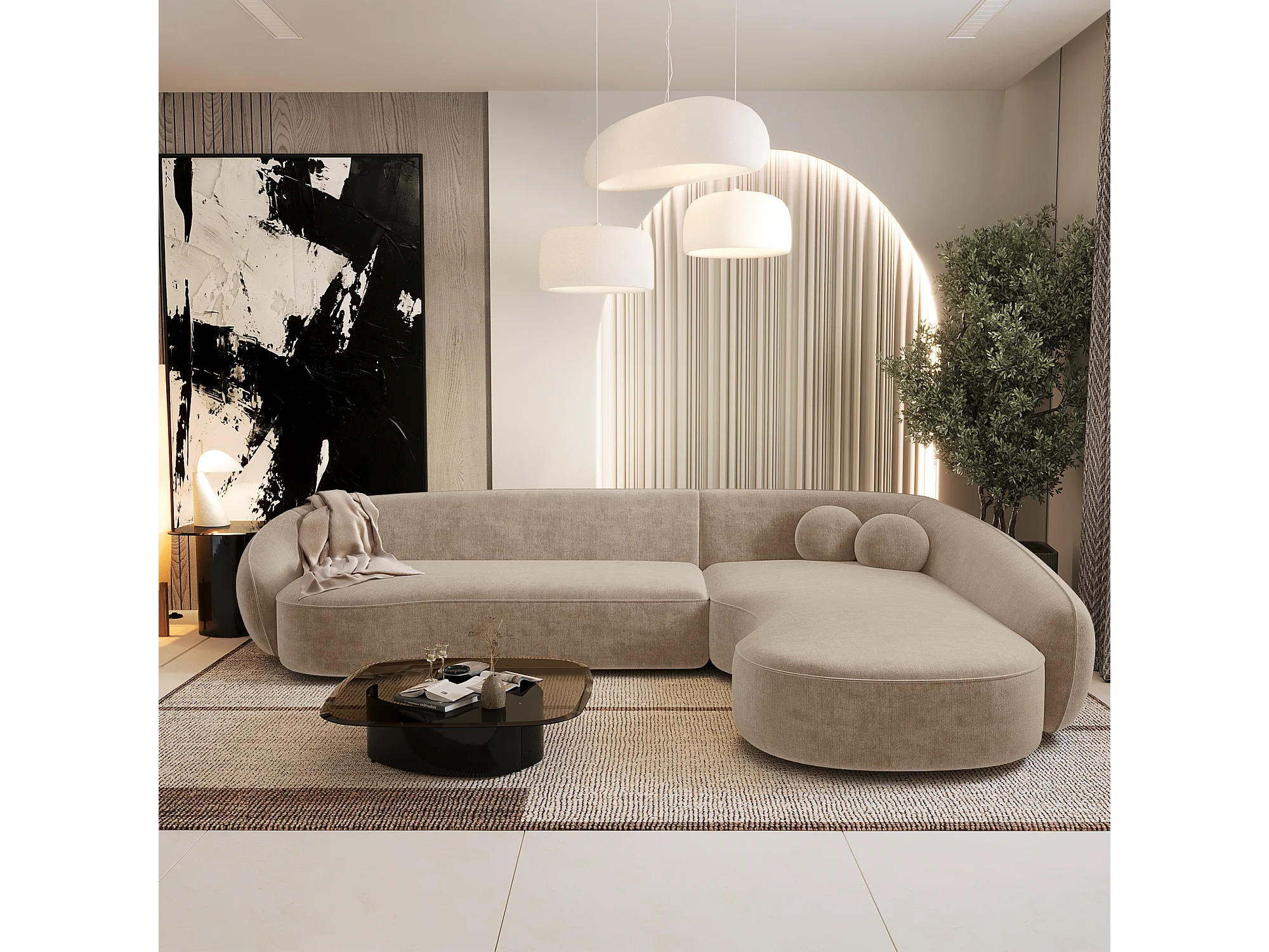 Canapé d'angle droit 4 places tissu tramé toucher doux taupe COOPER