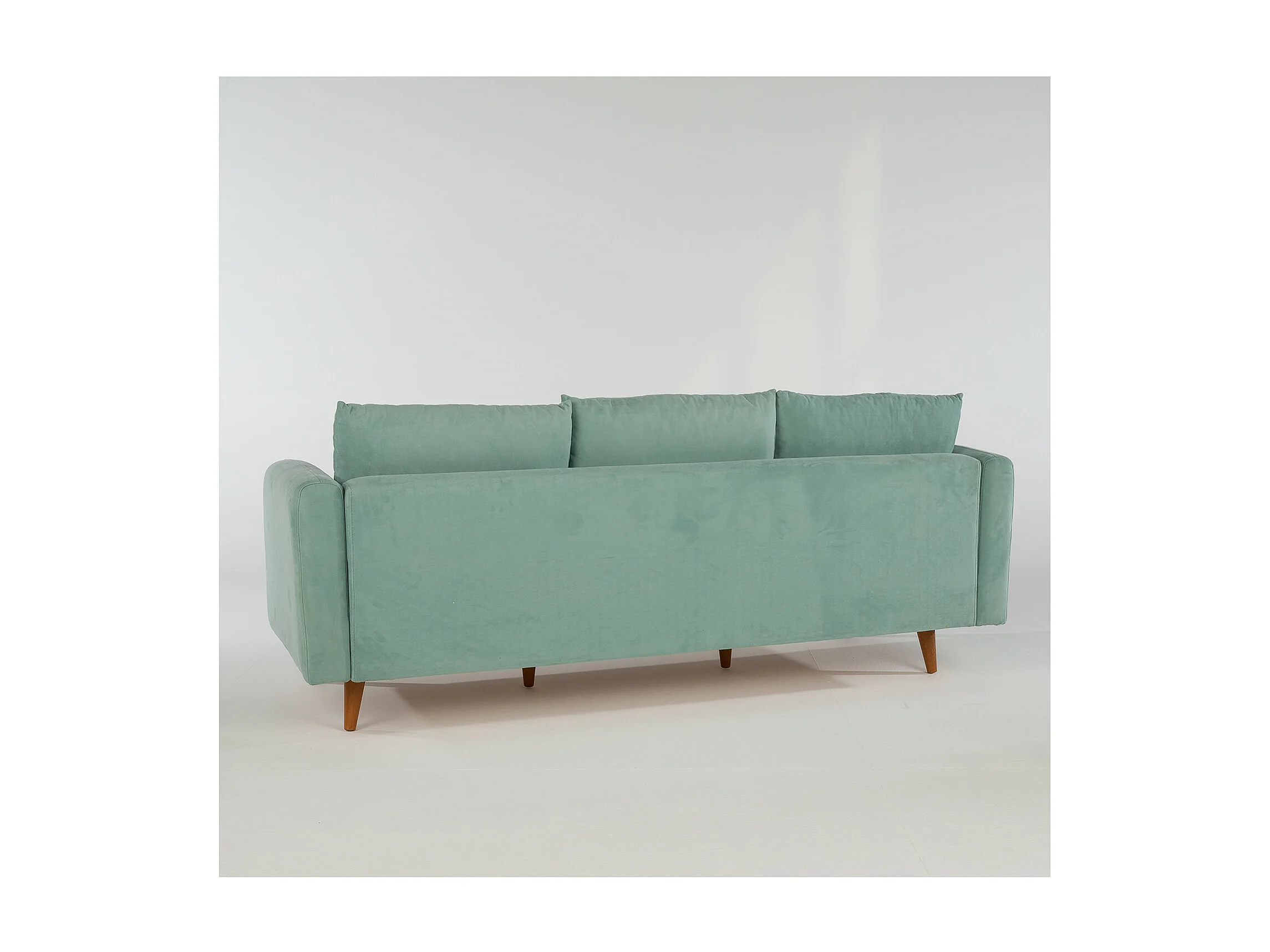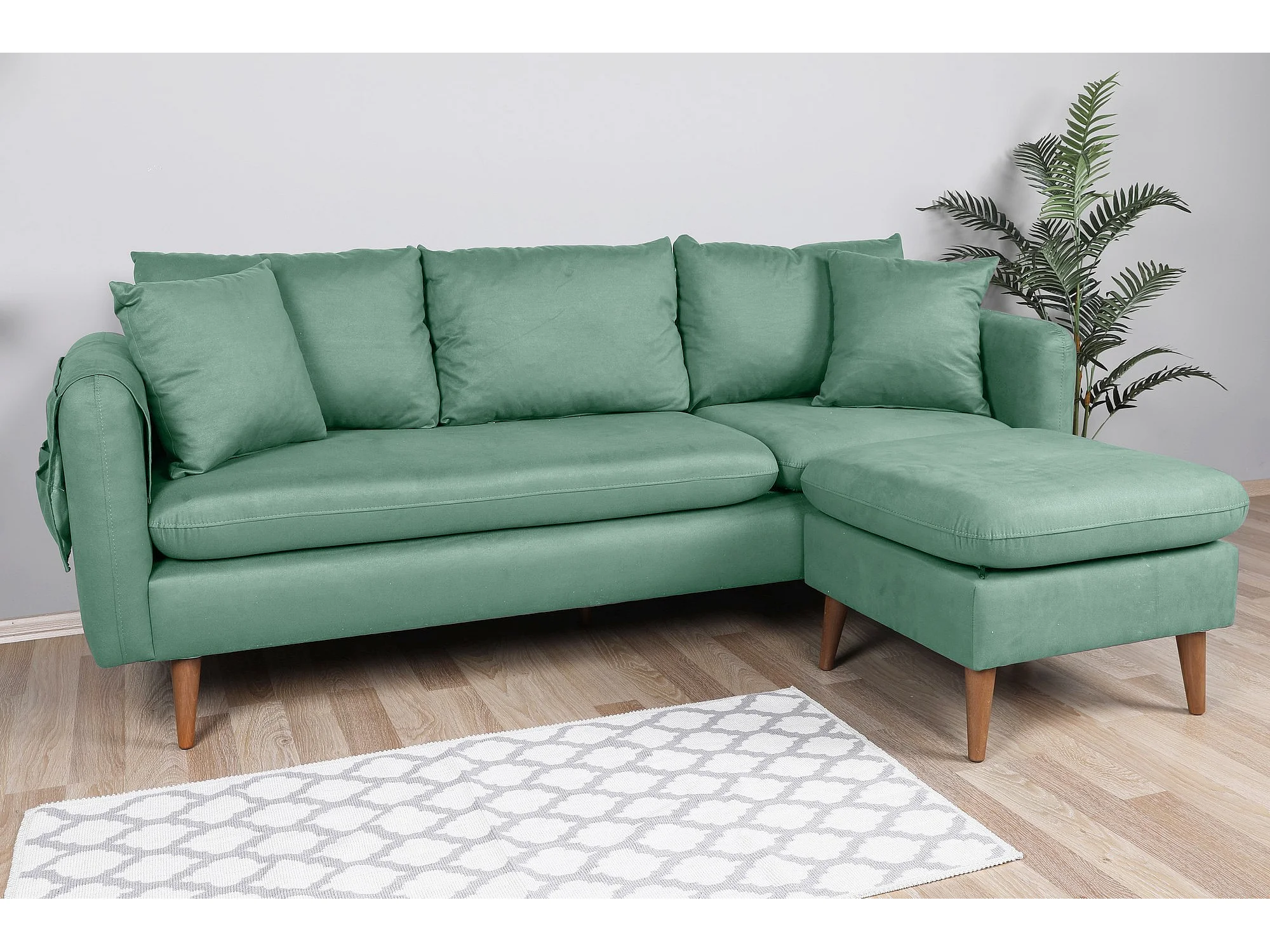 Canapé d'angle droit tissu vert d'eau avec pieds en bois naturel Rival 215cm