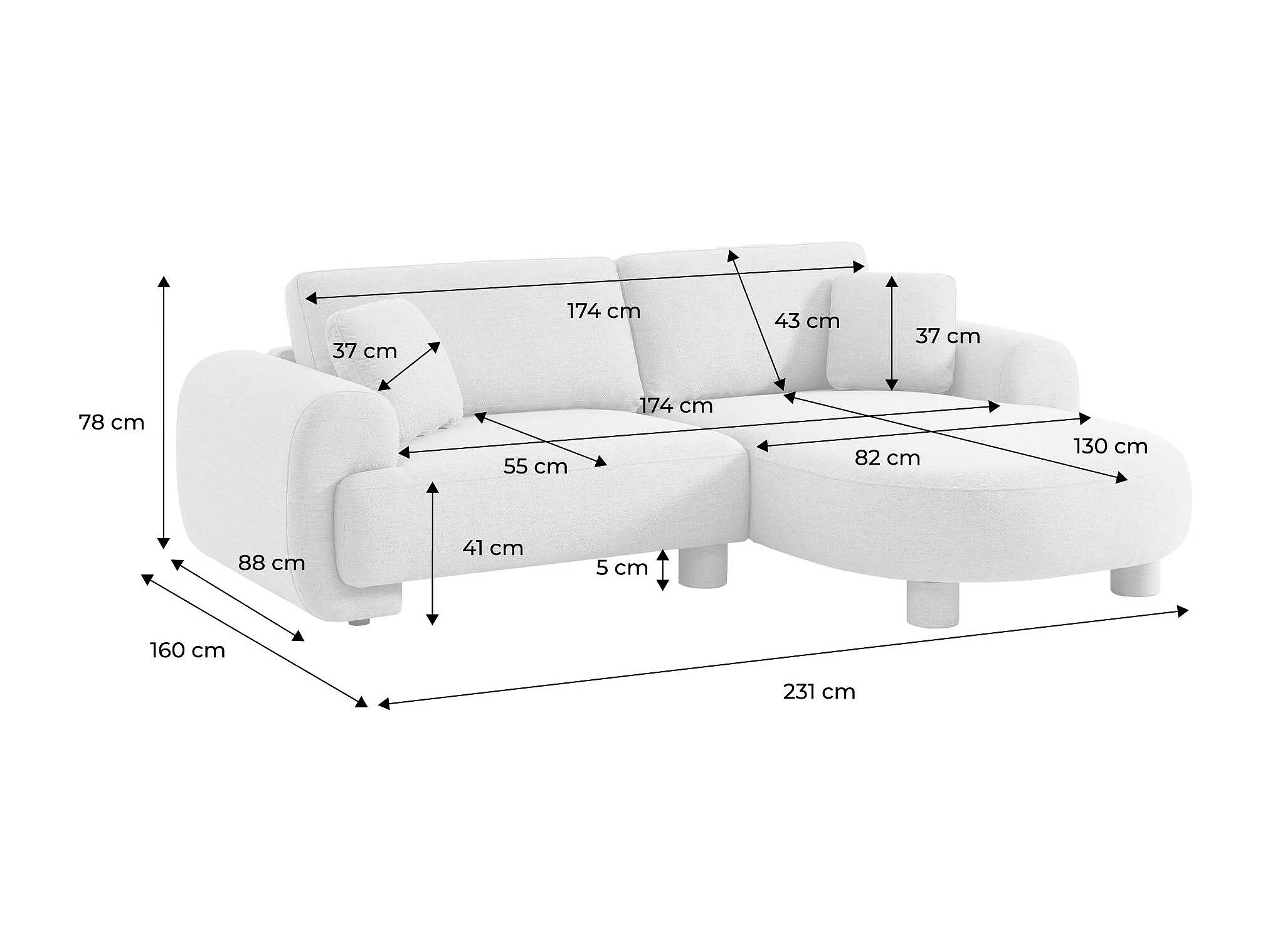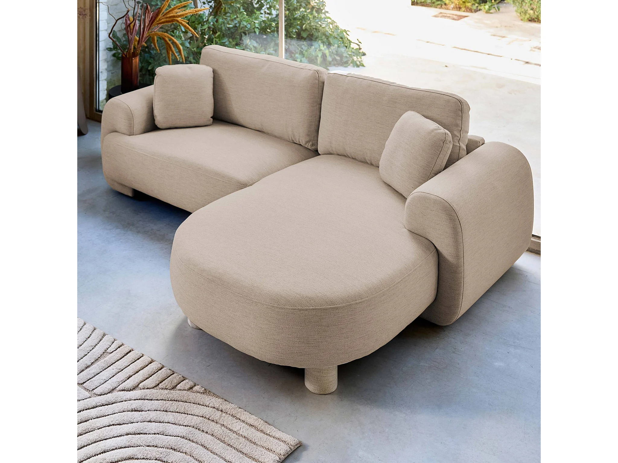 Canapé d'angle droite 3 places tissu beige. pieds ronds L 231 x P 160 / 88 cm - Zenio