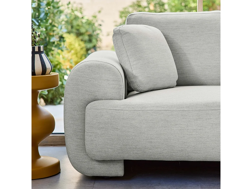 Canapé d'angle droite 3 places tissu gris clair. pieds ronds L 231 x P 160 / 88 cm - Zenio