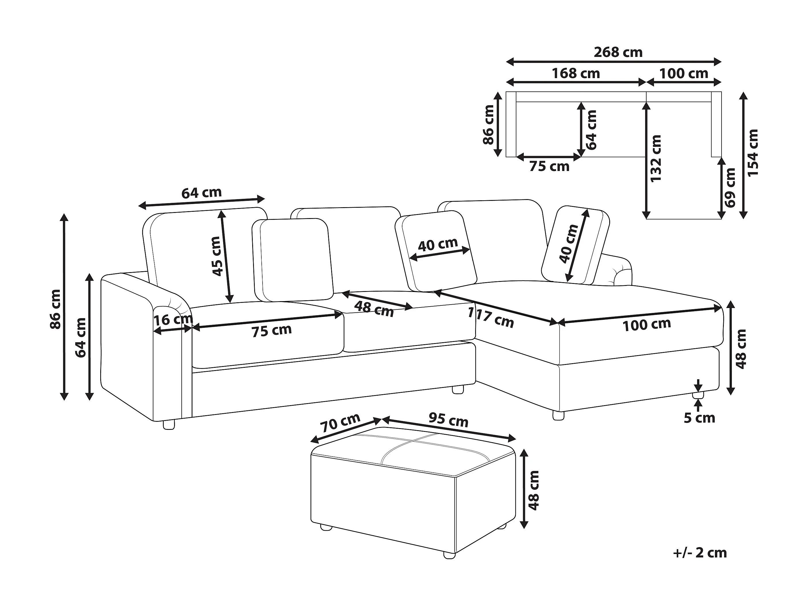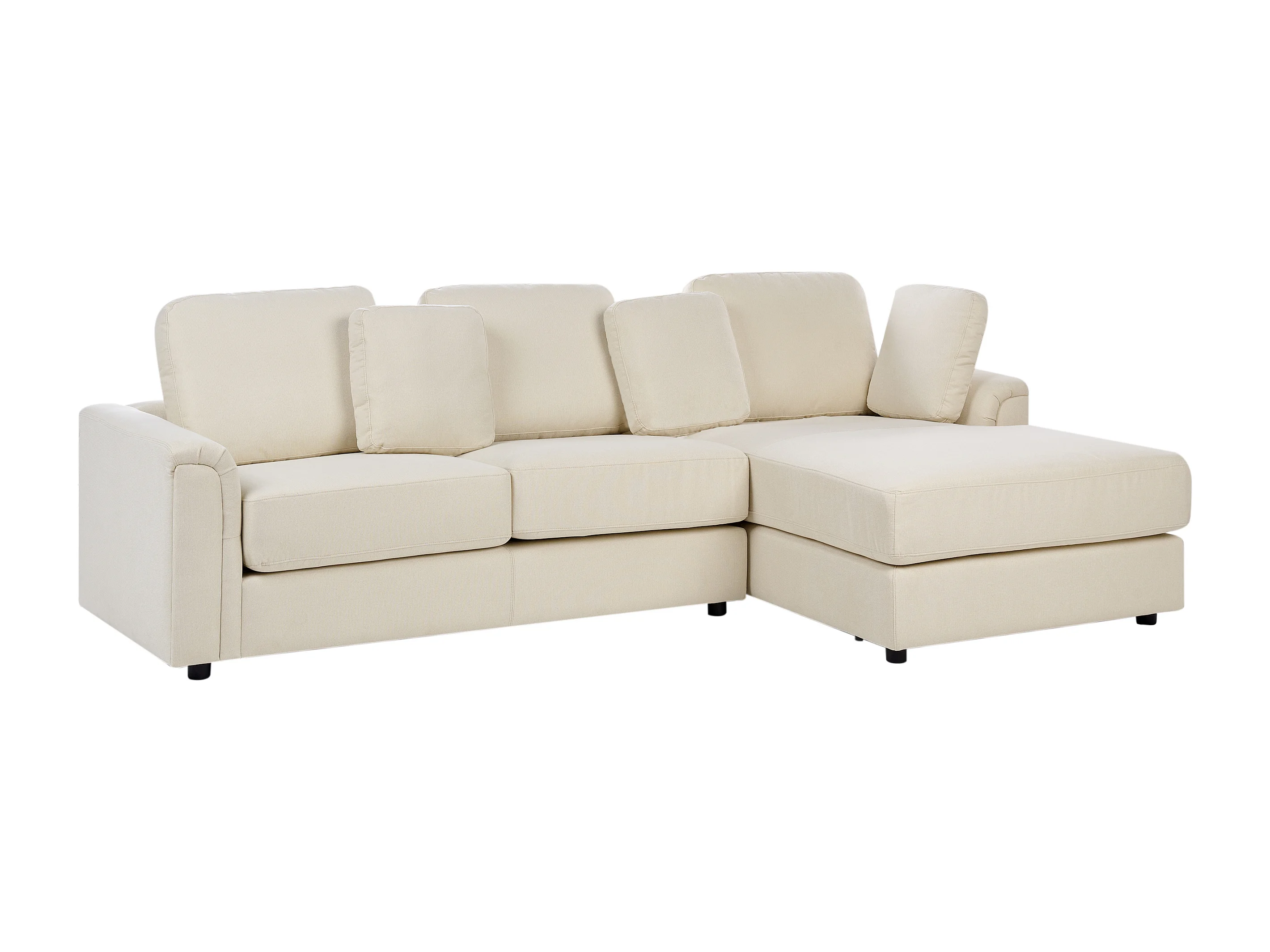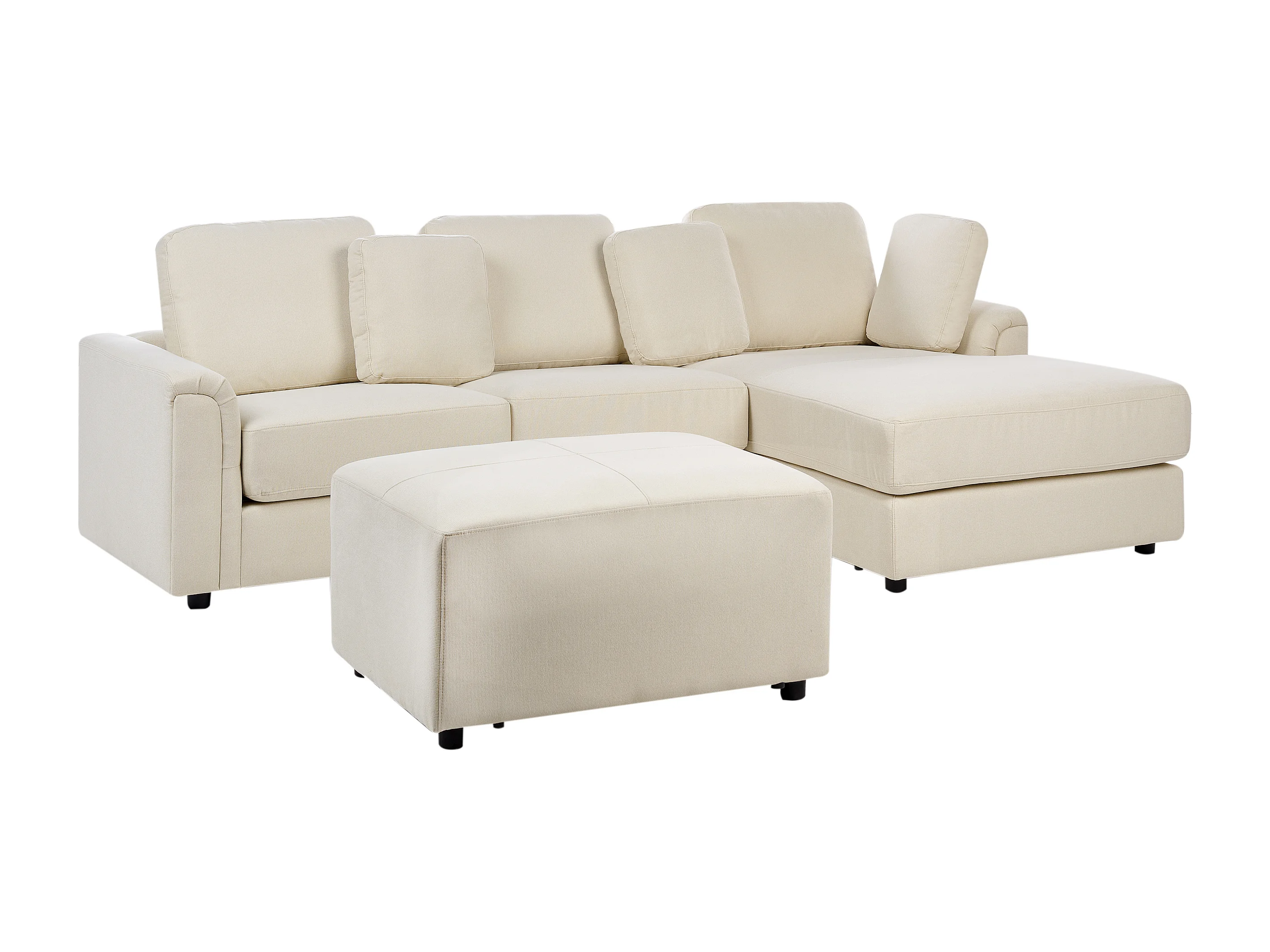 Canapé d\'angle 4 places KOHLO Tissu Beige clair avec ottoman Côté droite