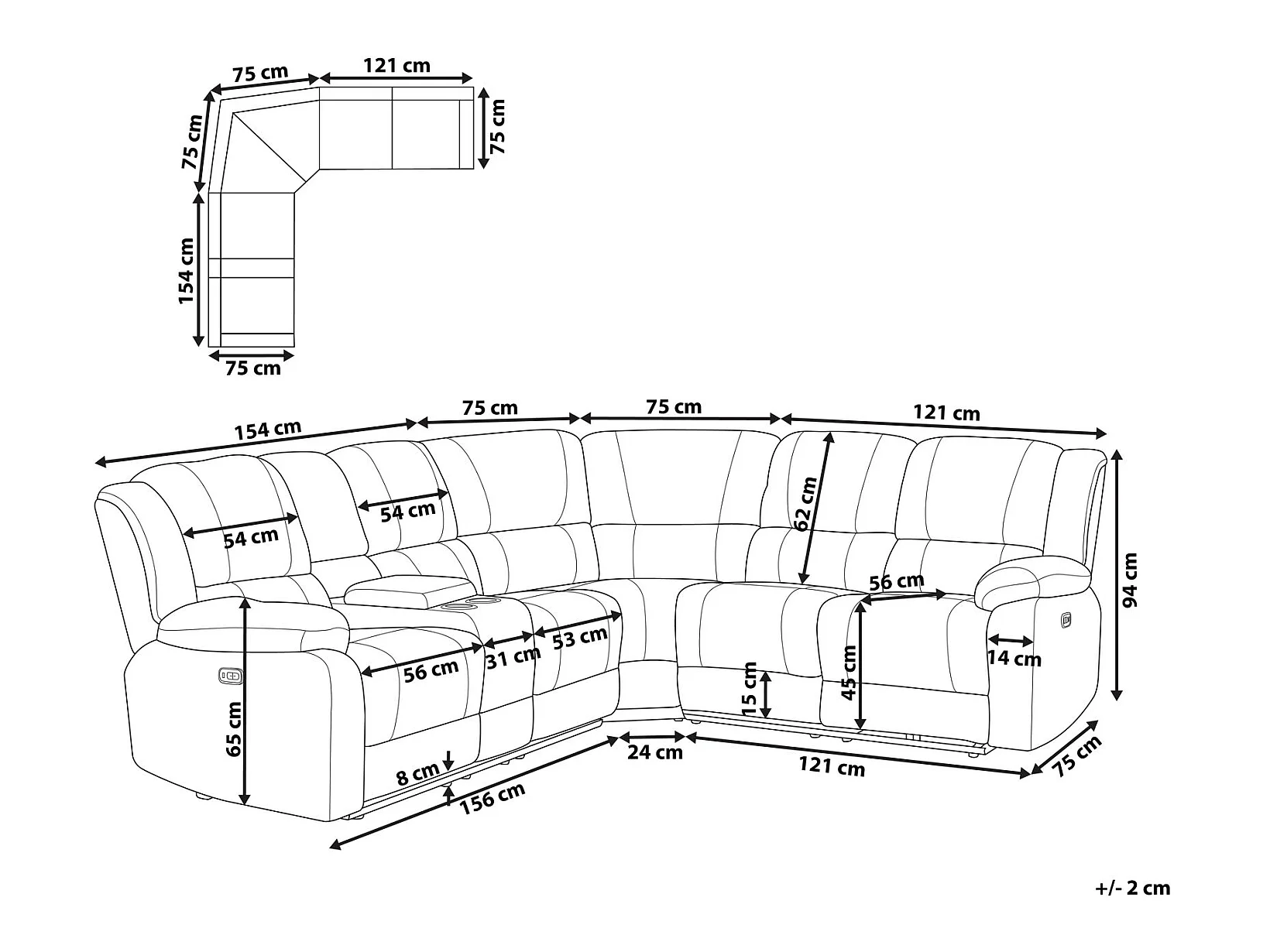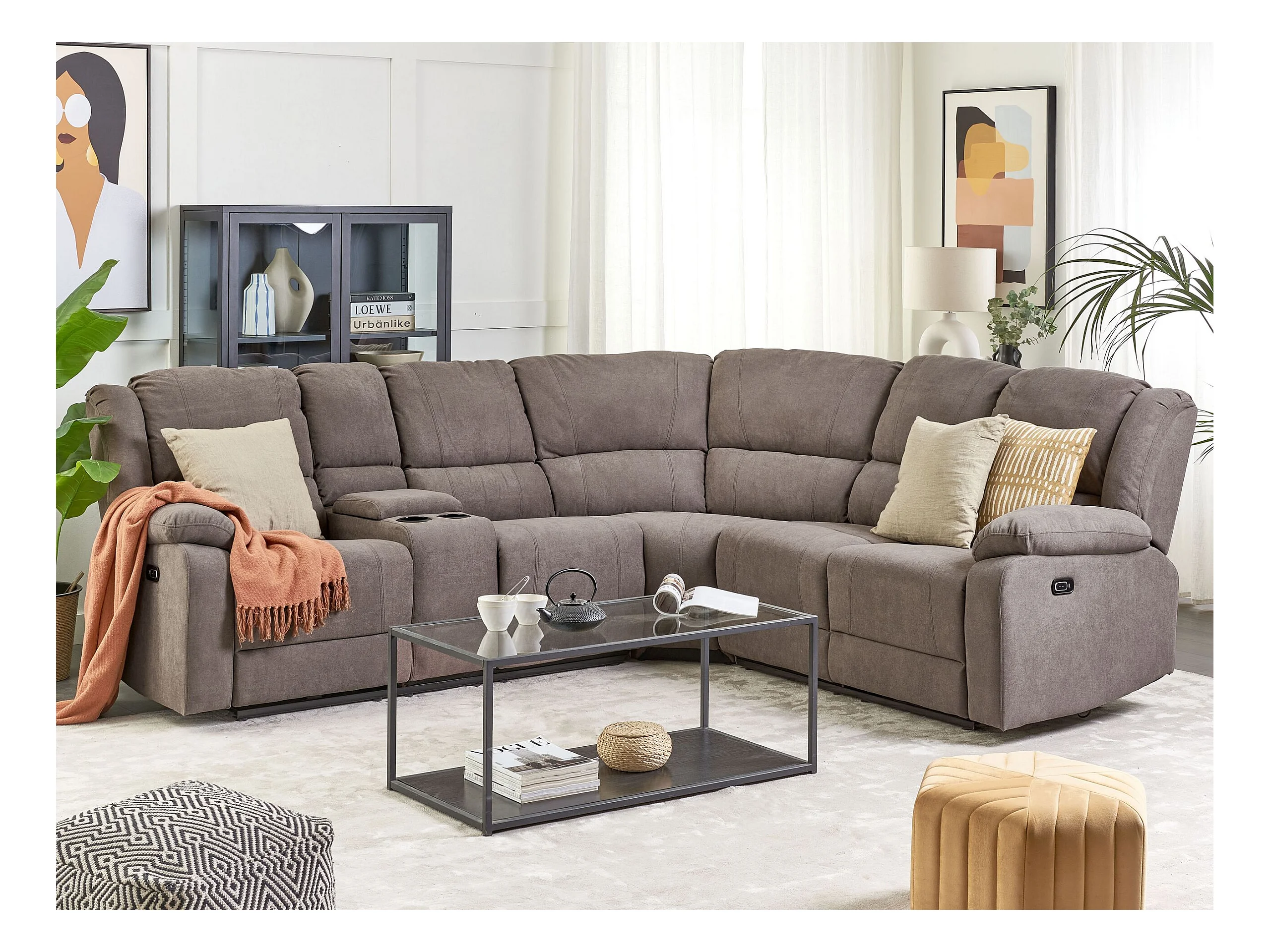 Canapé d'Angle Électrique à 5 Places avec Port USB en Tissu Beige Taupe Rokke