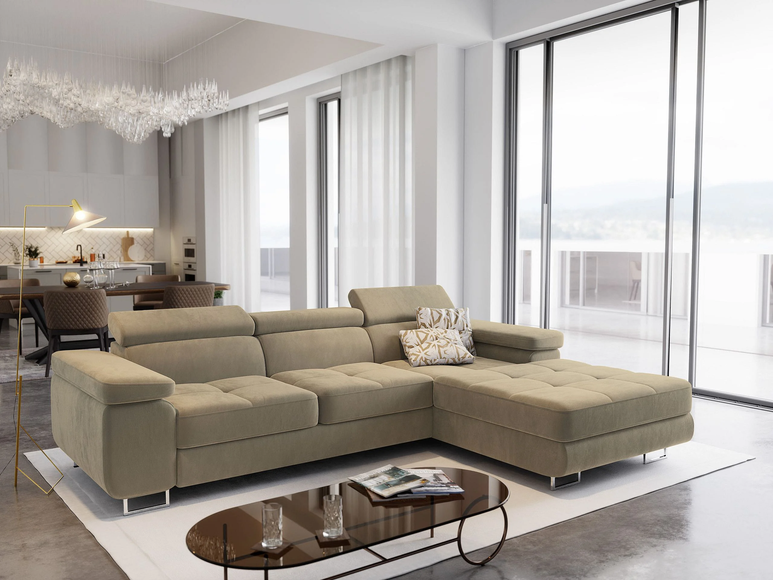 Canapé d'angle ELMA Crème en velours avec fonction de couchage