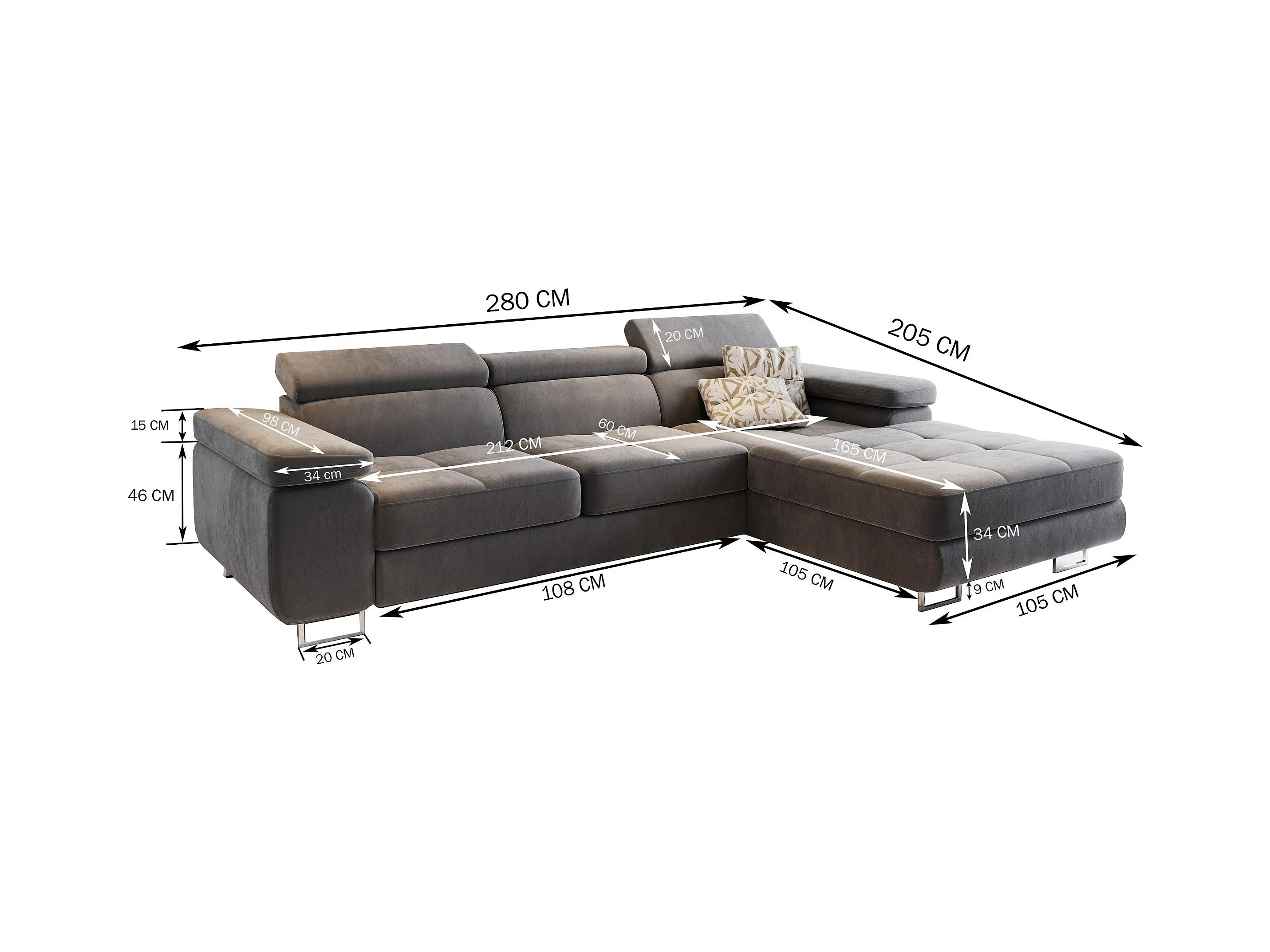 Canapé d'angle ELMA Gris clair en velours avec fonction de couchage